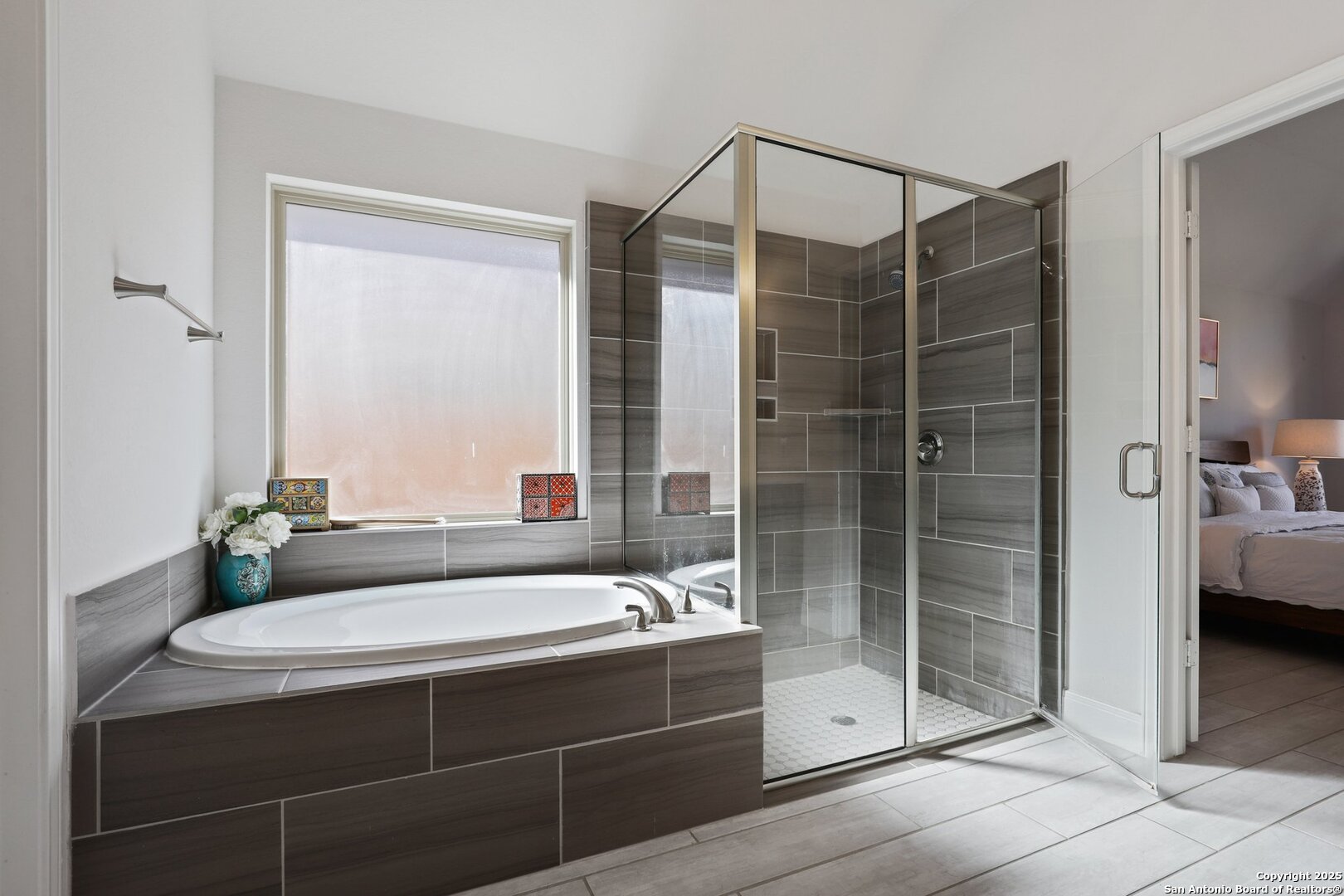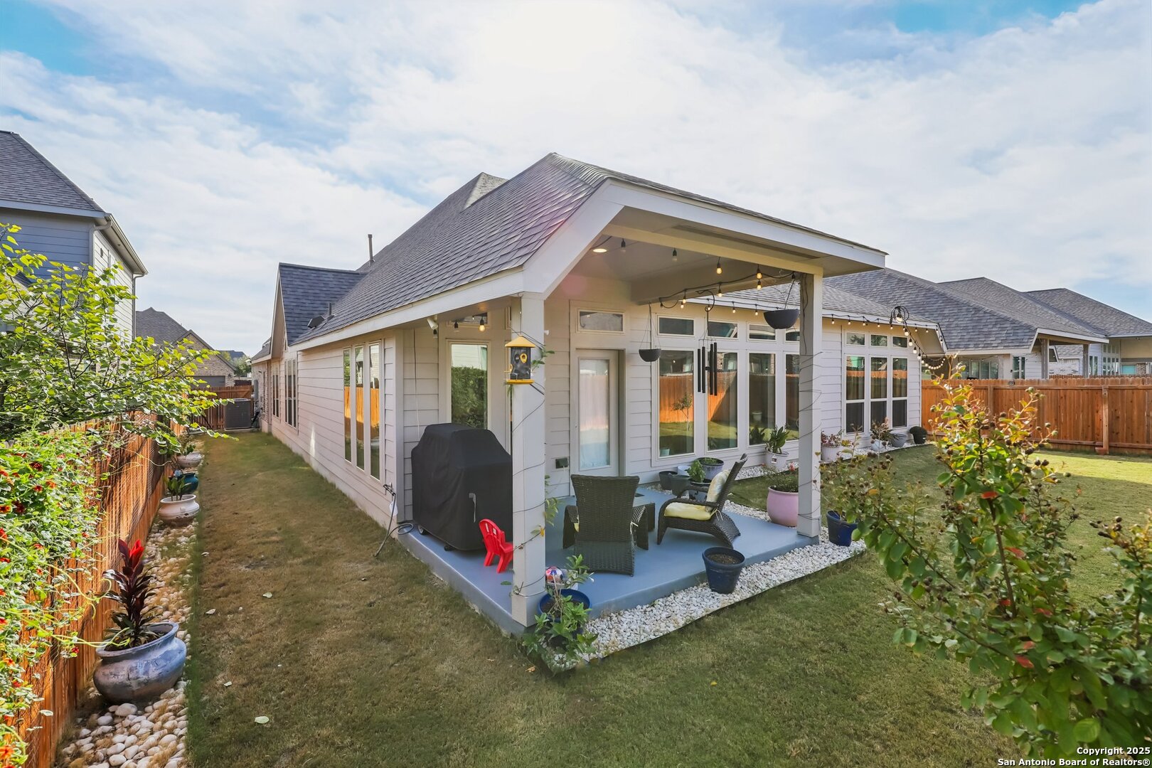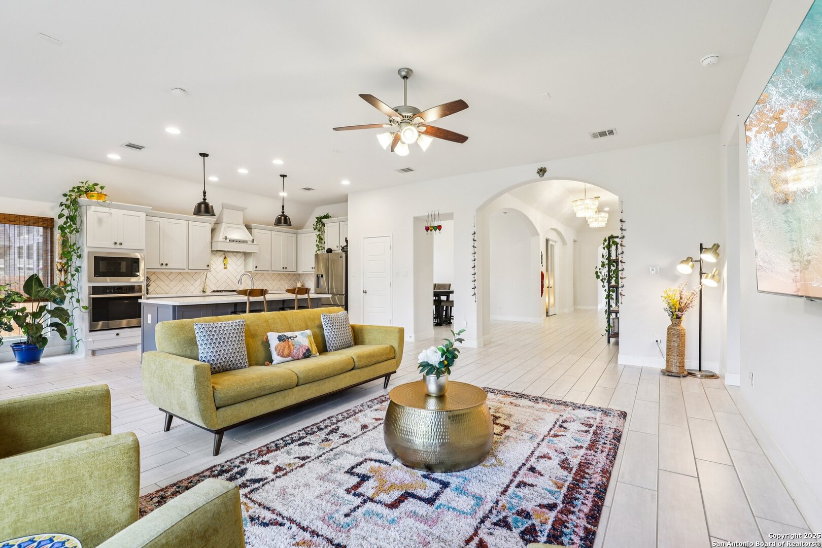 Stunning 4-Bed, 3-Bath Perry Home with gorgeous curb appeal! This one-story, four-sided brick beauty features an 8-ft decorative entry door, high ceilings, and an open floor plan perfect for entertaining. Upgrades abound-stylish finishes, upgraded lighting, ceiling fans throughout, and a water softener (owned). The spacious primary suite offers double vanities, separate shower and tub, and a huge walk-in closet. Additional bedrooms, a dedicated office, and media room complete the main level. Enjoy a large backyard with a covered patio, beautiful garden, and a lot that's perfect for relaxing, playing, or hosting gatherings. Located in a fantastic area with Northside schools, shopping, and entertainment nearby. Don't miss this move-in-ready gem-schedule your showing today!