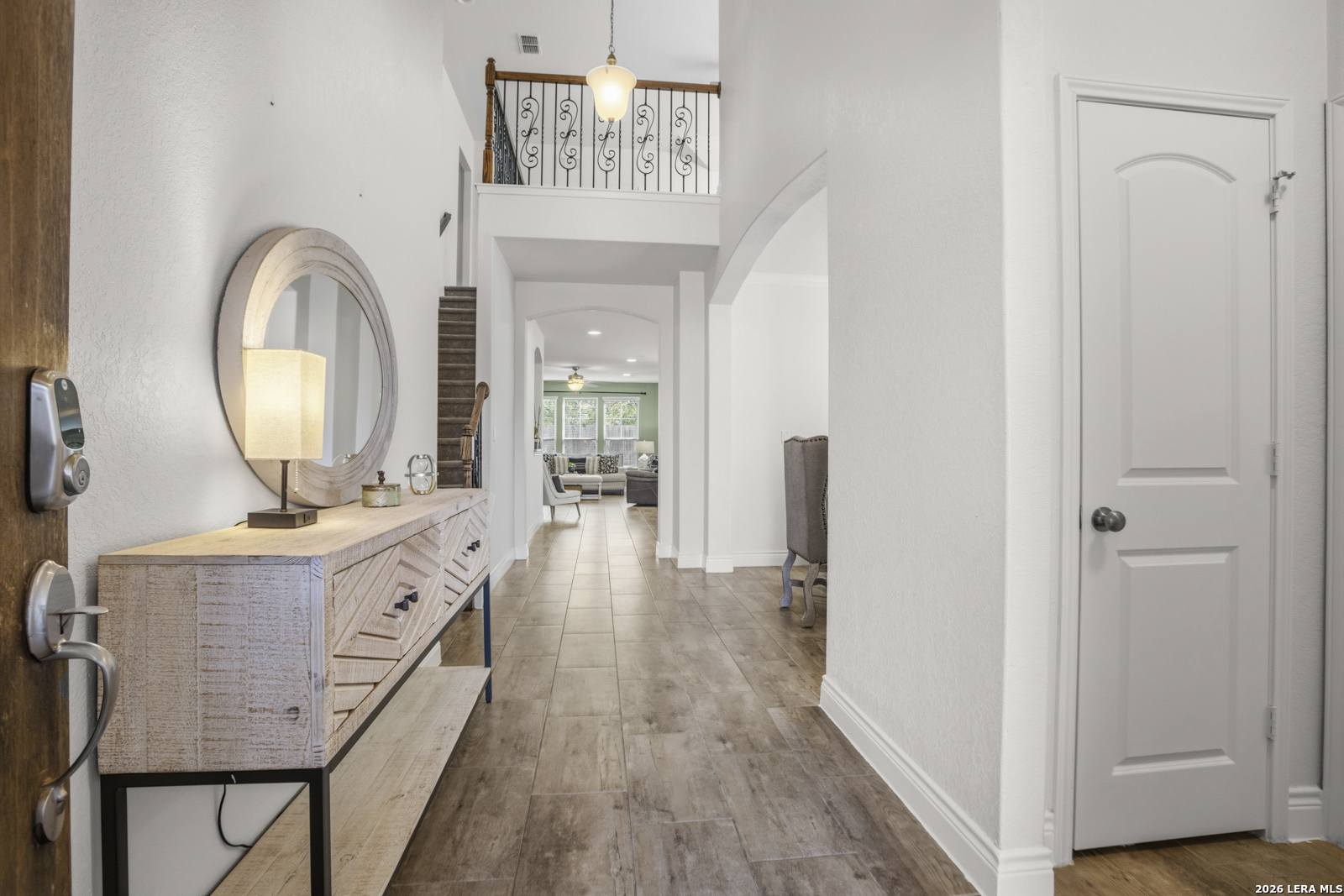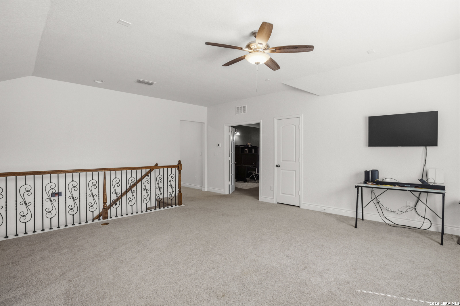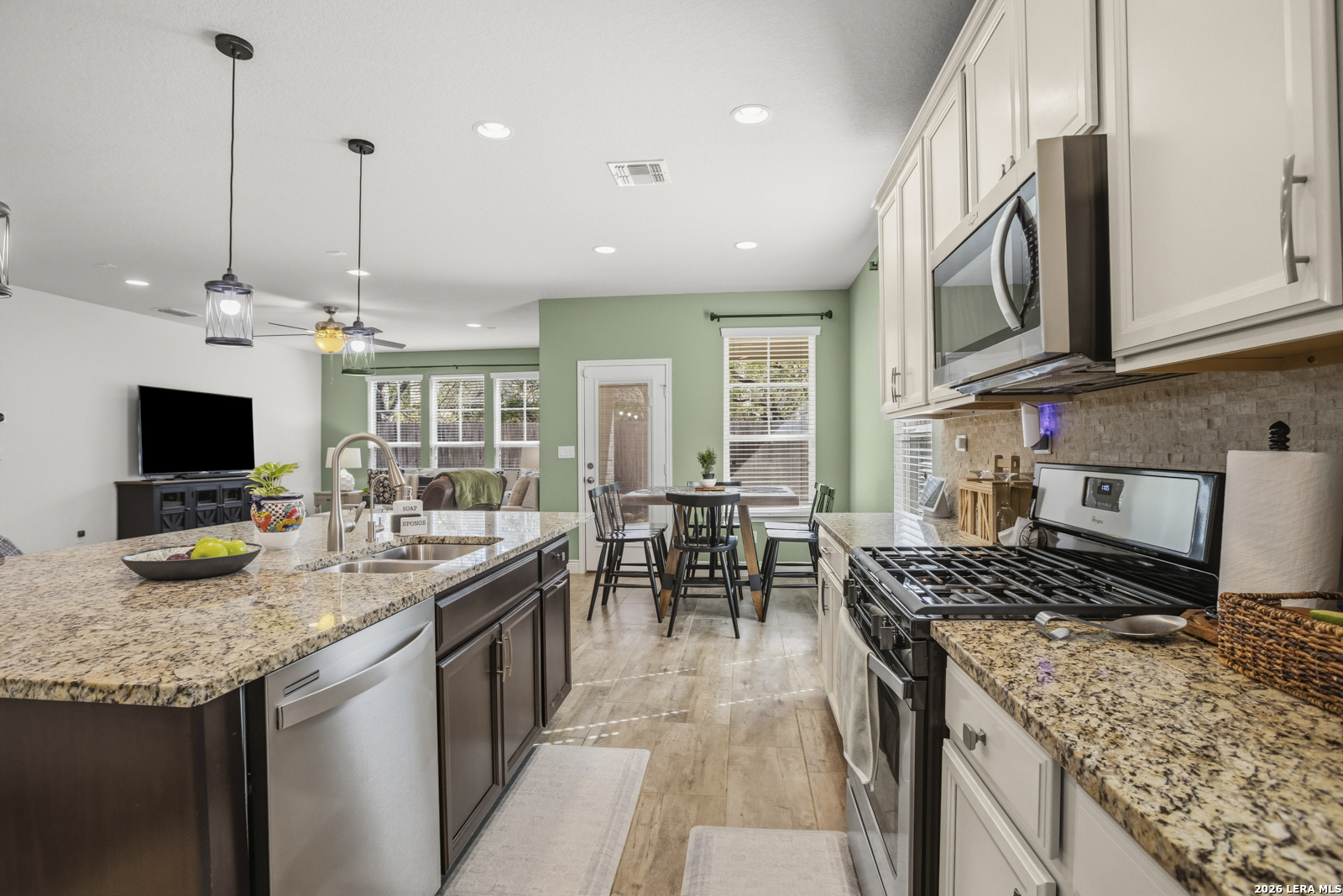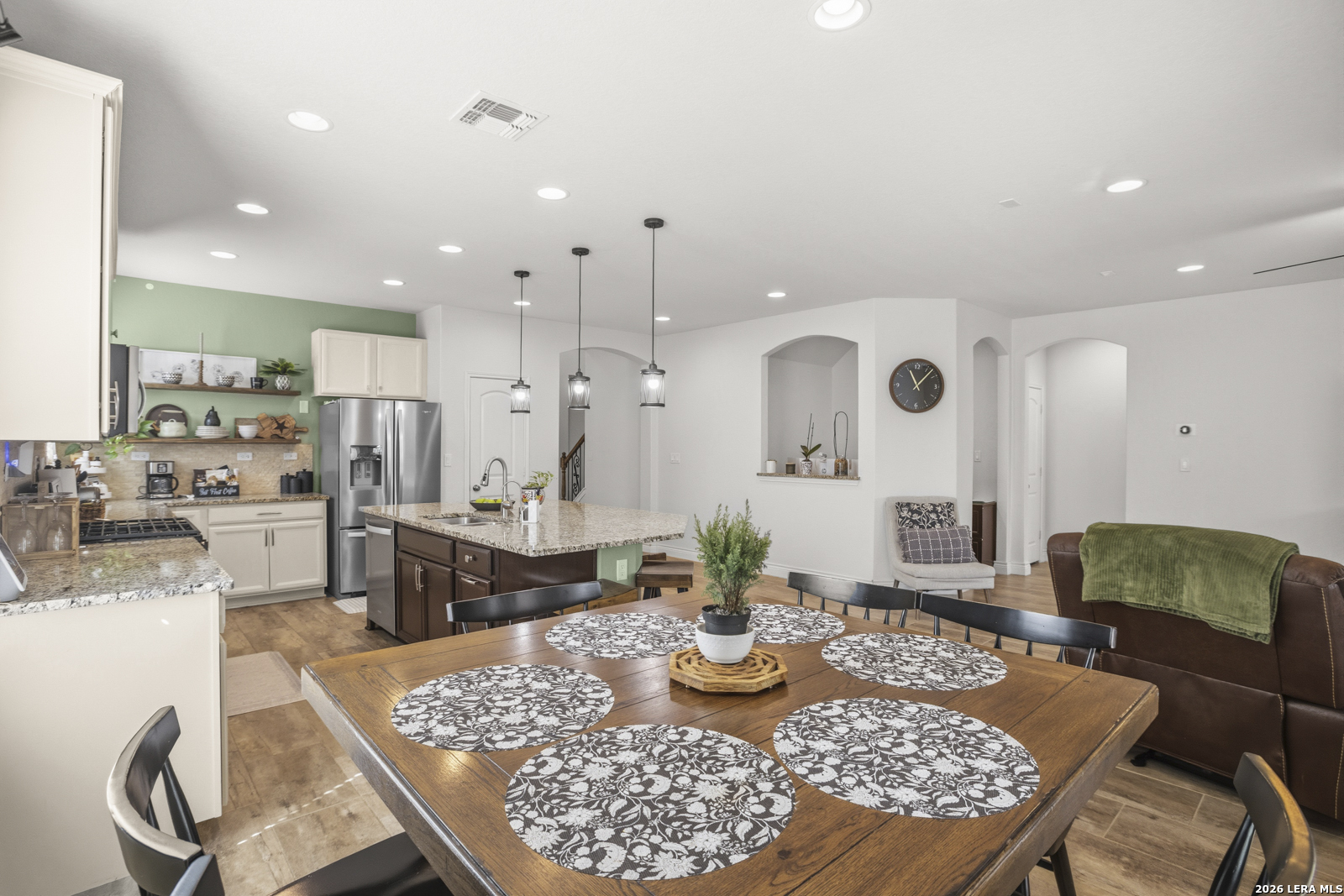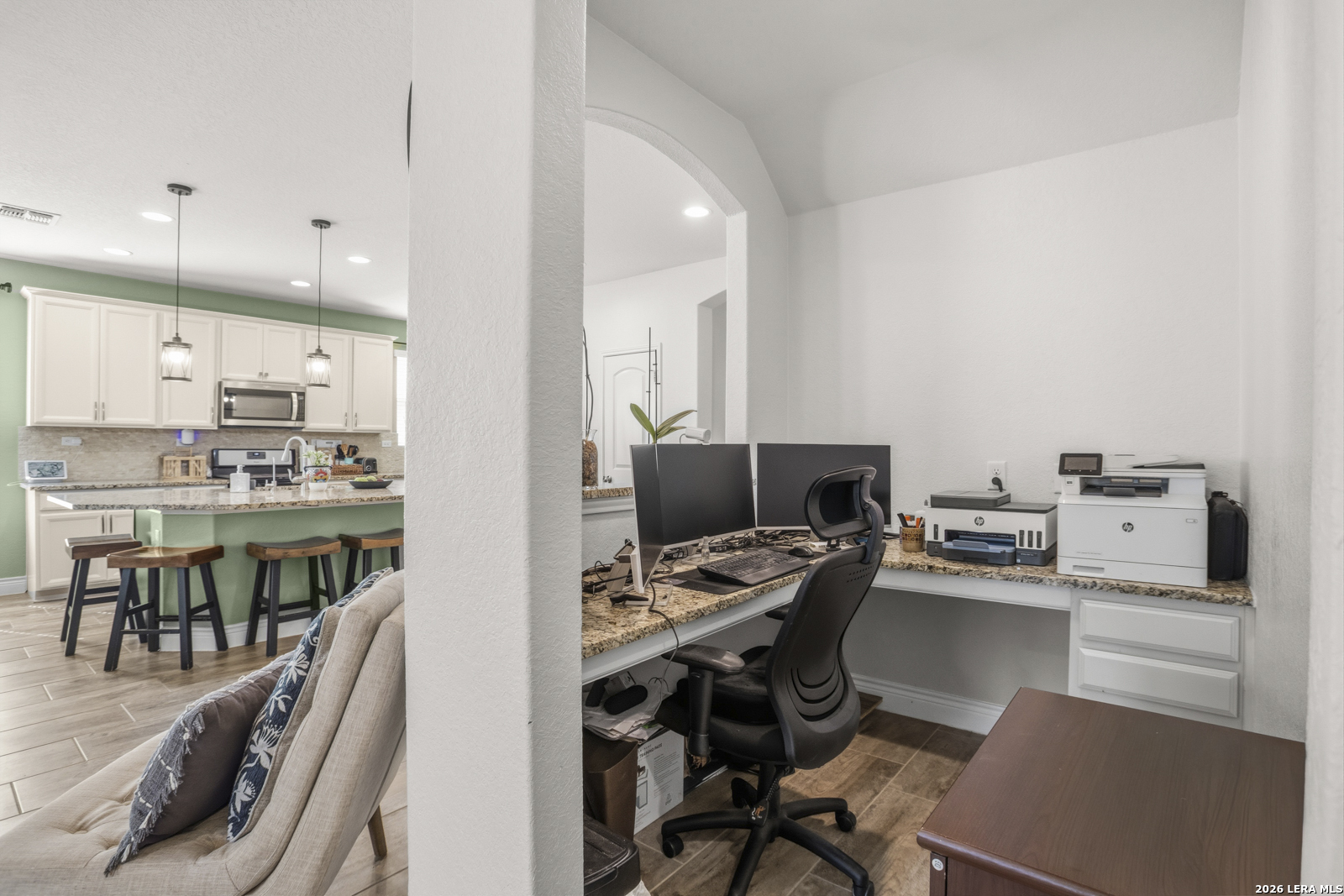 This spacious 4 bedroom, 3 full bathroom home in Schertz offers a well designed layout with modern features and plenty of room to live and entertain. A separate dining room greets you near the entrance, perfect for hosting gatherings or enjoying family meals. The heart of the home features an open concept living room and kitchen, creating a bright and inviting space filled with natural light. The kitchen is equipped with granite countertops, a large island with a breakfast bar, and ample cabinet and counter space, ideal for both everyday living and entertaining. The primary suite is generously sized and includes a full ensuite bathroom with a double vanity and a large walk in shower, providing a comfortable retreat at the end of the day. An office nook just off the living room offers a convenient space for working from home or studying. Upstairs, you will find a versatile loft area along with a dedicated theatre room, perfect for movie nights or additional entertainment space. Step outside to enjoy the covered back patio, ideal for relaxing or hosting guests year round. Located in Schertz with easy access to nearby shopping, dining, and major highways, this home combines space, comfort, and convenience.