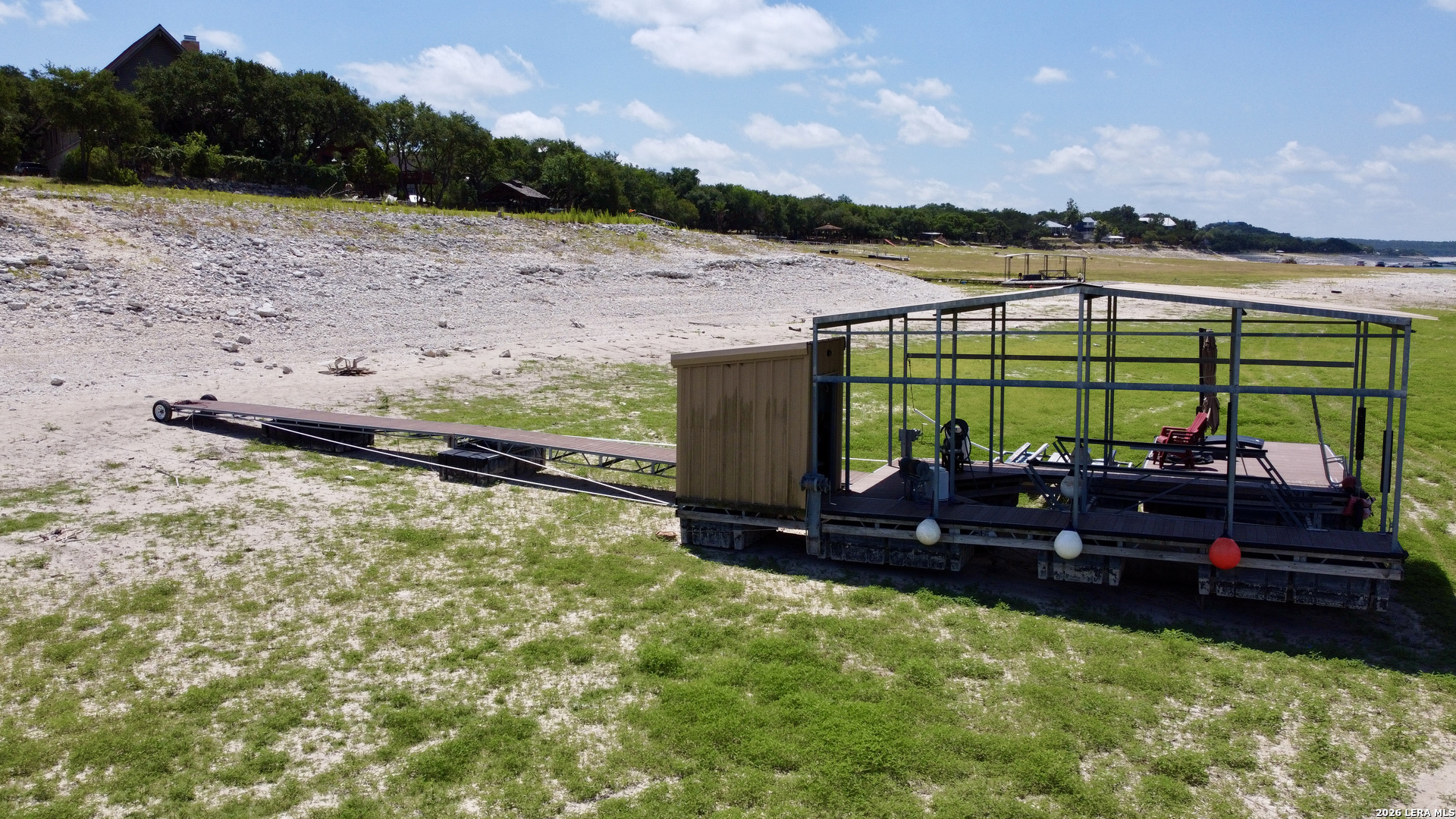 Peace and quiet will greet you on the shores of Medina Lake. This custom built home exudes quality craftsmanship and is where years of memories are sure to be made. Ample parking (some covered) on the 0.30 acre lot for guest and toys. The 2 bedroom, 2 full bath home is a proven AirBNB winner! Smartly designed with a full bath, mounted TV, numerous ceiling fans, and storage room all within the confines of the downstairs covered patio. A recently added mechanical freight elevator will assist in moving luggage and coolers upstairs. You'll appreciate the oversized cedar railings on the stairs and upper patio. Once inside, eyes will be drawn upward to the cathedral ceilings and long gazing views out the windows. Bedrooms are split for privacy, yet connected for easy double sink and bathtub/shower access. When the lake level is high, the included floating dock will allow a boat and 2 PWCs to be docked just steps out the backdoor. When the lake is down, views still exist for miles and exploration of the lakebed is abundant.