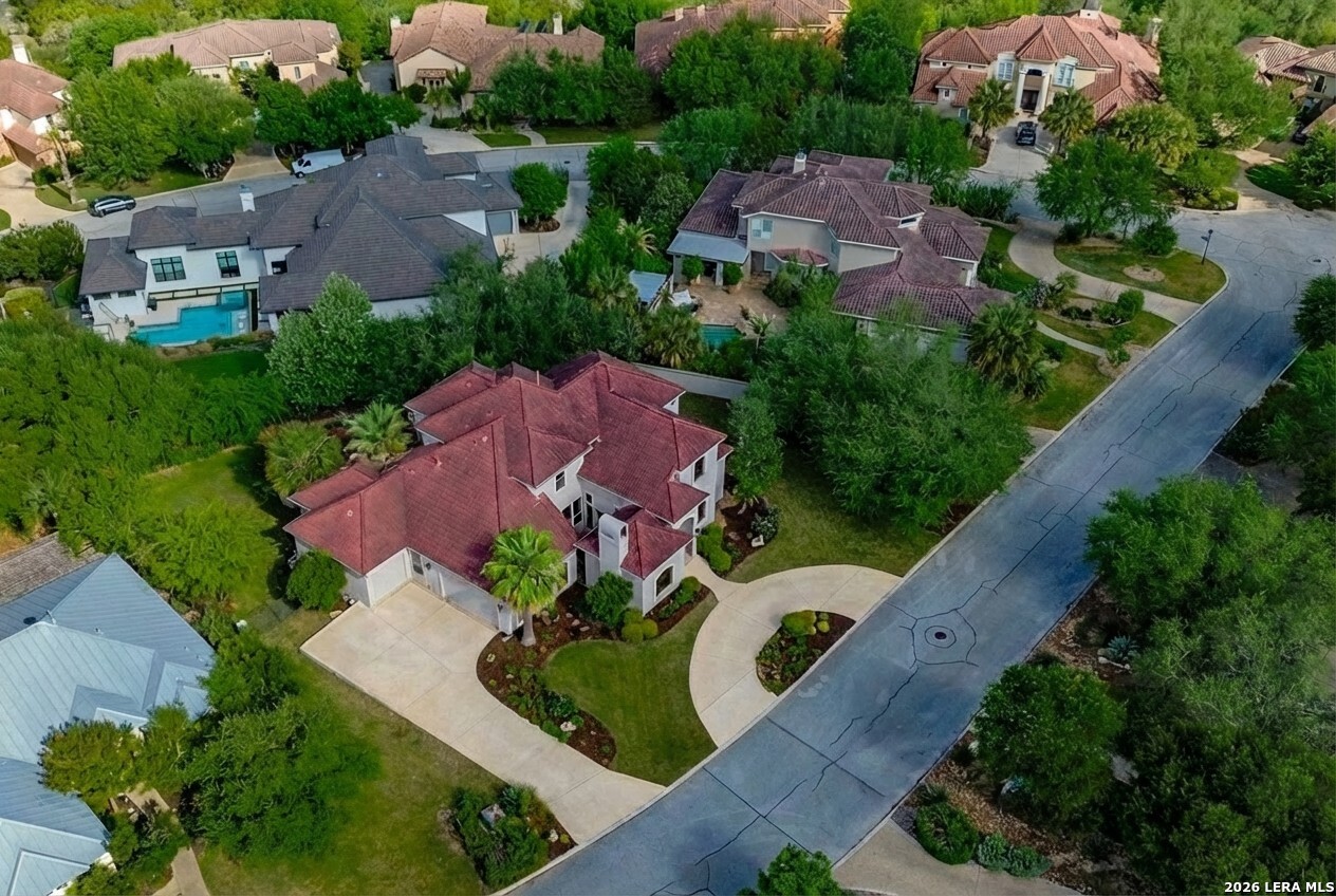Imagine...life at the PINNACLE of The Pinnacle! Set at the highest point of this prestigious large-lot, guard-gated community, where luxury reaches new heights. Enjoy sweeping views and sunsets over the scenic Camp Bullis hills from balconies on both levels. You'll even enjoy cooler temperatures - 3-5 degrees lower than the city center - thanks to the home's elevated setting. Step inside to soaring ceilings and a grand entryway. The main level features the primary suite with luxury bath and his and hers closets, a private guest bedroom, two living areas, each with a fireplace - one woodburning and one electric, a dedicated office, and a formal dining room. Upstairs, a versatile game room opens to a stunning tiled balcony, framing breathtaking views of the surrounding landscape. Four additional bedrooms, all with walk-in closets, with two Jack and Jill bathrooms, complete the upper level. Step outside to a true resort-style experience. A sparkling resort-style pool, with waterfall, serves as the centerpiece, surrounded by expansive patios, thoughtfully designed for effortless entertaining. Multiple seating areas create the ideal setting for lively gatherings, all against a backdrop of professionally designed landscaping and panoramic hill country views - as breathtaking as they are serene. Whether hosting elegant gatherings or enjoying quiet evenings at sunset, the outdoor space provides an ambiance of unrivaled luxury and tranquility. PRIME LOCATION - Ideally situated near Blanco Road with easy access to Loop 1604, and just over a mile from premier shopping and dining destinations. Featuring fresh paint and carpet throughout, exterior paint, new hot water heater (2026), and new primary AC unit and pool pump in 2024. Schedule your private tour today!