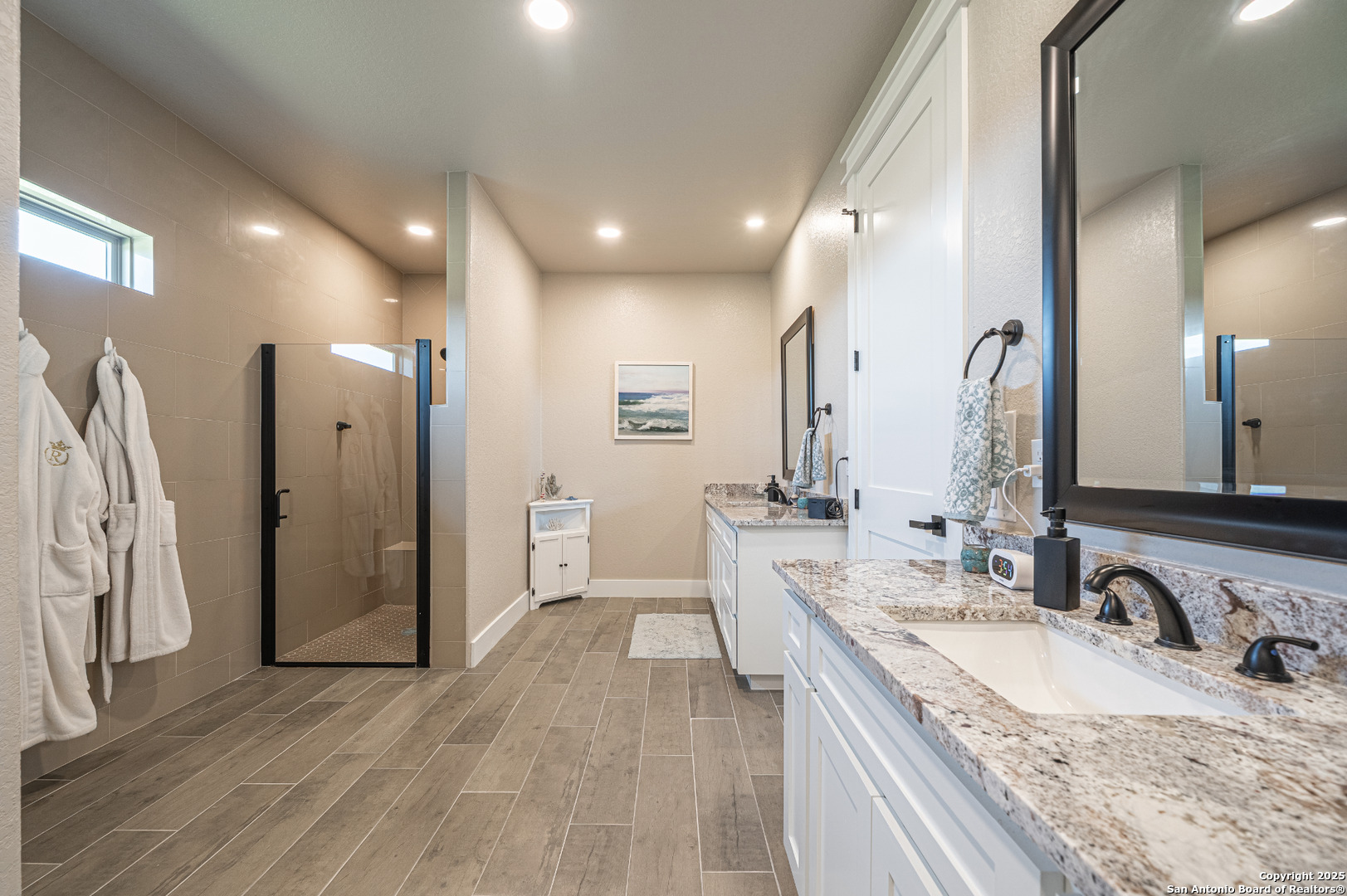 Welcome to your dream home in the beautiful Bridlegate community of Bandera, Texas! This spacious 4-bedroom, 2.5 bath home offers 2,500 sq. ft. of comfortable living space designed for relaxing and entertaining. Enjoy waking up and winding down daily to the sun rising and setting, here on this amazing lot. Inside, you'll find an open floor plan with a bright living area, a cozy dining room, and a gorgeous island kitchen with custom cabinets, granite counters, and stainless steel appliances. The primary suite is your own private retreat with a walk-in closet, full bath, and separate shower. The extra bedrooms are roomy with walk-in closets-perfect for family or guests! There's also a utility room, and dedicated office space for even more space to spread out. The backyard gives you plenty of room to soak in the peaceful Hill Country vibe. Plus, you'll have access to great neighborhood amenities like tennis courts, jogging and bike trails, a pool, clubhouse, playground, BBQ areas, and more. Come see why this home is the perfect spot to relax, unwind, and enjoy the best of Texas living!