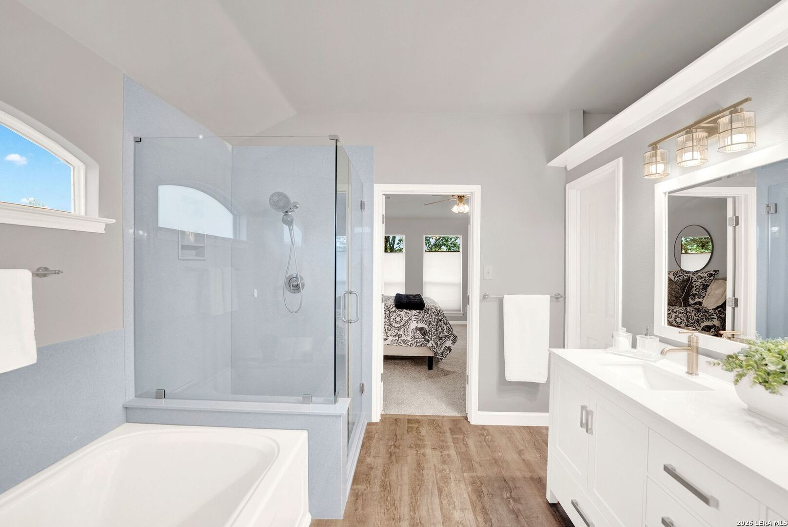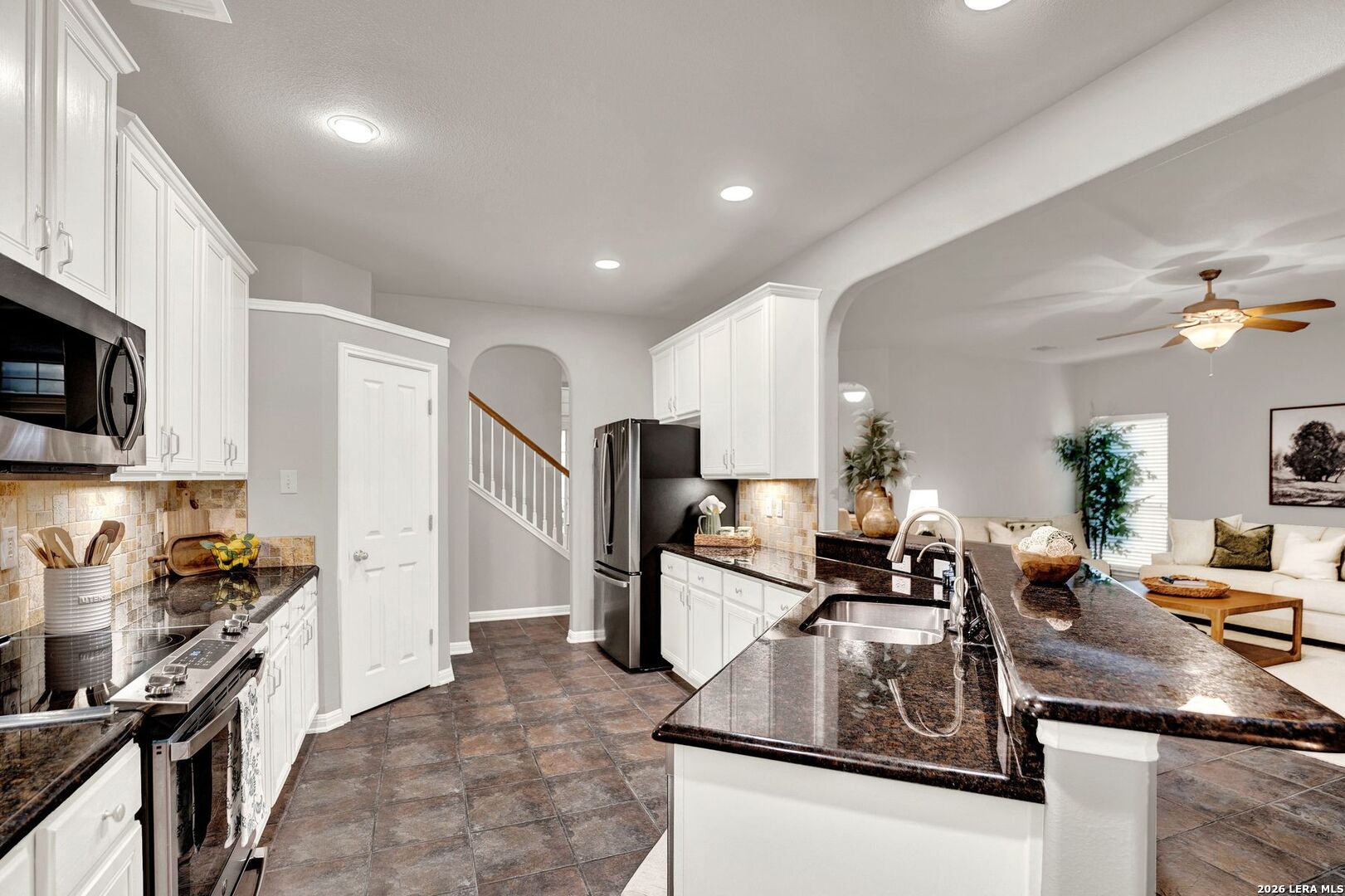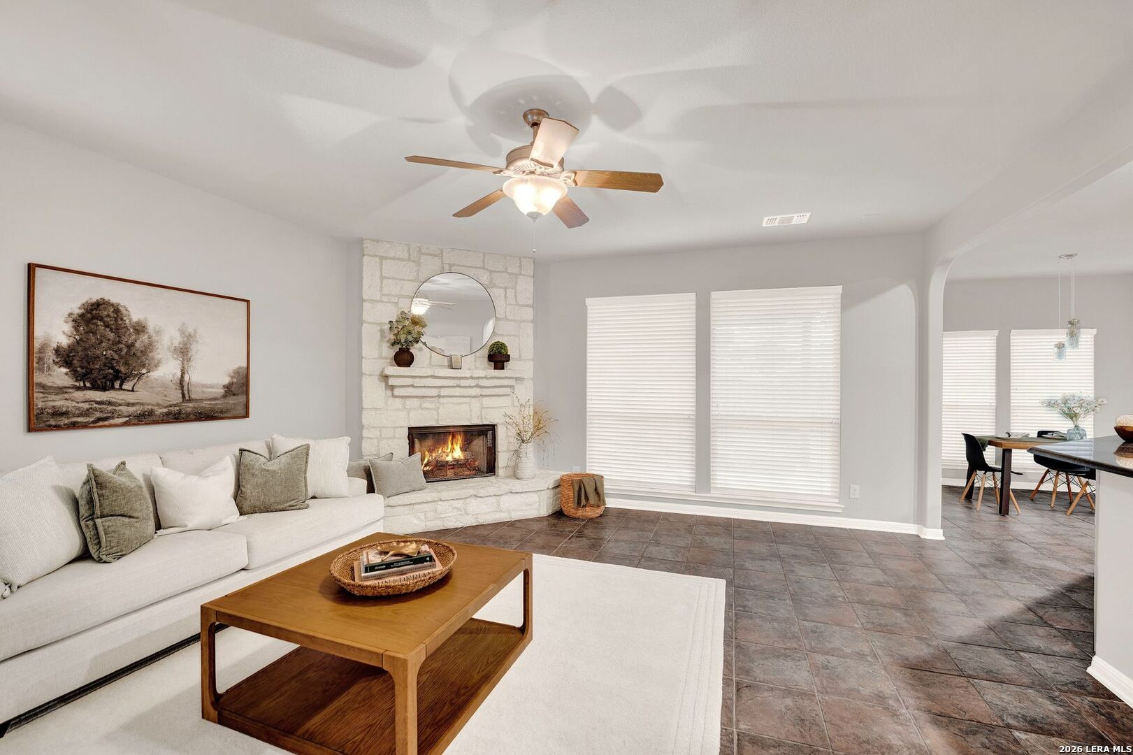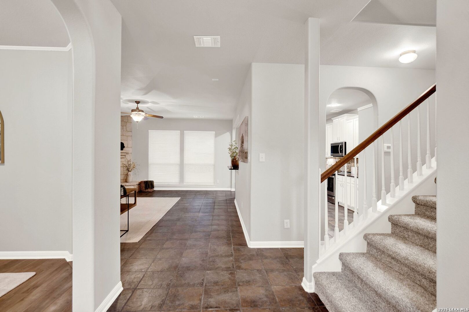 Impeccably updated and move-in ready, this Fossil Springs- Helotes home showcases fresh interior paint, new texture, and brand-new carpet (April 2026). This 4-bedroom, 3 full bath home has it all! The 4th bedroom and bathroom is conveniently located downstairs and would also make a fantastic office. Thoughtfully designed with an open layout, engineered wood and tile flooring, and multiple living spaces including an upstairs game room. The kitchen features granite countertops, refinished cabinetry, under-cabinet lighting, and all stainless-steel appliances convey. The inviting living area offers a gas fireplace and built-in audio wiring. Retreat to the beautifully remodeled primary bath (2024) with spa-like finishes. Major upgrades include a 16 SEER Trane HVAC system (2023), radiant barrier, surge protection, and more. Enjoy a private, shaded backyard with covered patio and mature oaks. Located in a desirable community with park and pool-elevated living at its finest.