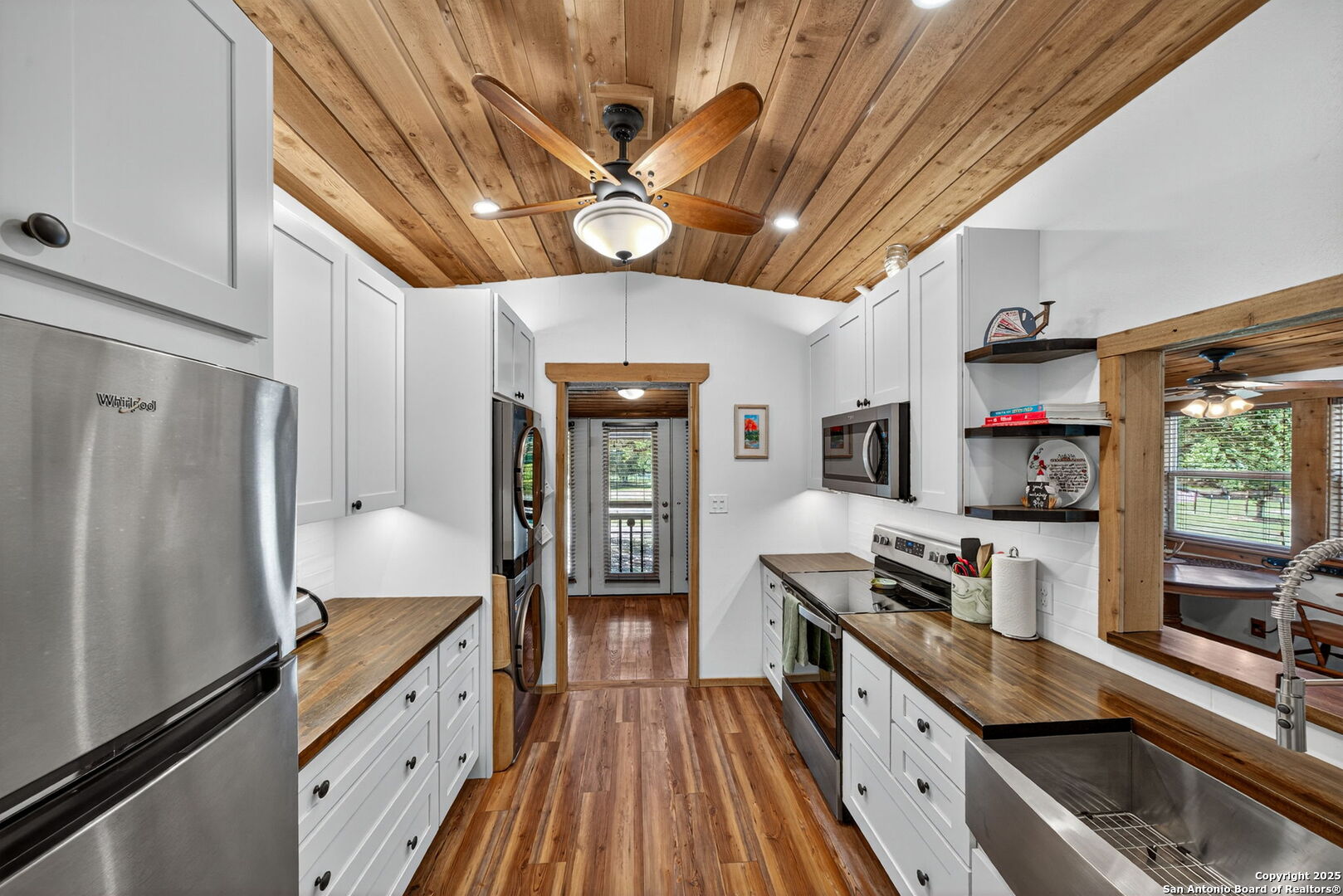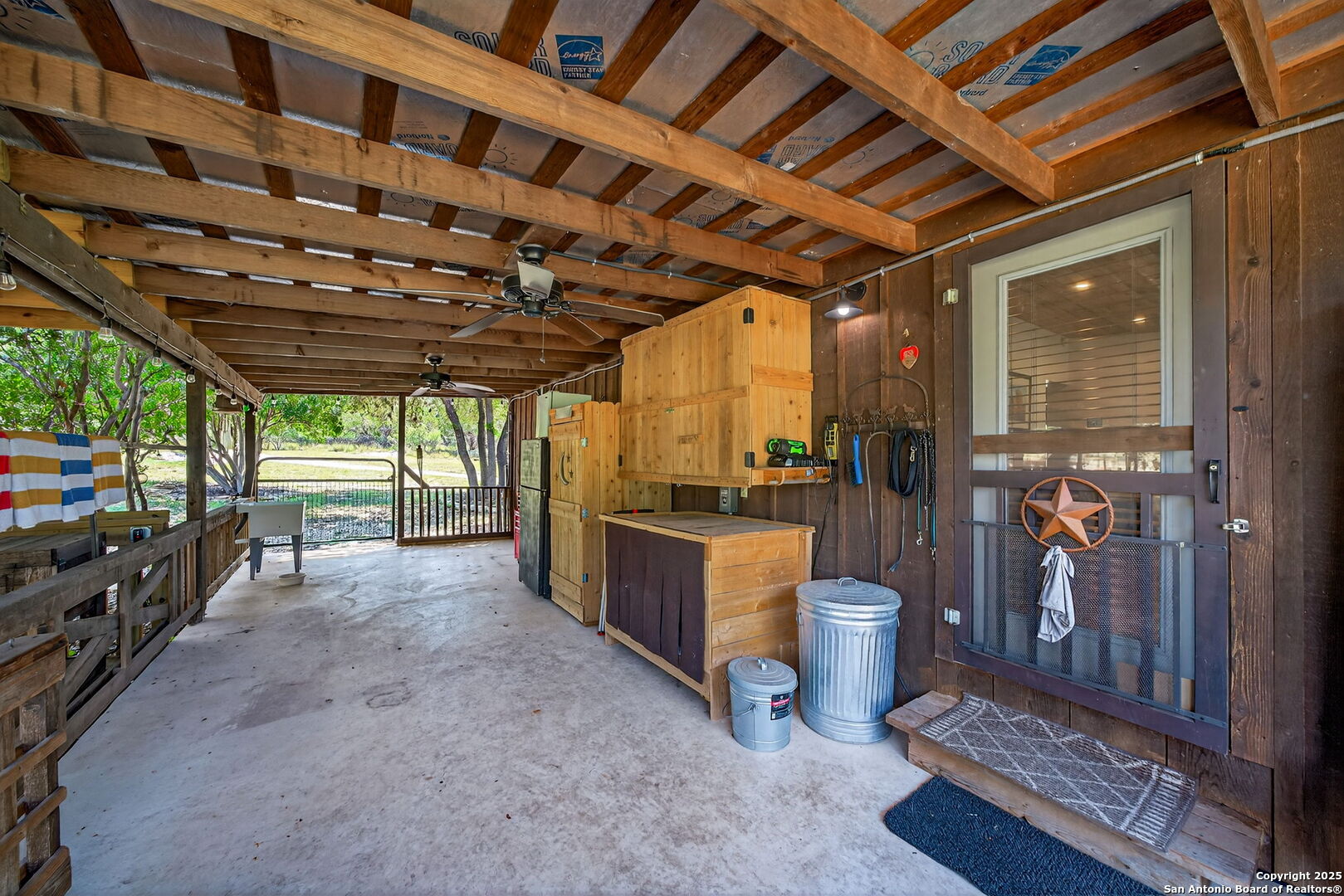 WAGON CREEK RANCH - 5.94 ACRES 1/bed 1/bath 600 sqft Hill Country Cabin set on just under six acres of level to gently sloping land with large mature trees. This beautiful property offers the perfect mix of rustic charm & modern updates with renovations to the home & porches. The well-maintained cabin features a spacious kitchen with stainless steel appliances, plenty of cabinetry, and updated countertops, making it both functional & inviting. Recent updates throughout add comfort and convenience while preserving the home's cozy feel. Step outside to enjoy a large covered patio, perfect for family gatherings or quiet evenings of Hill Country tranquility. Perimeter fenced, elec gate entry, crossed fenced for horses, round pen, pastures, barn & washing station. Add the RV port 30/50 AMPS, ELEC & sewer hook ups, shipping container, pole barn, chicken coop (house), large dog park, outdoor firepit and you've got yourself a well set up homestead. Large open well maintained land, shows like a park with apple, peach, and native trees. Whether you envision building a larger residence, designing a backyard retreat, or using the property as a weekend getaway, this versatile tract offers space to bring your vision to life. With its proximity to Bandera's shops, dining, and small-town charm, this acreage is a rare find-delivering both convenience and the contentment of Hill Country living.