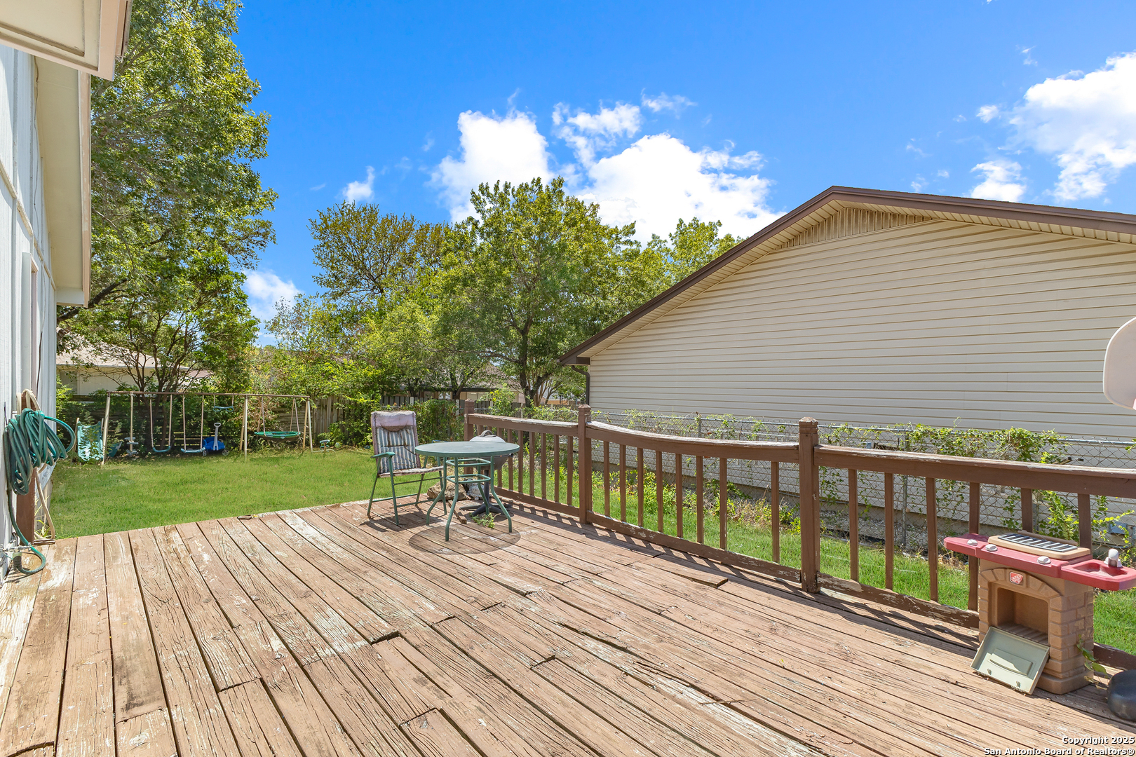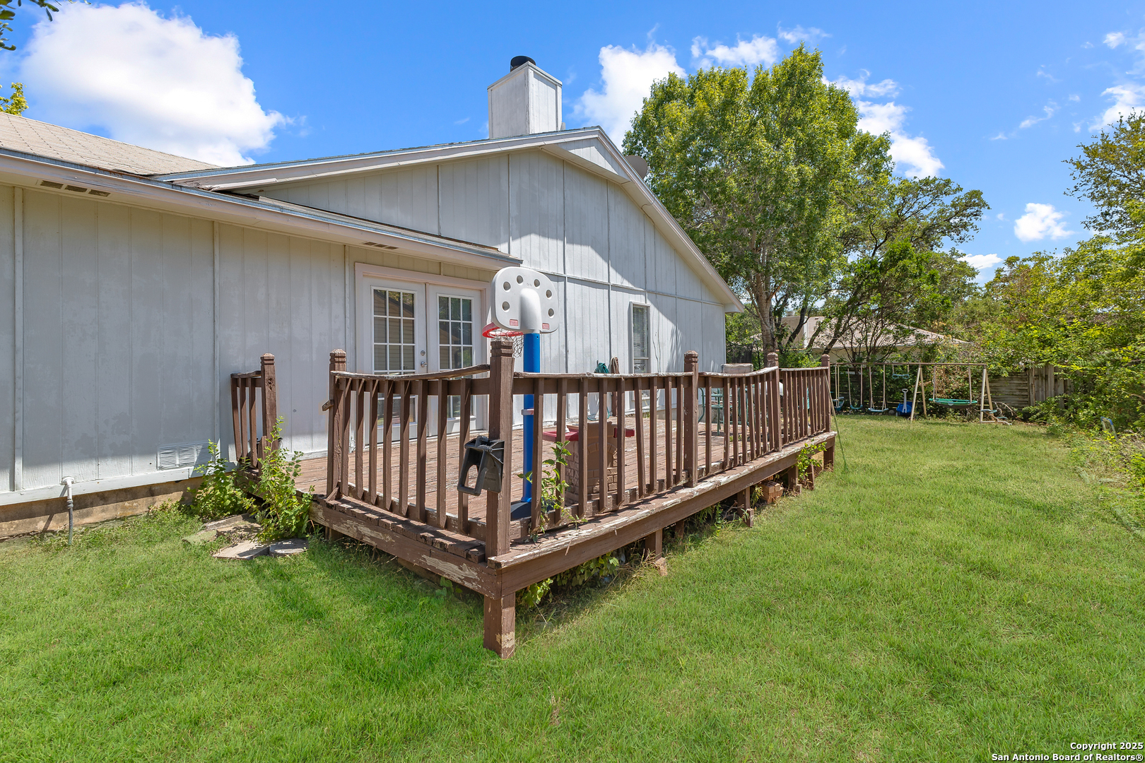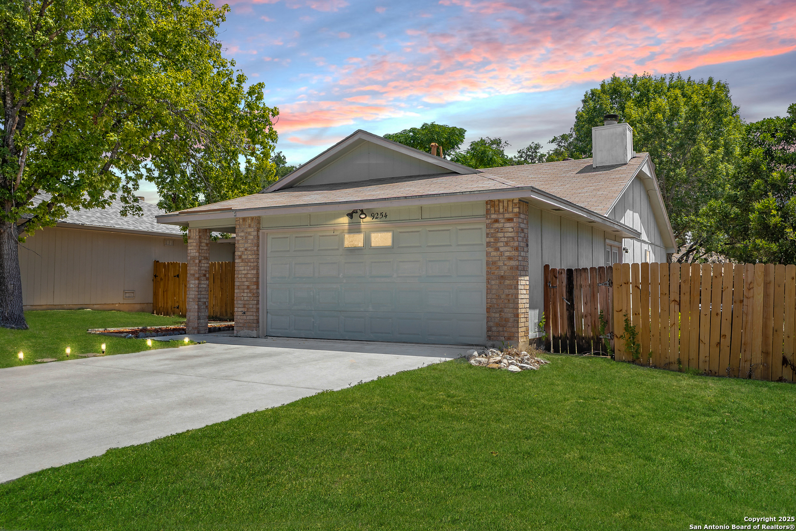 Welcome to this inviting 3-bedroom, 2-bathroom home nestled in the well-established Great Northwest community. Step inside to discover an open-concept living and dining area highlighted by vaulted ceilings and a cozy wood-burning fireplace. A sliding glass door leads to the back patio and fully fenced yard, perfect for relaxing or entertaining. The adjacent kitchen features stainless steel appliances, a stylish tile backsplash, a pantry, and plenty of workspace for cooking with ease. The primary suite offers a peaceful retreat with a tray ceiling, charming window nook, double-sink vanity, spacious linen closet, walk-in shower, and a generous walk-in closet. Conveniently located near shopping, dining, schools, Loop 1604, and I-410.