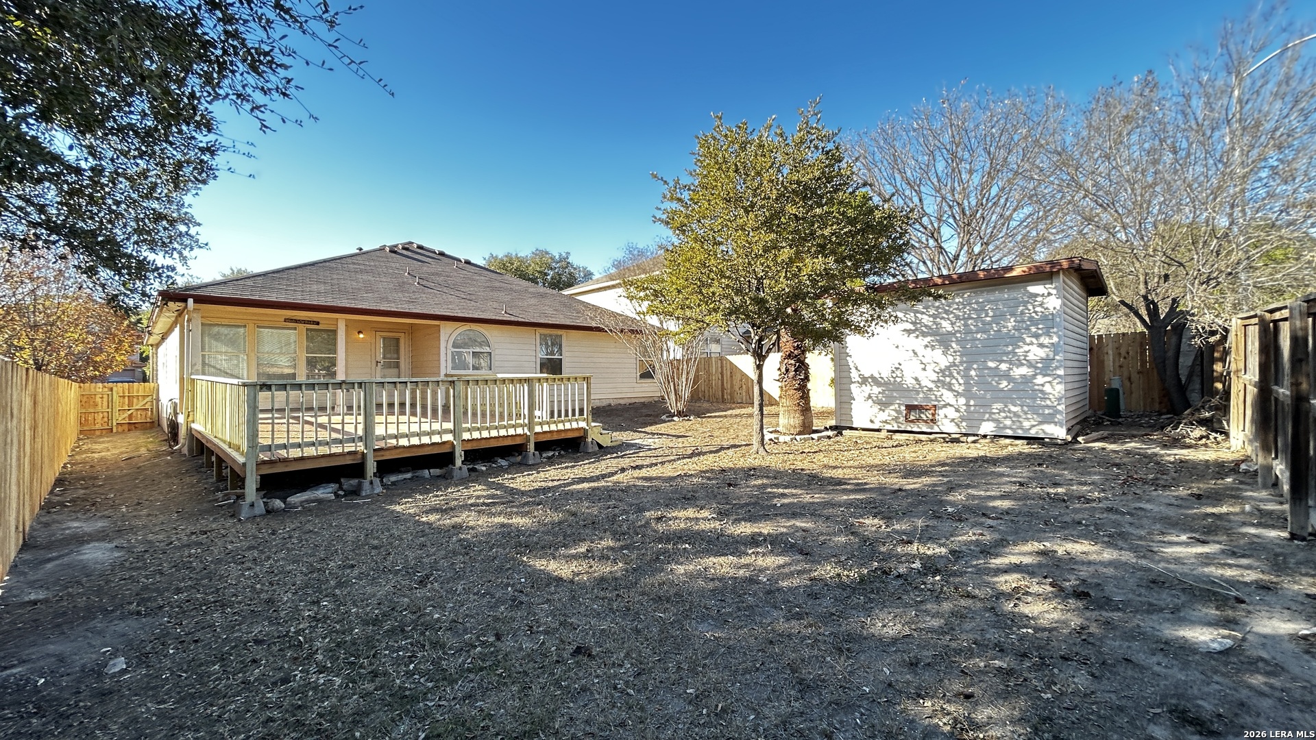 Nice 3 Bed, 2 Bath 1796 sq ft Single Story Home. Beautiful Laminate floors in Living/Dining Room. Large Kitchen with a Breakfast Nook and Desk Area. Appliances include Fridge, Stove, Microwave, Dishwasher. Large Primary Bedroom with a Ceiling Fan, Walk-in Closet. Primary Bath with a Dual Sinks, Separate Shower/Jacuzzi Tub. Nicely Fenced Backyard with a Deck, Covered Patio, Storage Shed. 2 Car Garage with an opener. Community Pool, Northside Schools. Close to Sea World, 1604, 151, 410, Lackland AFB.