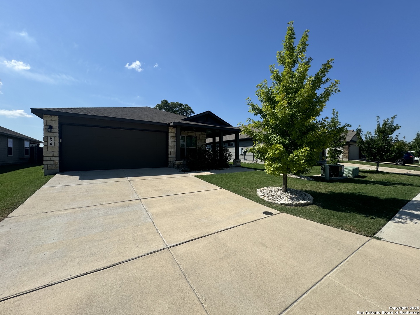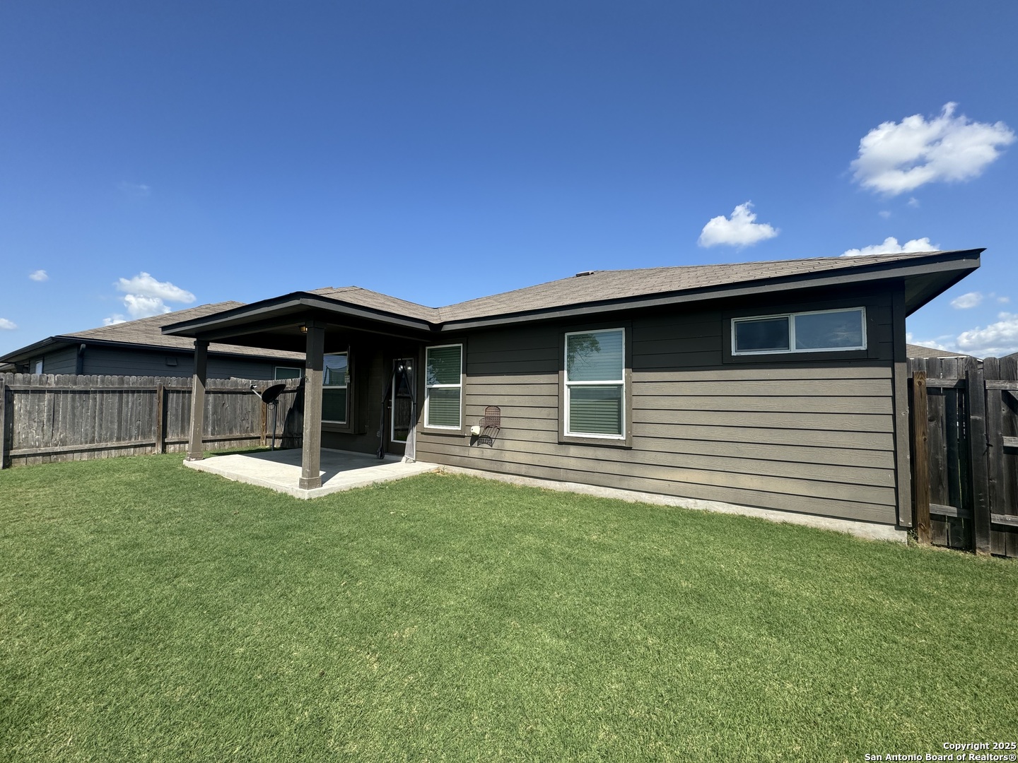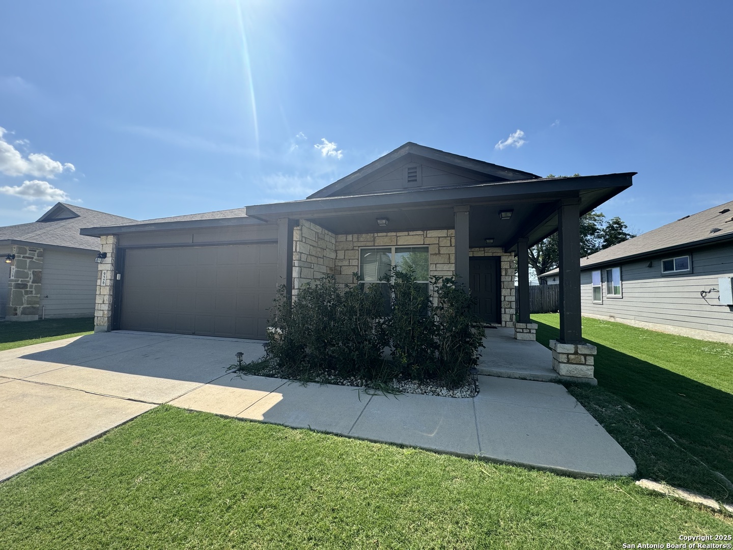 This charming single-story home is located in the highly desirable Avery Park neighborhood in New Braunfels. It features a welcoming front porch and an open floorplan filled with natural light. The beautiful kitchen boasts granite countertops and gray subway tile, seamlessly opening to the living room, making entertaining fun and easy. The home has no carpet-only tile and vinyl flooring throughout. The secondary bedrooms and bathroom are situated down a separate hallway from the living area, while the master bedroom is positioned towards the back for added privacy, complete with a large master closet, dual vanity, and a spacious walk-in shower with bench seating. Enjoy a covered patio with tranquil views of farmland instead of other houses. Community amenities include a neighborhood pool, playground, and jogging trails. Enjoy pop-up coffee and ice cream vendors at the pool and fun neighborhood events throughout the year. The home is just minutes away from shopping and dining at Town Center at Creekside, Buc-ee's, HEB Plus!, and much more. Animal policy: 1-animal under 25lbs with Landlord approval.