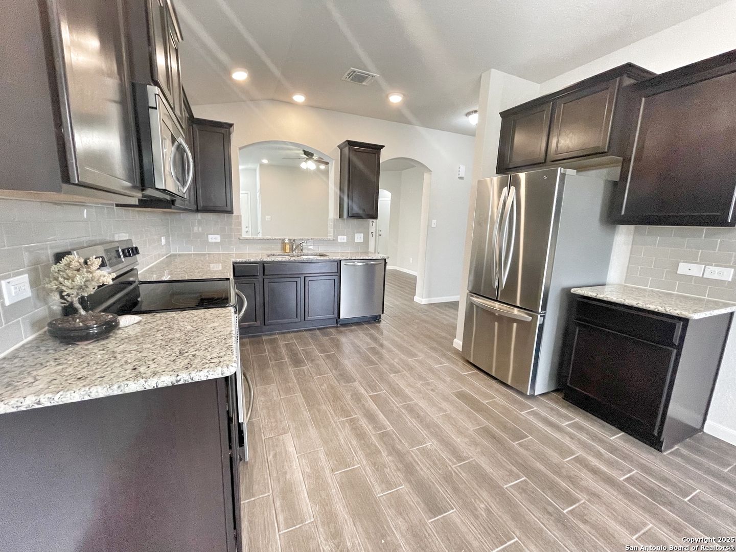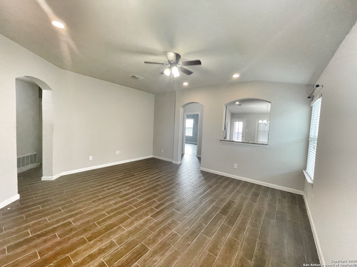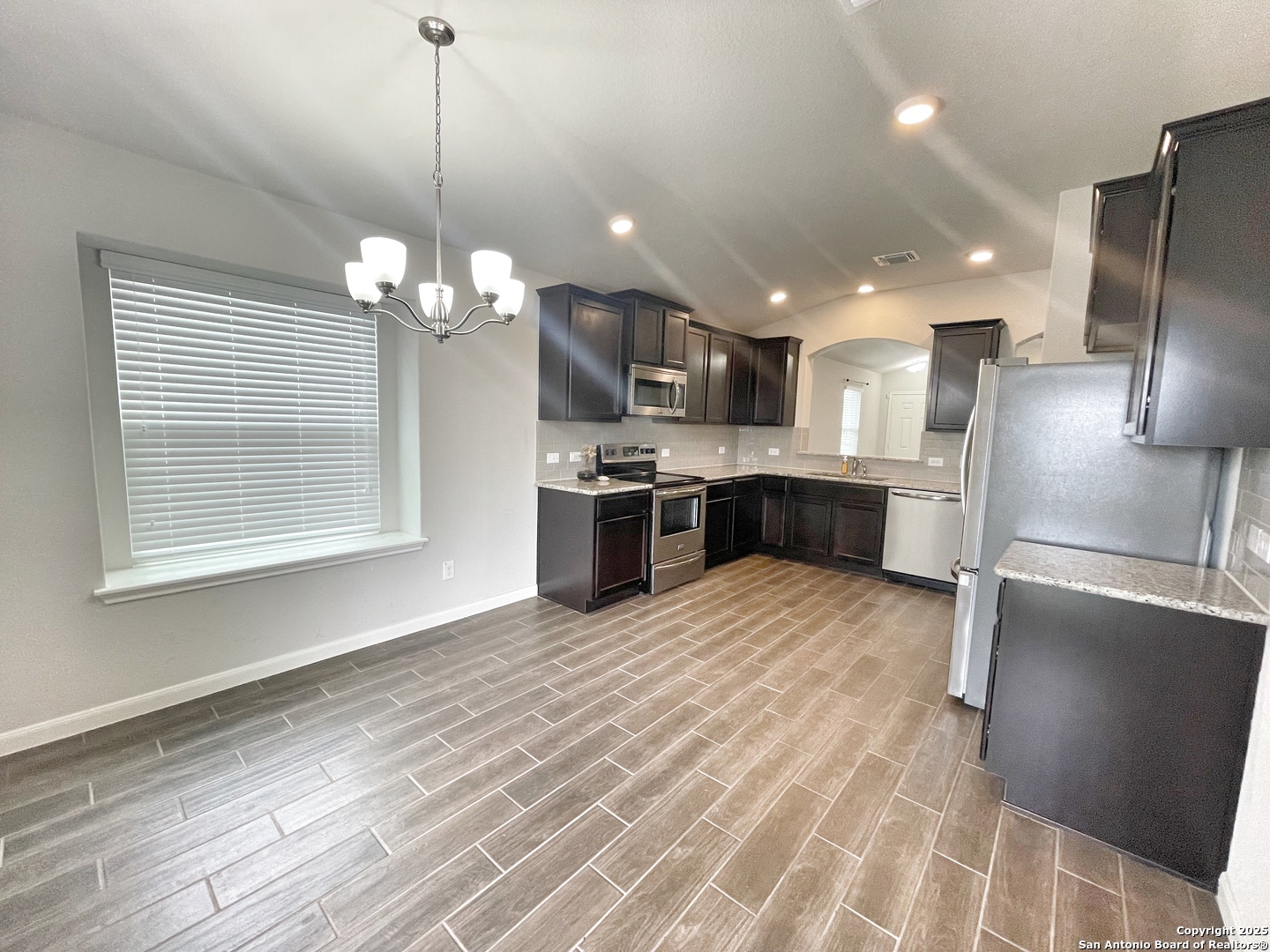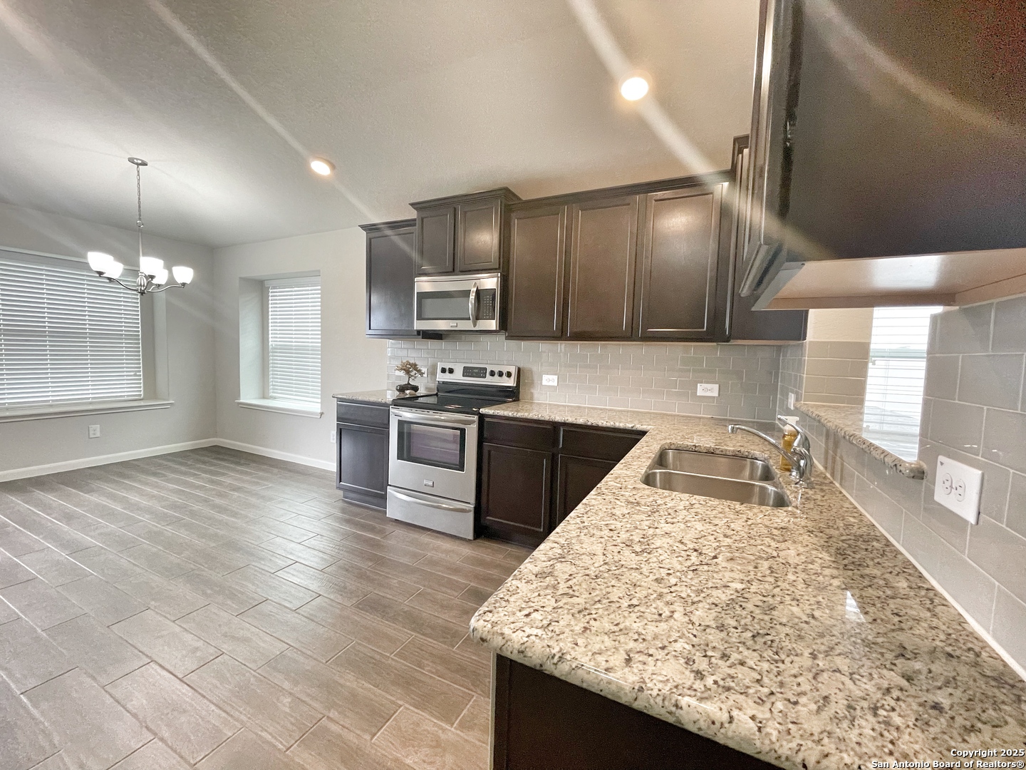 This charming single-story home is located in the highly desirable Avery Park neighborhood in New Braunfels. It features a welcoming front porch and an open floorplan filled with natural light. The beautiful kitchen boasts granite countertops and gray subway tile, seamlessly opening to the living room, making entertaining fun and easy. The home has no carpet-only tile and vinyl flooring throughout. The secondary bedrooms and bathroom are situated down a separate hallway from the living area, while the master bedroom is positioned towards the back for added privacy, complete with a large master closet, dual vanity, and a spacious walk-in shower with bench seating. Enjoy a covered patio with tranquil views of farmland instead of other houses. Community amenities include a neighborhood pool, playground, and jogging trails. Enjoy pop-up coffee and ice cream vendors at the pool and fun neighborhood events throughout the year. The home is just minutes away from shopping and dining at Town Center at Creekside, Buc-ee's, HEB Plus!, and much more. Animal policy: 1-animal under 25lbs with Landlord approval.