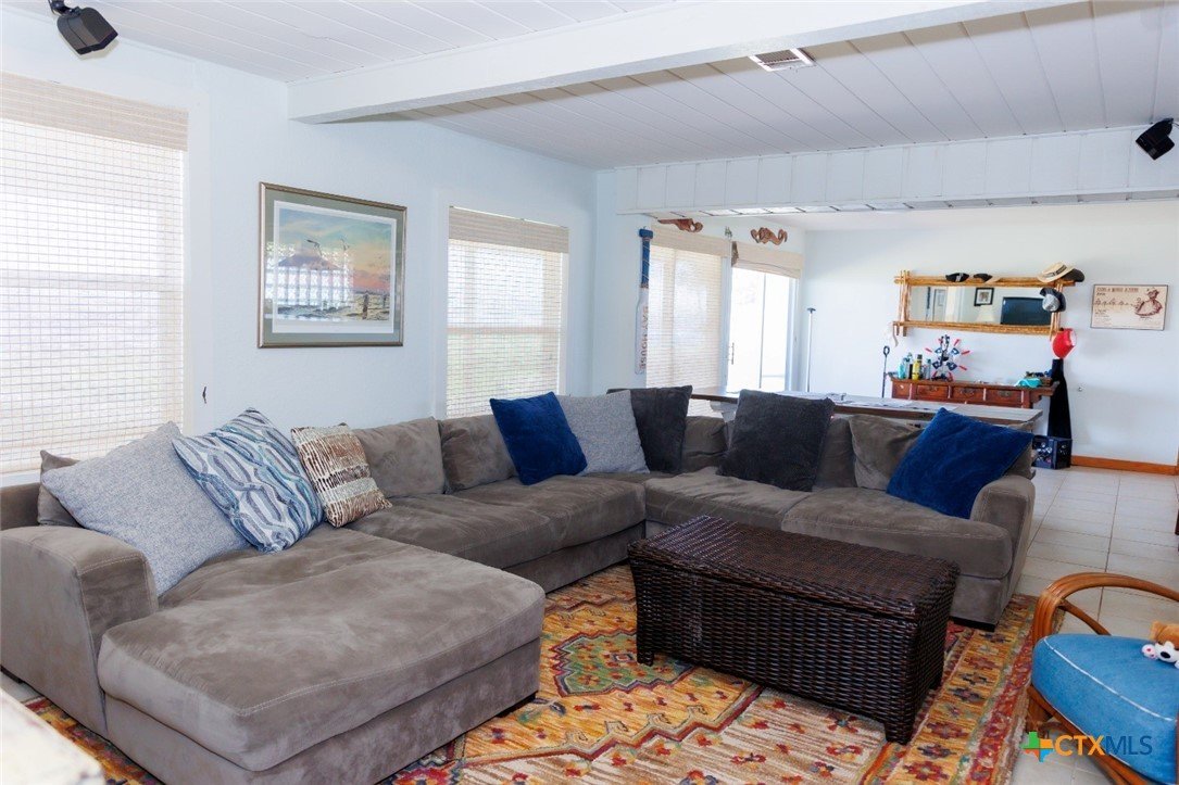 Waterfront home is ready for new owners to start make wonderful memories together. This home has a split floor plan with large living and dining room areas, very spacious for family and friends. Though it is advertised as a 2/2; one of the rooms is a large bunk room, making it the size of 3 bedrooms. This also makes it great for kids to have a separate area to play. With this ranch style home, it provides a covered front and back porch. From the back porch drink coffee with gorgeous views of the bay and the sun rising, sit peacefully in the afternoon with sun downs. With the open concept it makes great for entertaining from the kitchen, a nice concrete bar, visit while preparing meals. The property is a double lot with .62 acres, plenty of room between the bay and he house for kids to play, and you will have room to turn your boat around to the double garage/ boat barn. Easy access from the bays to the Gulf of Mexico. The property has a permit to put in a new pier for future option.