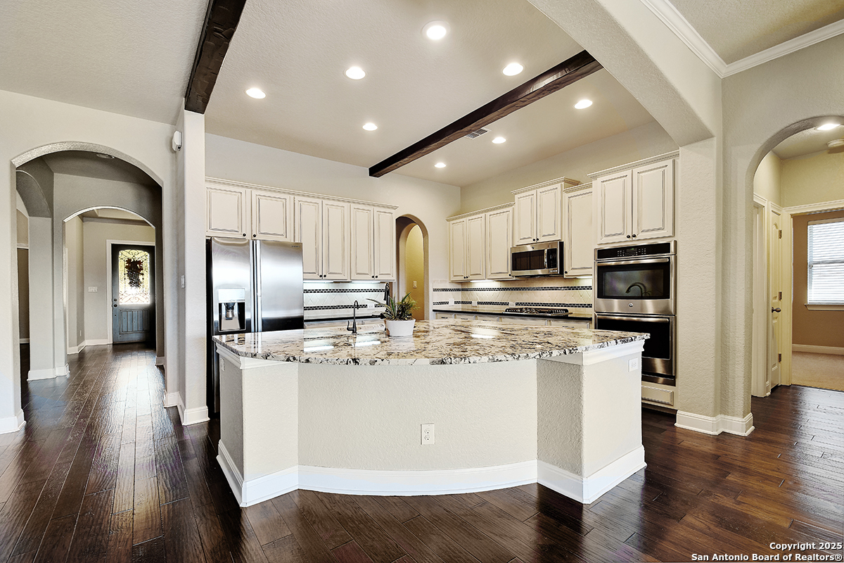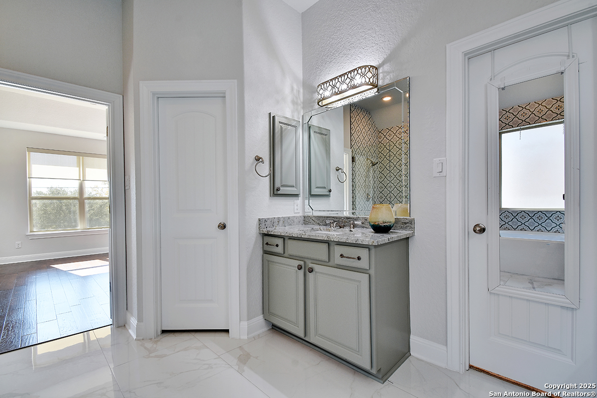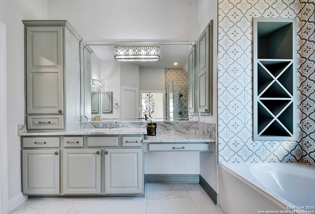 Stunning Golf Course Home in Gated Vista Bella Community Welcome to this beautifully appointed 4-bedroom, 4-bath, two-story home located in the highly desirable, gated Vista Bella subdivision in San Antonio, served by sought-after Comal ISD. Designed for both everyday comfort and upscale entertaining, this home offers an exceptional layout and resort-style amenities. The open-concept kitchen is the heart of the home, featuring an oversized island, abundant cabinetry, and seamless flow into the spacious living and dining areas-perfect for gatherings of any size. Large windows throughout capture natural light and showcase peaceful view of the 14th green of the Canyon Springs Golf Course. The private backyard is an entertainer's dream, complete with a sparkling pool, outdoor kitchen, firepit, and covered seating areas-ideal for relaxing evenings or hosting guests while enjoying the scenic course backdrop. The primary suite offers a luxurious retreat with a spa-inspired bathroom featuring custom tile work, upgraded cabinetry, a separate walk-in shower, and generous closet space. Additional bedrooms and bathrooms provide flexibility for guests, home office, or multi-generational living. Located in a secure gated community with easy access to shopping, dining, and major roadways, this home combines elegance, privacy, and lifestyle amenities rarely found in one package. Schedule your private showing today and experience Vista Bella living at its finest.
