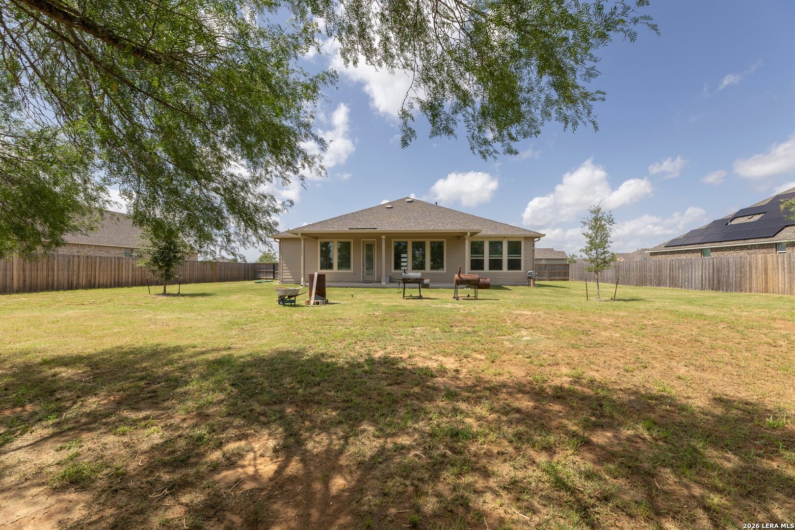 2022 Yr Built Home on over 1/2 Acre Private Lot with Paid Off 28 Solar Panels (little to no electricity bill) PLUS added upgrades such as front and back irrigation system, enclosed Privacy Fence w/ steel post, Gutter system, Crown Molding, Elaborate security system, Water softener plumbed and laundry room sink plumbed. This home is located in a gas community, you have no back neighbor (private), and you receive the remaining 10 year structure/foundation builder warranty. No steps, single-story, 2,385 square feet, 4 Bedroom plus a flex room (media room), 2 full bathrooms and 1 half bathroom. Lots of windows, covered back patio, expansive kitchen, which boasts abundant counter space, a massive center island, and sleek modern finishes. You'll love that there's no carpet anywhere in the home-offering a clean, low-maintenance lifestyle with stylish, durable flooring throughout. The split floor plan ensures privacy, with a spacious owner's suite and three additional bedrooms that can double as guest rooms, home offices, or hobby spaces. Additional highlights include a convenient mudroom, perfect for organizing shoes, backpacks, and more, and a 2-car garage that adds even more functionality to this impressive home. Don't miss this incredible opportunity to own a nearly-new home on a large lot in Annabelle Ranch-schedule your private tour today!