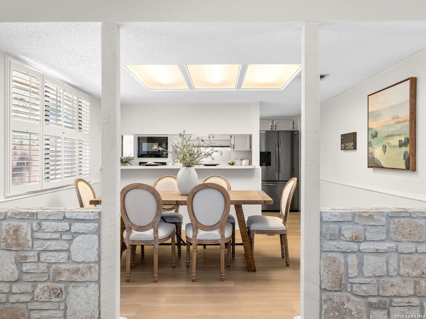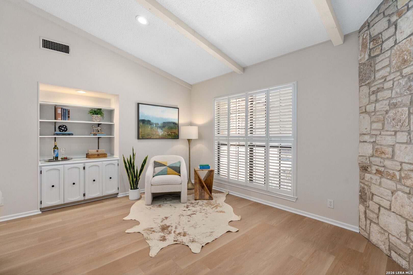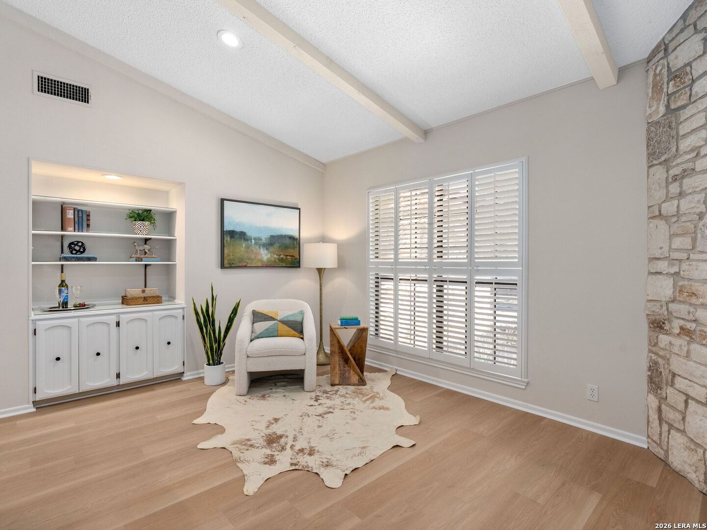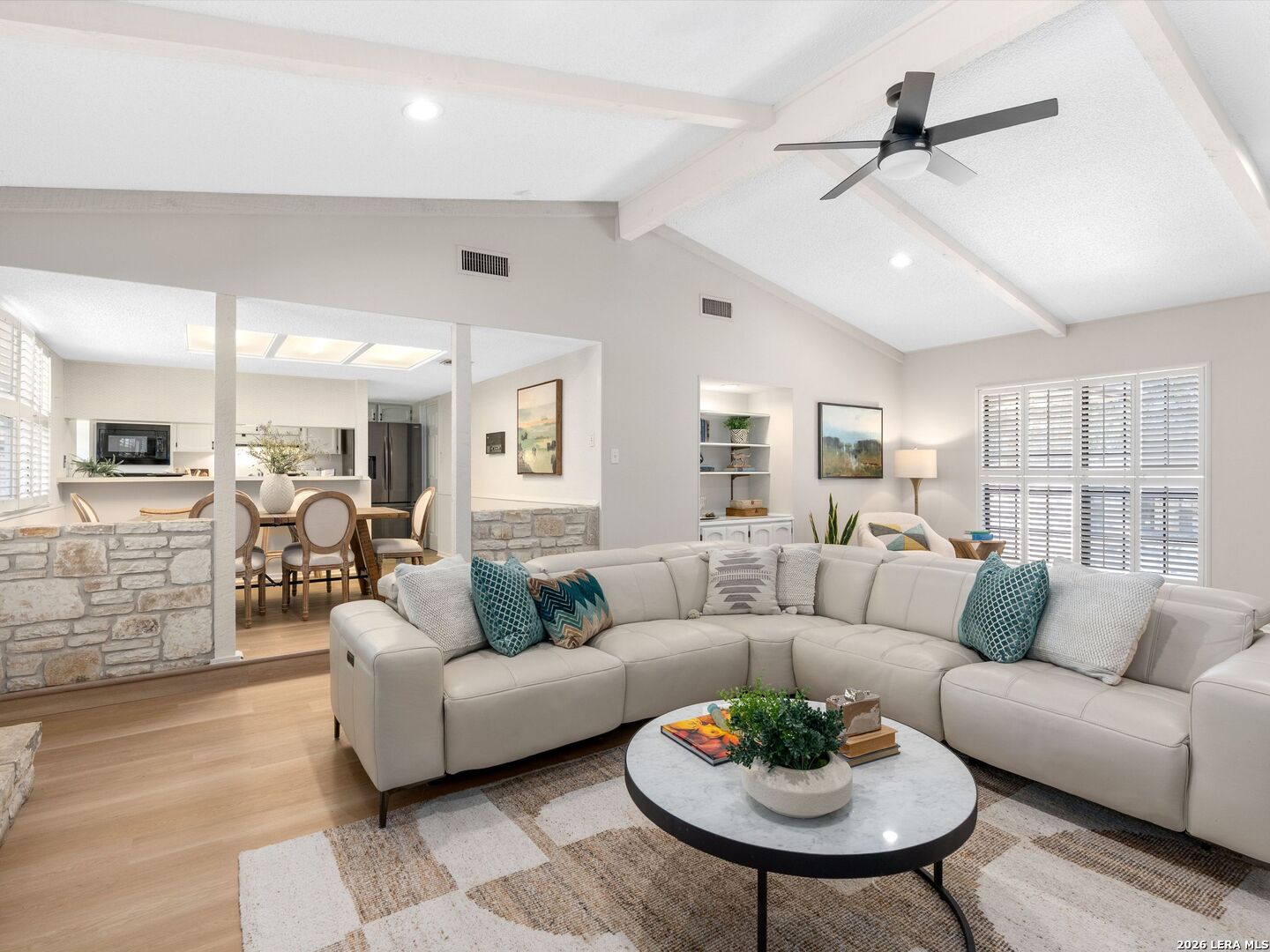 OPEN HOUSE- SUNDAY March 29th: 2pm-4 pm. Welcome to this stunning single-story home in the highly sought-after Braun Station community! Nestled on an oversized lot shaded by majestic mature oak trees, this beautifully updated property offers a rare blend of comfort, style, and a peaceful, country-like setting. Step inside to an inviting open-concept layout featuring vaulted ceilings, abundant natural light, and a spacious living room anchored by a striking stone fireplace. The home has been tastefully remodeled with luxury vinyl flooring, fresh interior paint, and modern light fixtures, creating a warm yet contemporary feel throughout. Plantation shutters add timeless elegance and function. The primary suite serves as a private retreat with a cozy sitting area, perfect for relaxing at the end of the day. Outdoors, enjoy fresh landscaping with partial xeriscaping, stone beds, and a covered patio ideal for entertaining or unwinding under the canopy of beautiful oak trees. Residents of Braun Station enjoy fantastic neighborhood amenities including a pool, tennis courts, clubhouse, playground, and sports court. Conveniently located near the Medical Center, it offers easy access to shopping, dining, and entertainment at La Cantera, as well as nearby attractions like SeaWorld and Six Flags Fiesta Texas. This home truly offers the perfect combination of charm, updates, location, and lifestyle.