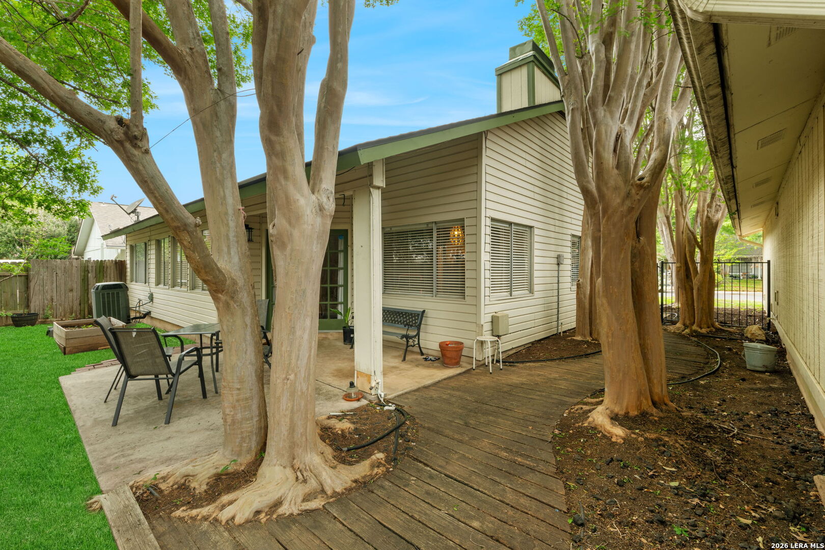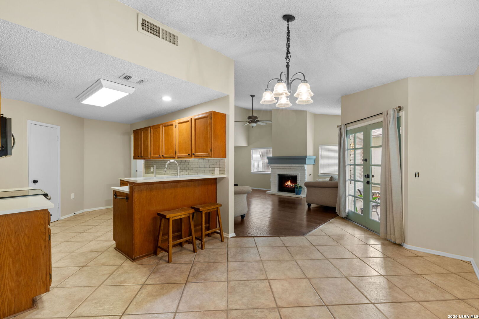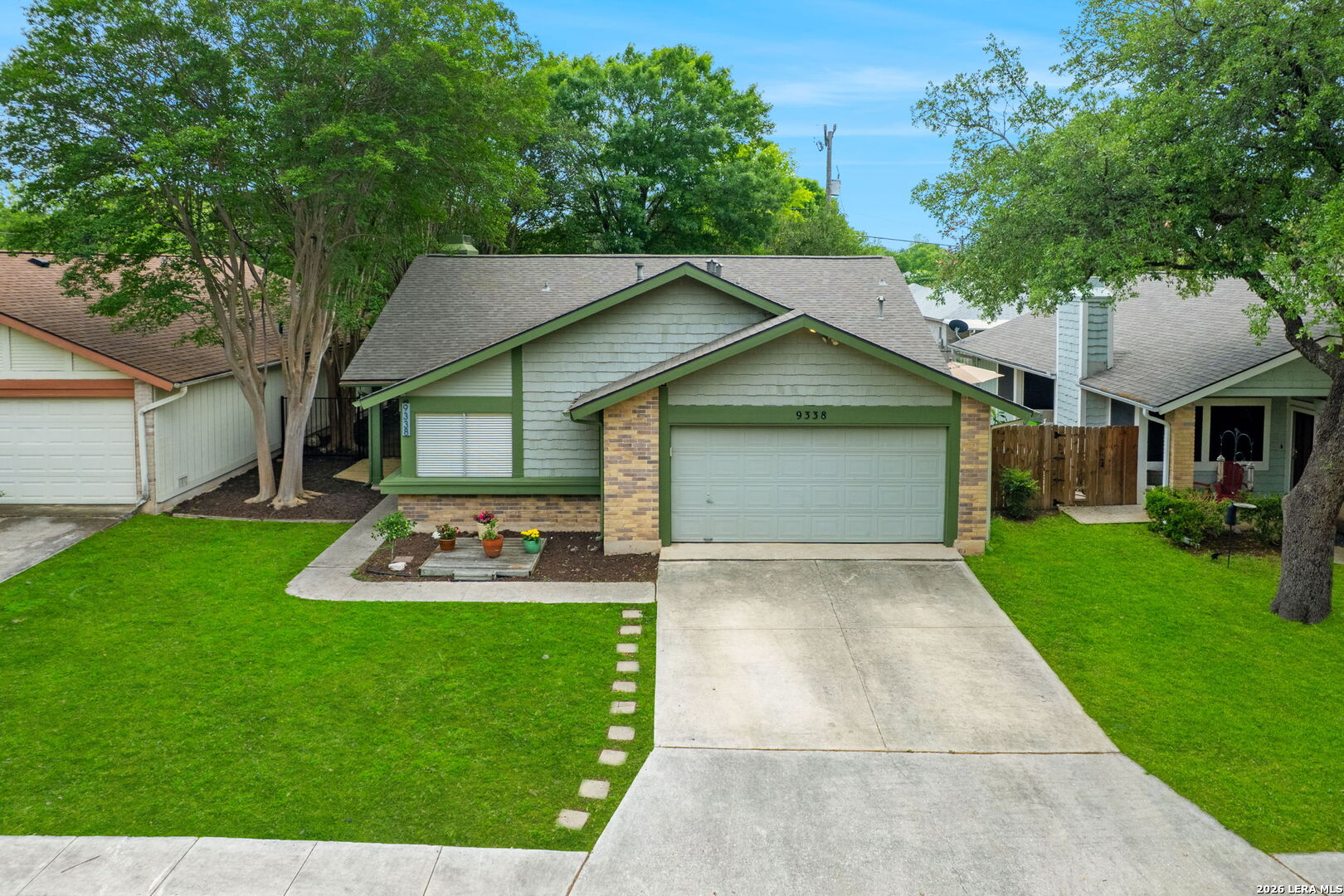 Single story home in the New Territories neighborhood with no HOA, surrounded by mature oak and crepe myrtle trees that add shade and character. Thoughtful recent updates include full exterior and interior paint, updated fixtures, quartz countertops in the kitchen, and upgraded secondary bedroom doors. Step inside to a welcoming living area featuring a fireplace and large windows that fill the space with natural light. Wood flooring runs through the main living areas and hallway, while luxury vinyl flooring extends through the bedrooms for a clean and cohesive feel. The kitchen offers stainless steel appliances, quartz countertops, and a functional layout that connects seamlessly to the main living space. The outdoor spaces are just as inviting with both a front patio and a backyard designed for relaxing or entertaining. Enjoy a covered patio, mature trees, and a privacy fence that creates a comfortable outdoor setting. Located in San Antonio near Helotes and Alamo Ranch, with easy access to Loop 1604, this home offers convenience to nearby shopping, dining, and everyday essentials.