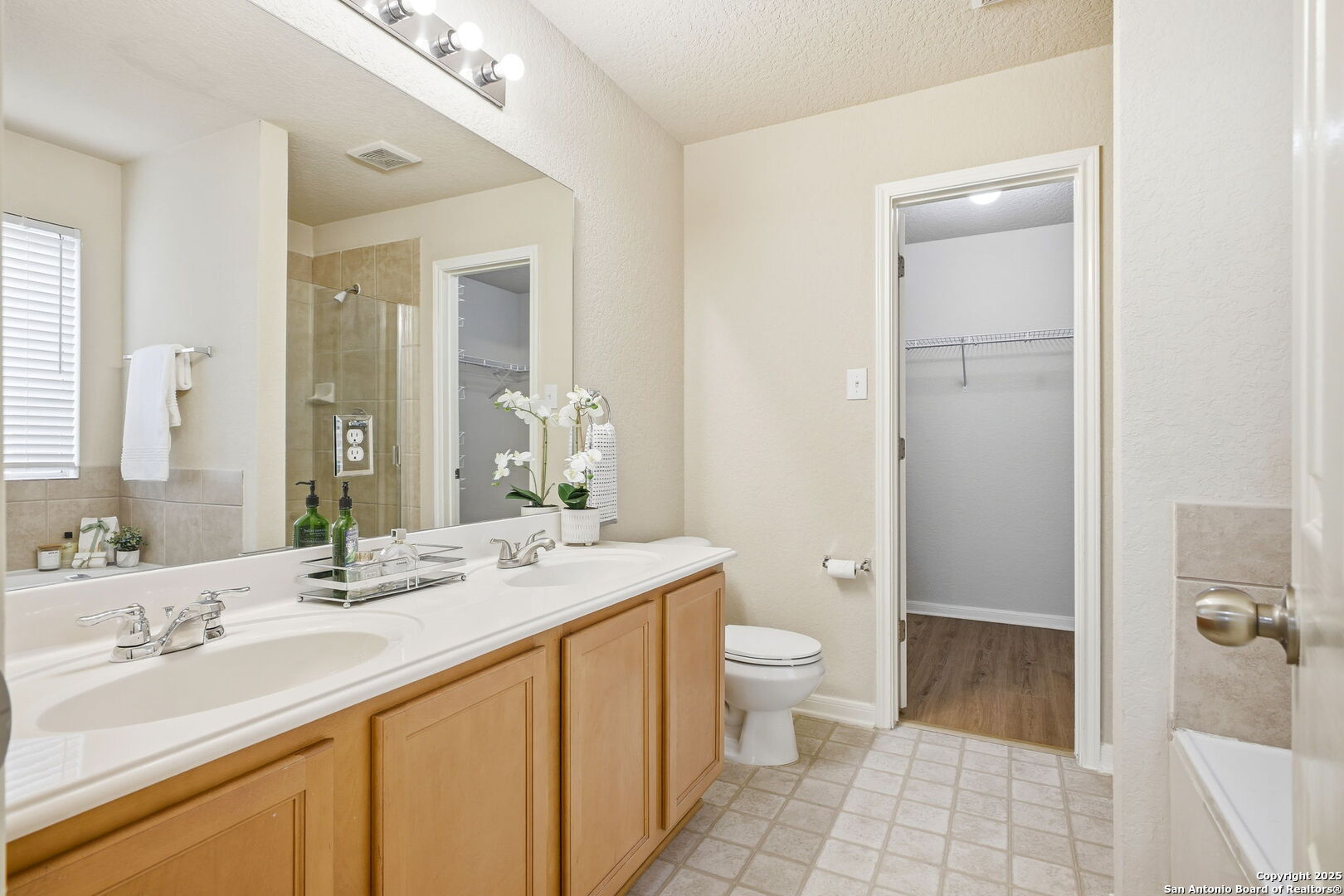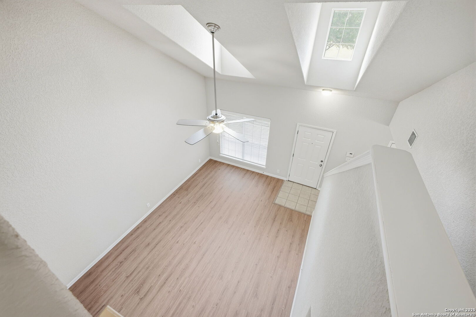 Welcome home to this beautifully maintained move-in-ready two-story home with great curb appeal and sitting porch. This home features a spacious living area with vaulted ceilings and abundant natural light throughout. The open floor plan seamlessly connects directly to the dining area and kitchen overlooking the spacious backyard. The primary suite is conveniently located on the first floor, offers a large bathroom with a shower, garden tub, and dual vanities for added convenience. Upstairs, you'll find two spacious bedrooms and a full bath, providing ample space for family and guests. Step outside to a large backyard with a covered porch and storage shed, ideal for endless family entertainment and relaxing evenings. This home is also conveniently located just outside Loop 410, between Hwy 151 and Hwy 90, providing quick access to shopping, dining, parks, and local attractions. It's also just minutes from Lackland Air Force Base and Sea World, making it perfect for everyday convenience and fun. Schedule your showing today and make this your new home for 2026!