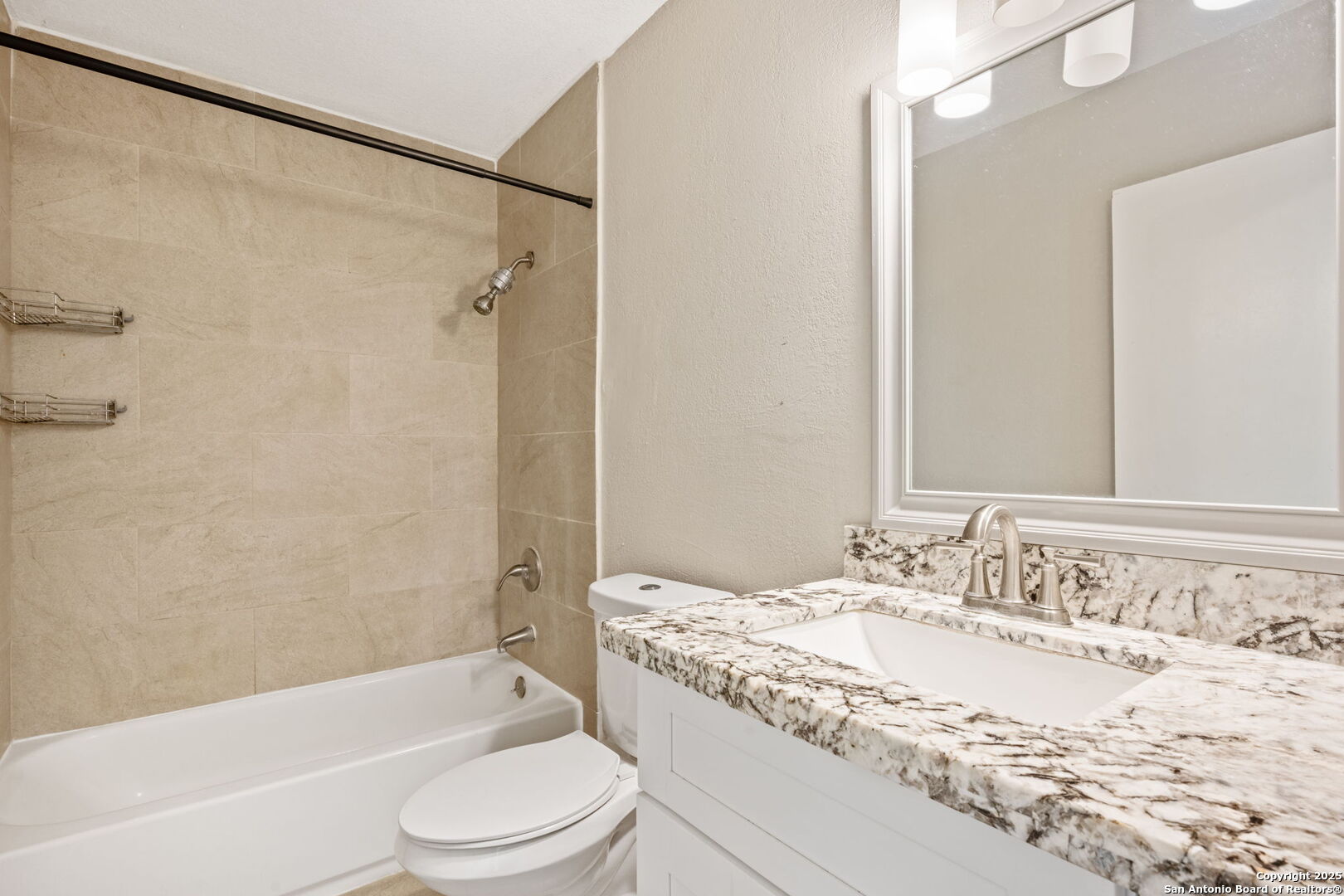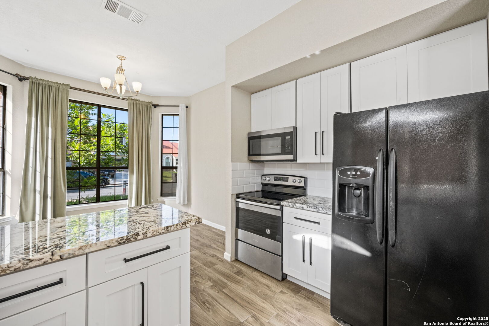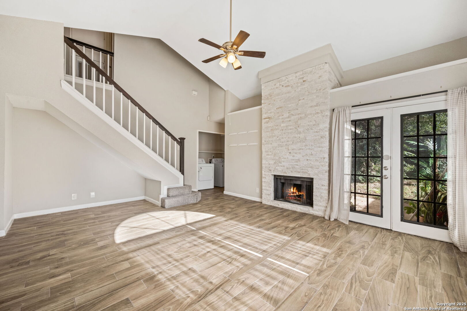 Tucked away on a quiet street, this beautiful 4-bedroom home offers standout style and comfort from the moment you walk in. The soaring ceilings in the entry, kitchen, and living areas create an open, airy feel, while thoughtful touches throughout the home make it truly special. The kitchen features unique granite countertops, soft-close cabinetry, and sleek appliances (this home comes with ALL appliances including TWO refrigerators). The owner's suite is located on the main level and includes a spacious walk-in shower with dual shower heads-your own personal retreat. Additional highlights include: * Designer wood-look tile flooring * Custom stacked stone fireplace * Plush carpet in all upstairs bedrooms * Updated lighting fixtures throughout * Durable Hardi-plank siding * Elegant glass front door Located minutes from Lackland AFB, 1604, and Alamo Ranch shopping, with access to great neighborhood amenities. Don't miss your chance-homes like this don't come around often!