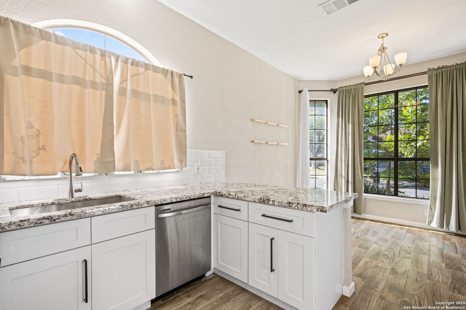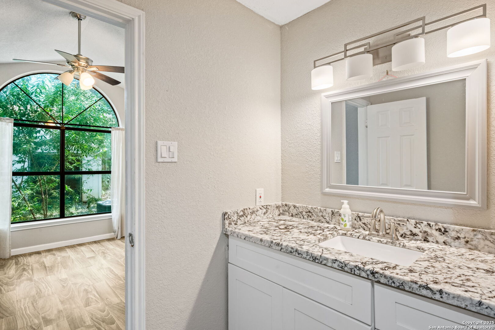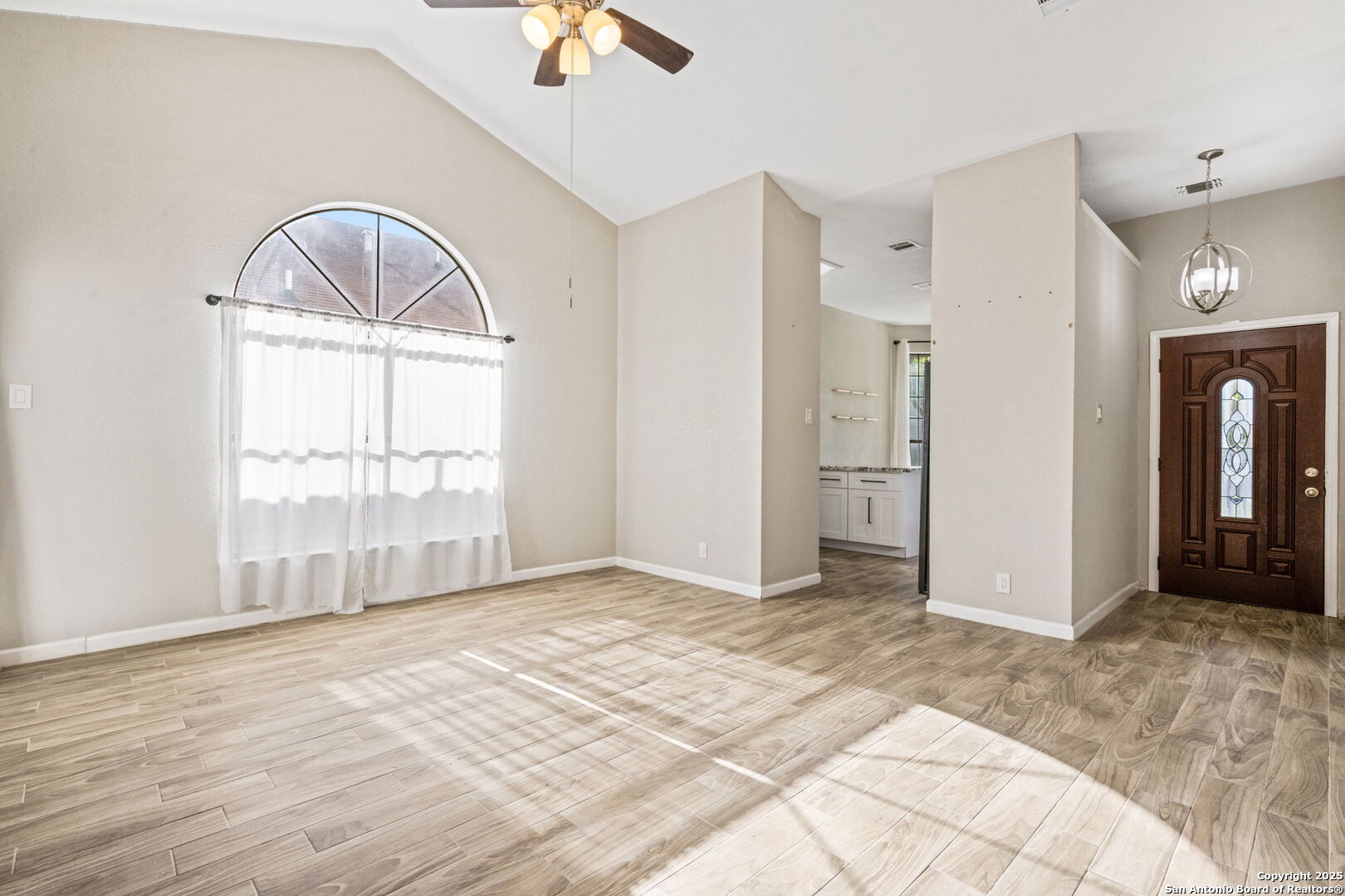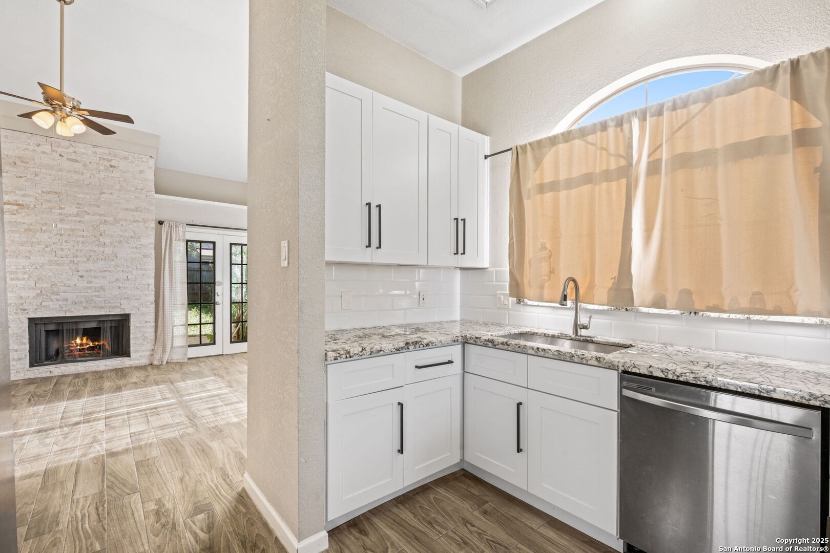 Tucked away on a quiet street, this beautiful 4-bedroom home offers standout style and comfort from the moment you walk in. The soaring ceilings in the entry, kitchen, and living areas create an open, airy feel, while thoughtful touches throughout the home make it truly special. The kitchen features unique granite countertops, soft-close cabinetry, and sleek appliances (this home comes with ALL appliances including TWO refrigerators). The owner's suite is located on the main level and includes a spacious walk-in shower with dual shower heads-your own personal retreat. Additional highlights include: * Designer wood-look tile flooring * Custom stacked stone fireplace * Plush carpet in all upstairs bedrooms * Updated lighting fixtures throughout * Durable Hardi-plank siding * Elegant glass front door Located minutes from Lackland AFB, 1604, and Alamo Ranch shopping, with access to great neighborhood amenities. Don't miss your chance-homes like this don't come around often!