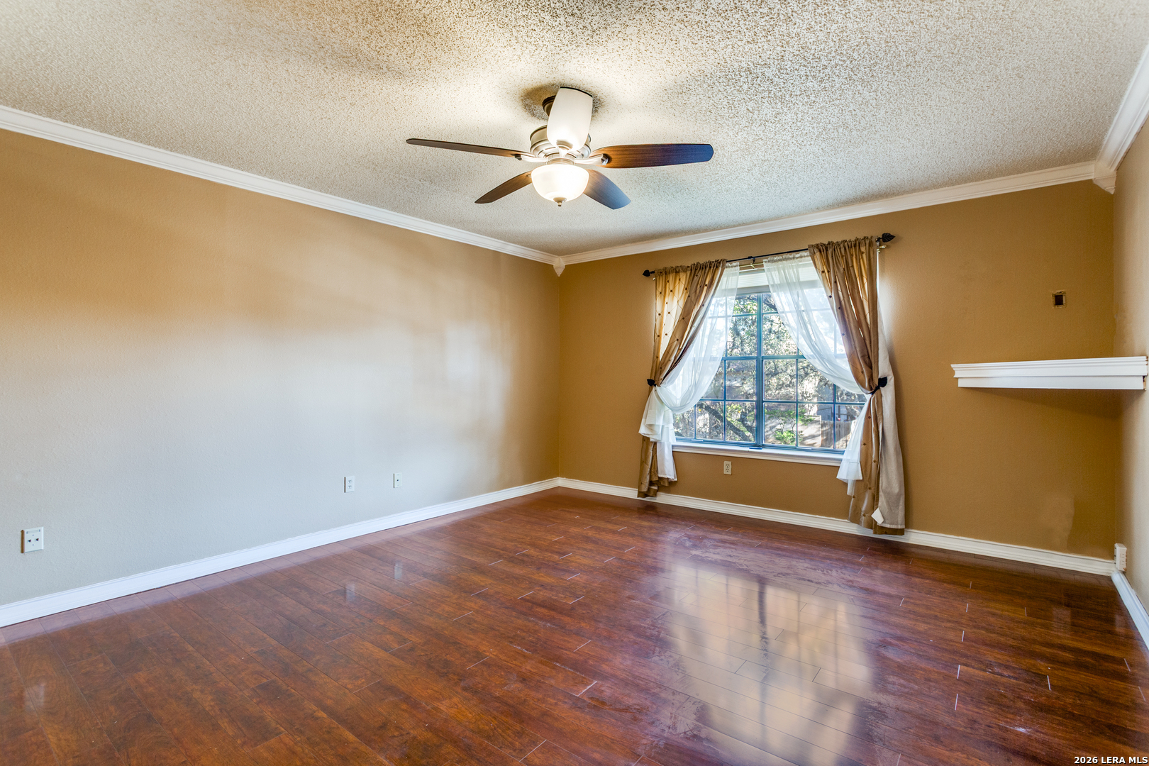 Very nice home in a quiet neighborhood. Two large living areas downstairs plus a bonus room that could be used for a study, game/computer room, or a exercise studio. Updated kitchen with granite countertops and recent stainless appliances. All bedrooms are upstairs. Primary suite with ceiling fan, en-suite bath with 2 walk-in closets and a double vanity. Laminate flooring and some ceramic tile. No carpet. Big covered patio that overlooks oak-studded backyard. No pets. Available now. Move-in ready!