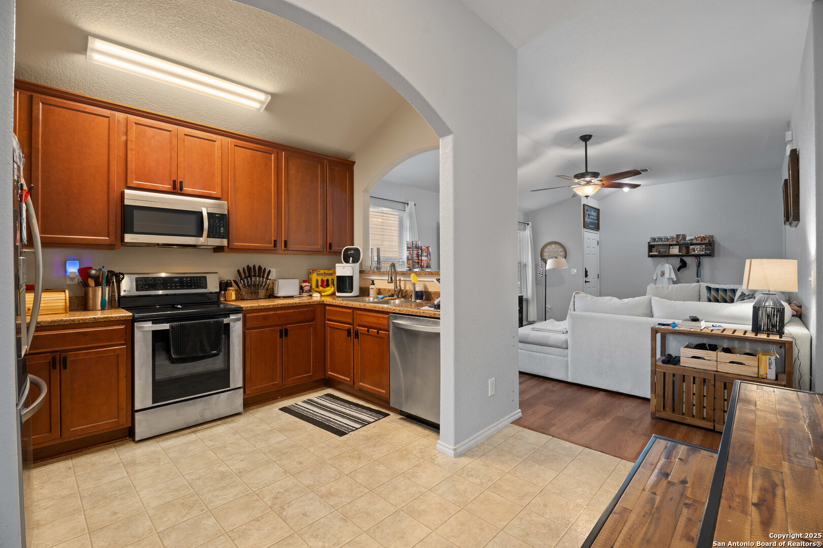 Located in the growing city of Converse, this beautiful 1 story home features an open floorplan with large rooms and lots of closet space. Backyard features covered patio with ceiling fan. The home is minutes from Randolph AFB, right off 1604, close to I-35, close to shopping centers and restaurants. This home will fit just right for any family or first time home buyers looking to move just outside the city limits of San Antonio! Schedule your private tour today!