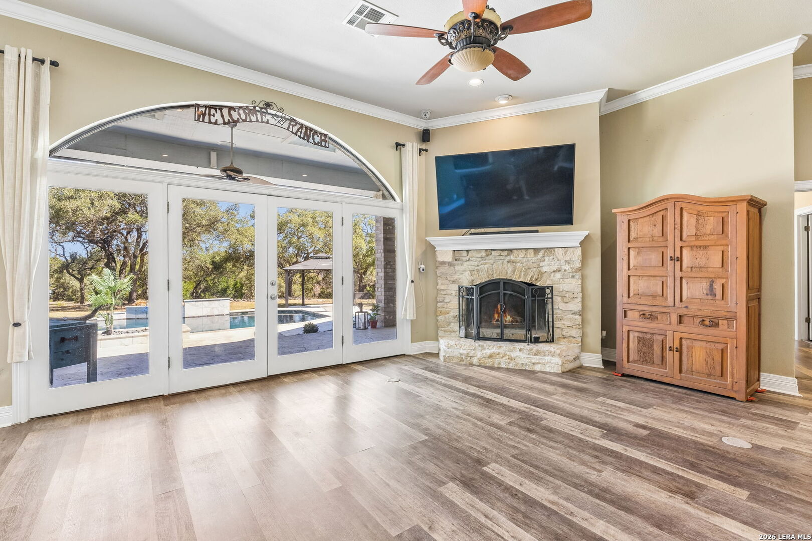 Tucked away on over 2.5 acres of scenic Hill Country beauty, this timeless one-story estate at 9435 Cross Mountain Trail offers space, privacy, and a parklike setting. With over 3,311 square feet, this 4-bedroom, 3-bathroom home showcases the craftsmanship and luxury details of its era, blended with a classic design that continues to stand the test of time. The home features expansive living areas, generous bedrooms, and architectural touches that reflect true quality construction. Walls of windows invite in natural light and capture the breathtaking surroundings, while the layout provides both comfort and functionality for everyday living and entertaining. Step outside to an expansive covered patio that stretches across the entire back of the home, creating the perfect outdoor living space to relax, entertain, and enjoy the peaceful nights. The property also features a large pool, ideal for summer gatherings, and a separate garage apartment, offering flexibility for guests, extended family, or private workspace. Set on a rare 2.5+ acre homesite, this property delivers the feel of country living while still being conveniently located near city amenities. With its timeless appeal, solid construction, and incredible outdoor space, this is a unique opportunity to own a truly special home in one of the area's most desirable settings.