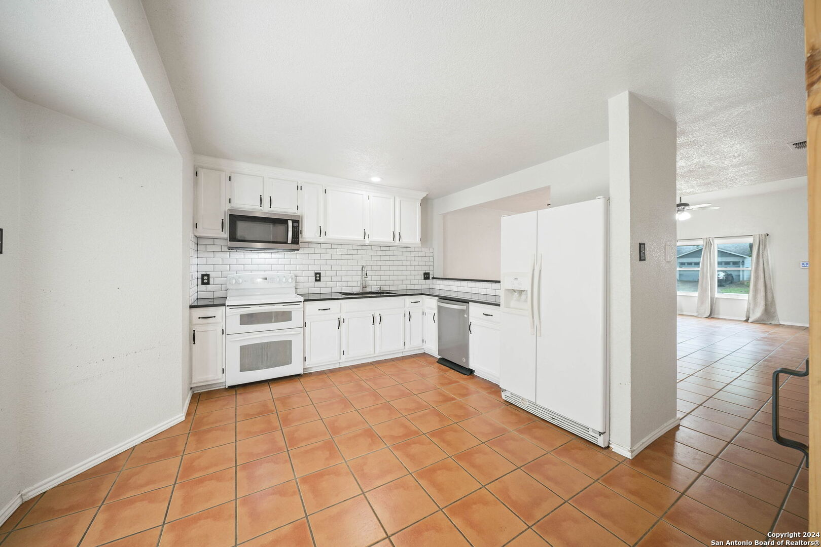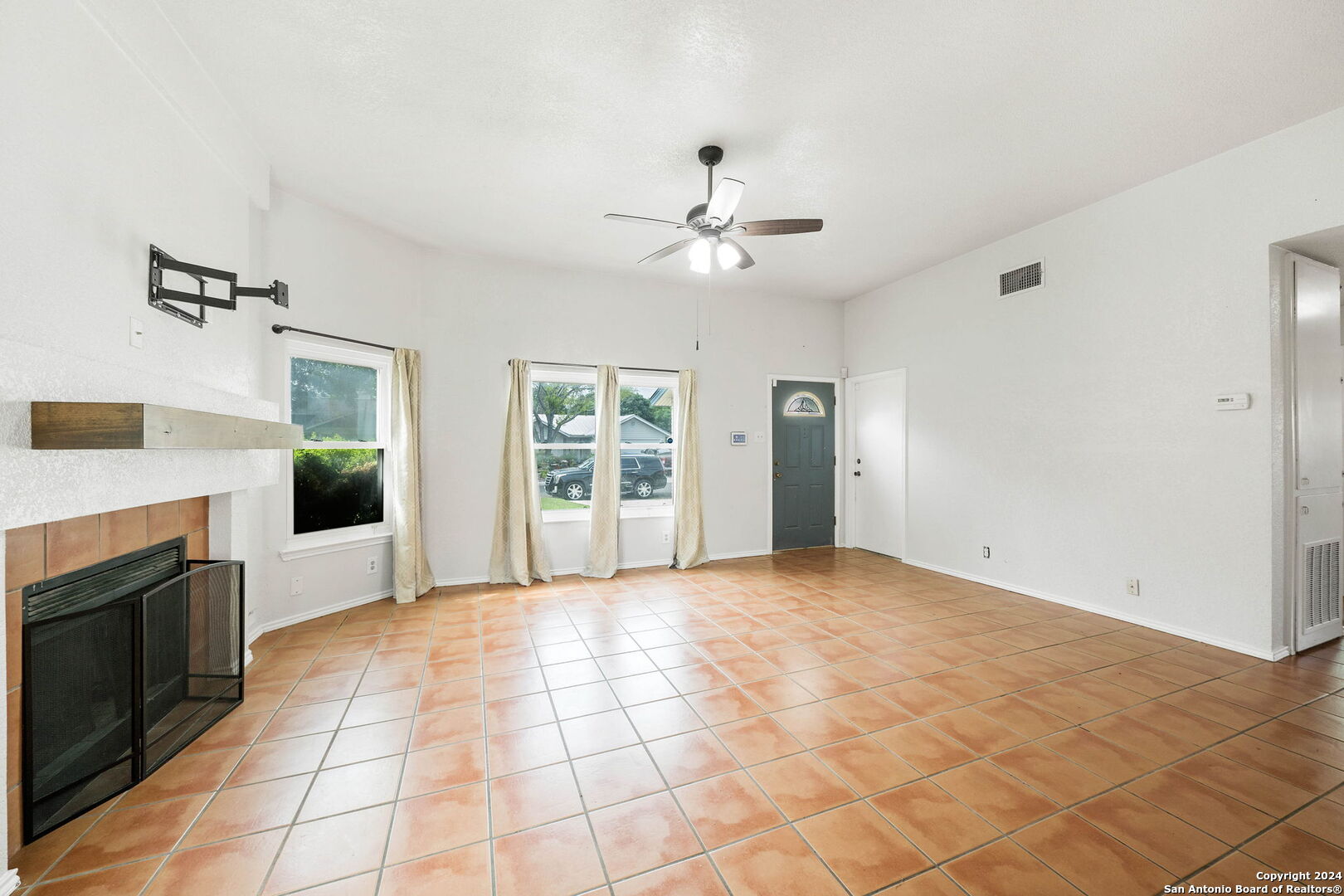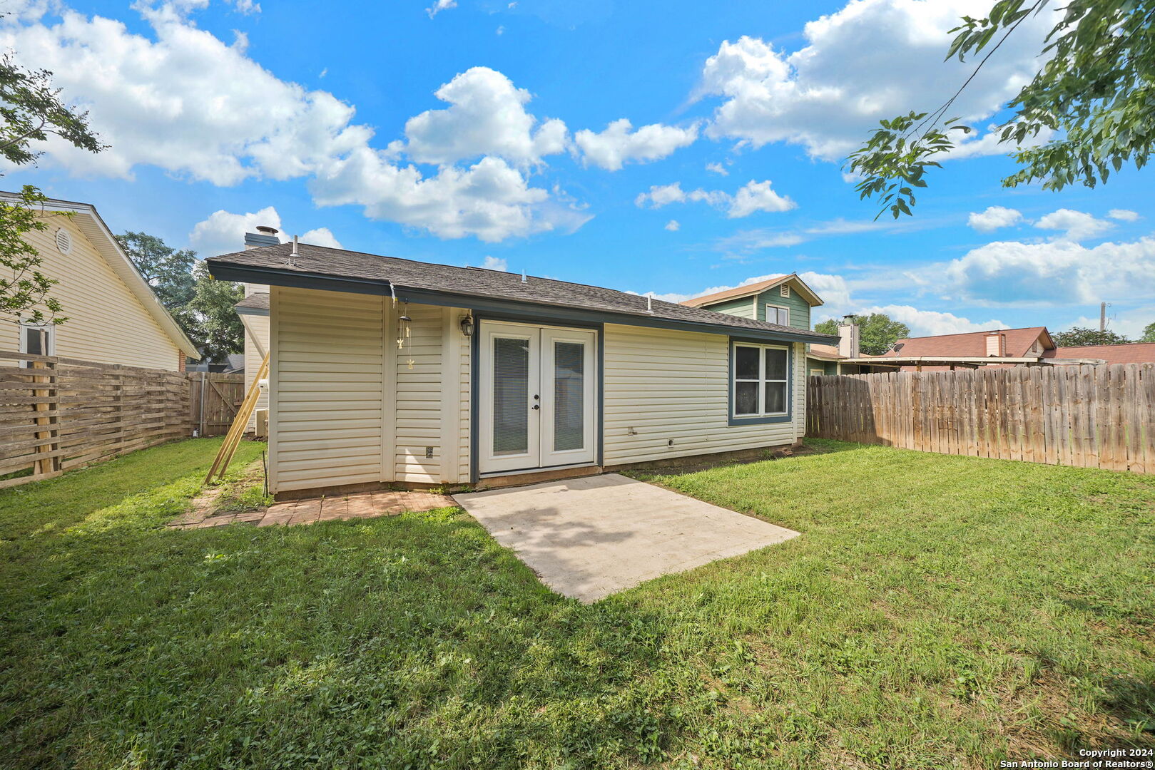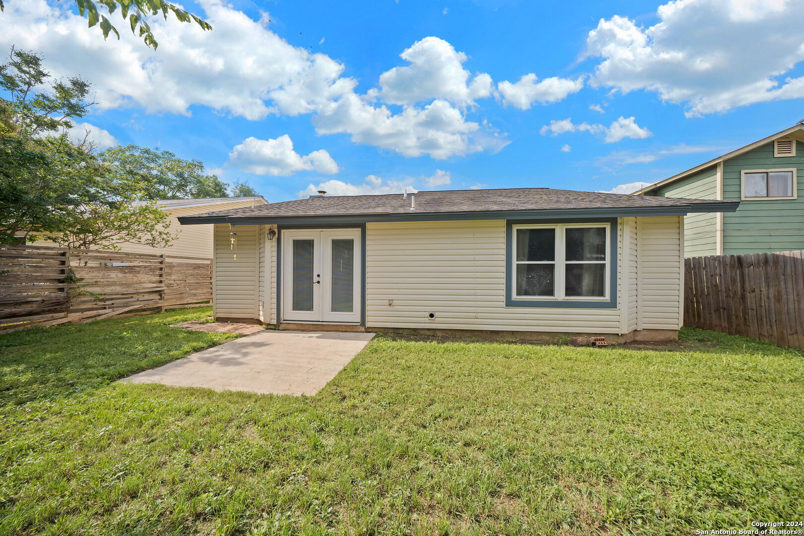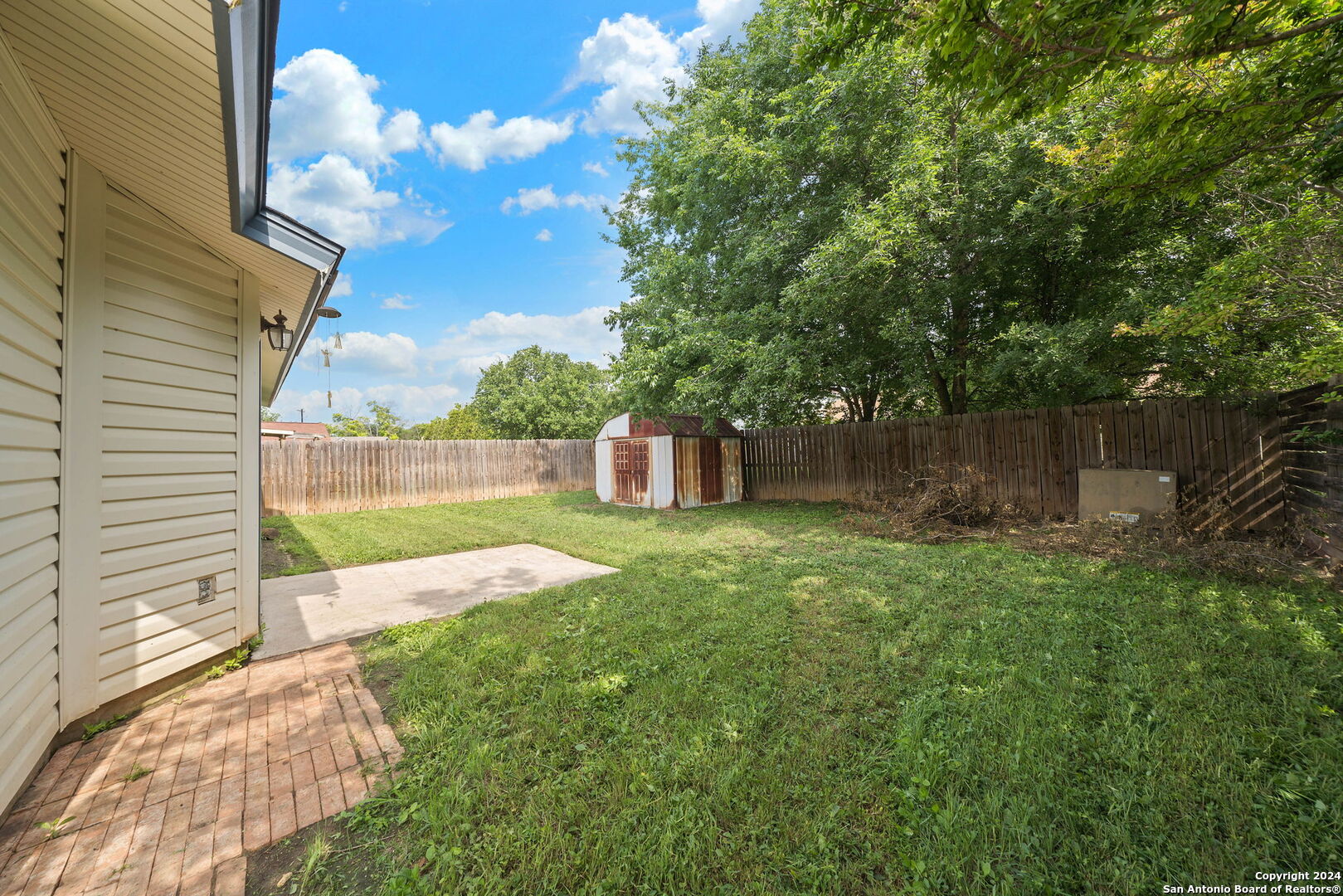 ***Move in Special.. ONE MONTH FREE RENT!! Charming 3-bedroom, 2-bath home in the desirable Emerald Valley subdivision featuring high ceilings and abundant natural light throughout. The living room offers a cozy wood-burning fireplace, perfect for cool evenings, and flows seamlessly into the spacious kitchen. With white cabinetry, dark countertops, a subway tile backsplash, and refrigerator included, the kitchen is both stylish and functional, offering a great view into the living space. The primary suite is generously sized with a walk-in closet and private bath complete with a double vanity and stand-alone shower. Secondary bedrooms provide flexibility for family, guests, or a home office. Step outside to a fully fenced backyard with a storage shed and plenty of room for outdoor enjoyment. Conveniently located near major highways, UTSA, Alamo Ranch, Seaworld, shopping, dining, and entertainment, this home combines comfort with convenience. Pets are considered on a case-by-case basis.