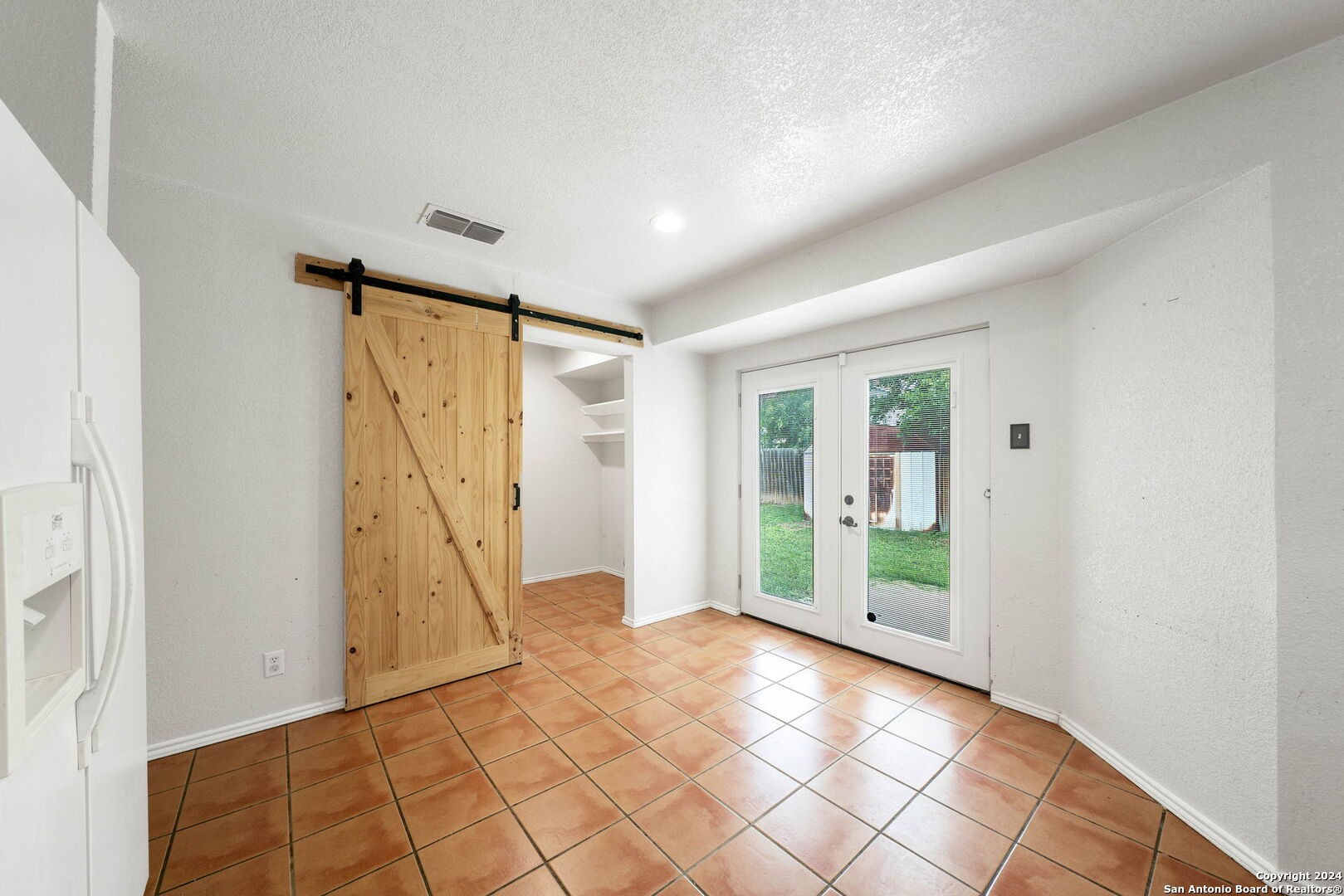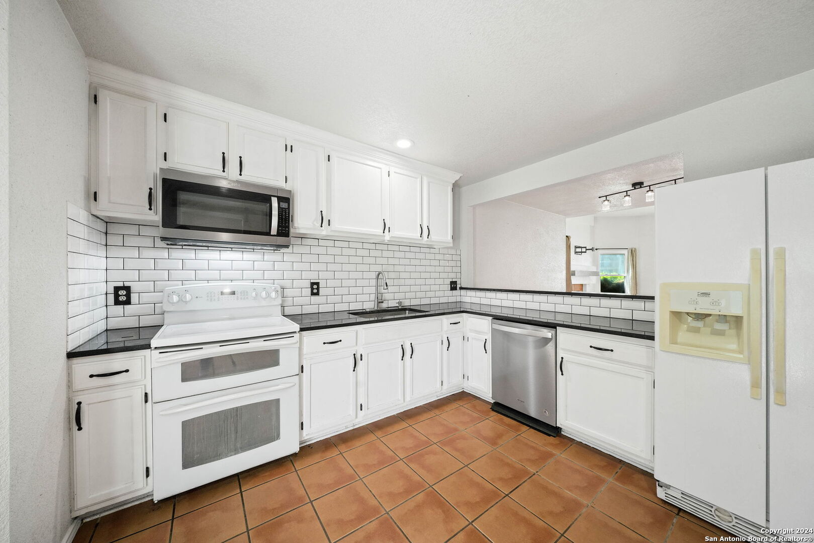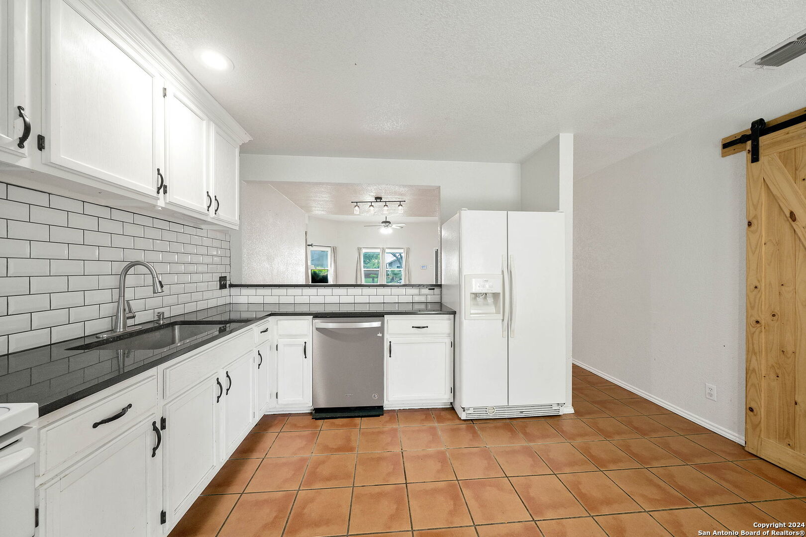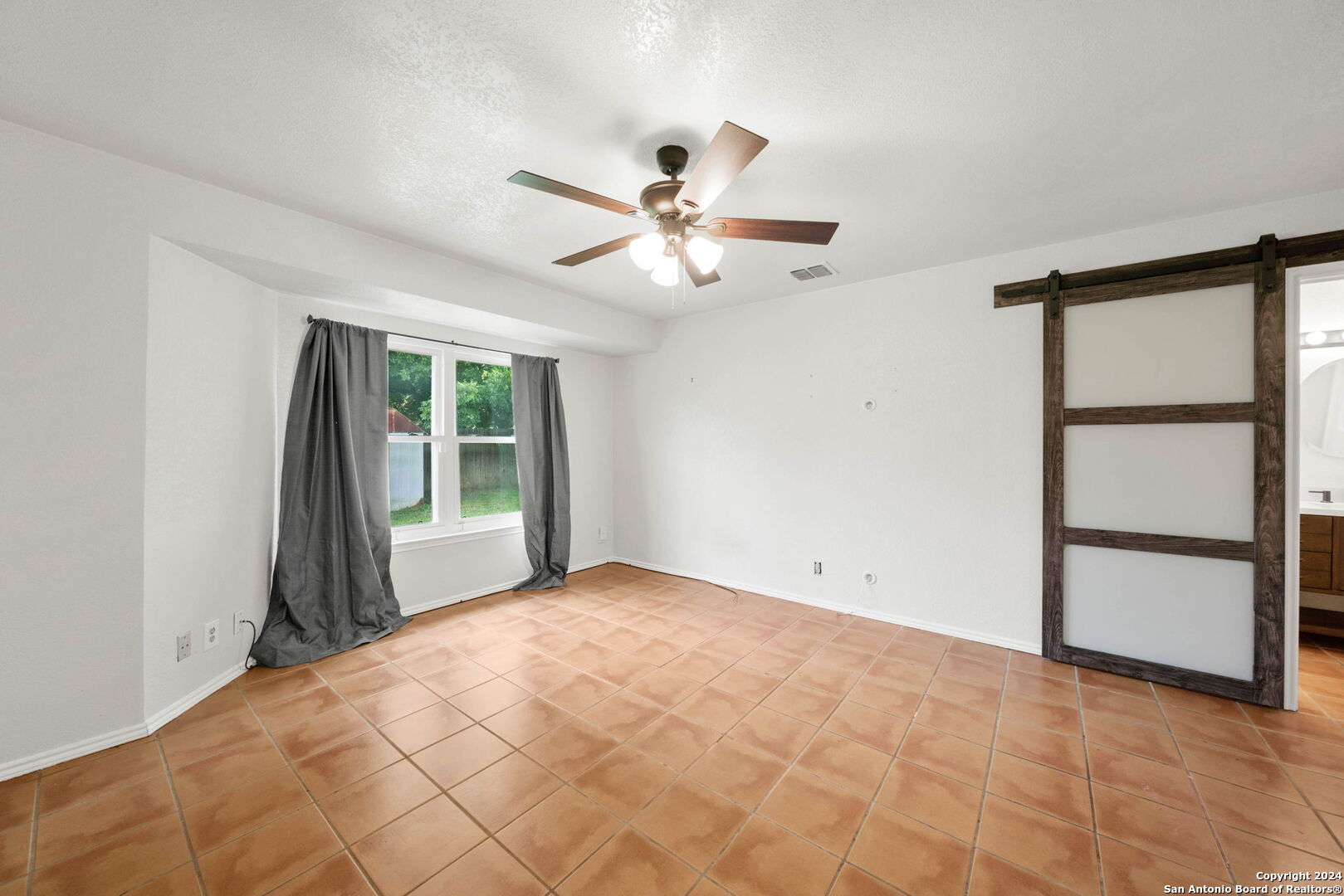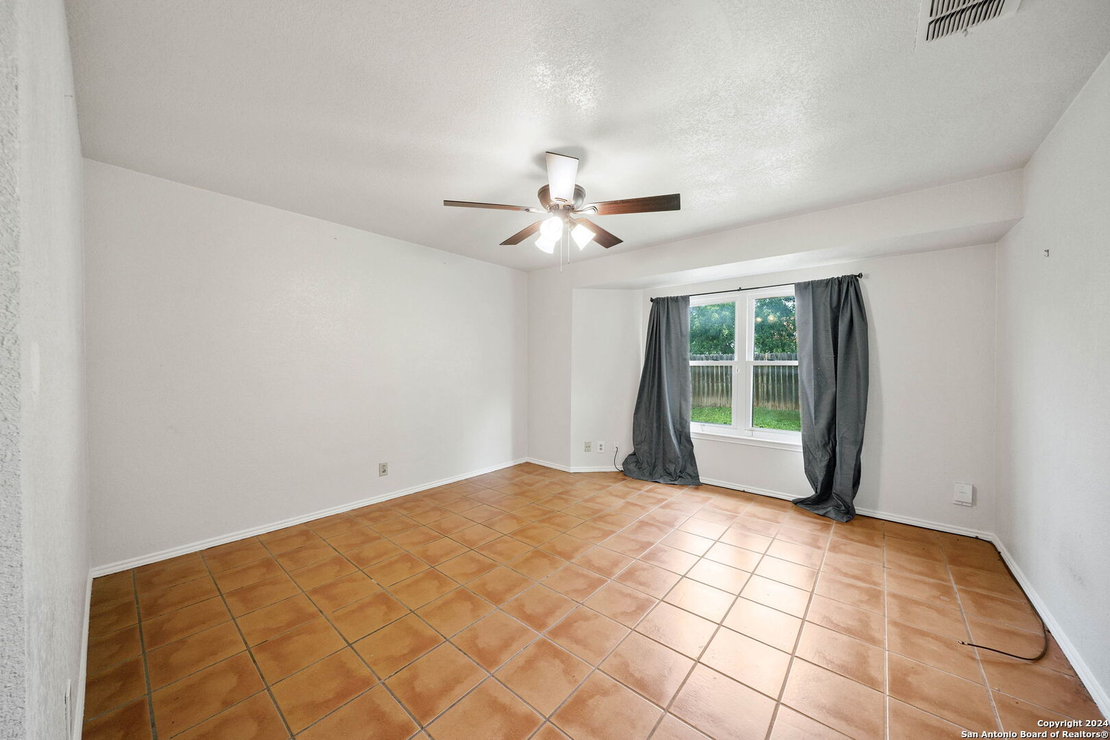 ***Move in Special.. ONE MONTH FREE RENT!! Charming 3-bedroom, 2-bath home in the desirable Emerald Valley subdivision featuring high ceilings and abundant natural light throughout. The living room offers a cozy wood-burning fireplace, perfect for cool evenings, and flows seamlessly into the spacious kitchen. With white cabinetry, dark countertops, a subway tile backsplash, and refrigerator included, the kitchen is both stylish and functional, offering a great view into the living space. The primary suite is generously sized with a walk-in closet and private bath complete with a double vanity and stand-alone shower. Secondary bedrooms provide flexibility for family, guests, or a home office. Step outside to a fully fenced backyard with a storage shed and plenty of room for outdoor enjoyment. Conveniently located near major highways, UTSA, Alamo Ranch, Seaworld, shopping, dining, and entertainment, this home combines comfort with convenience. Pets are considered on a case-by-case basis.