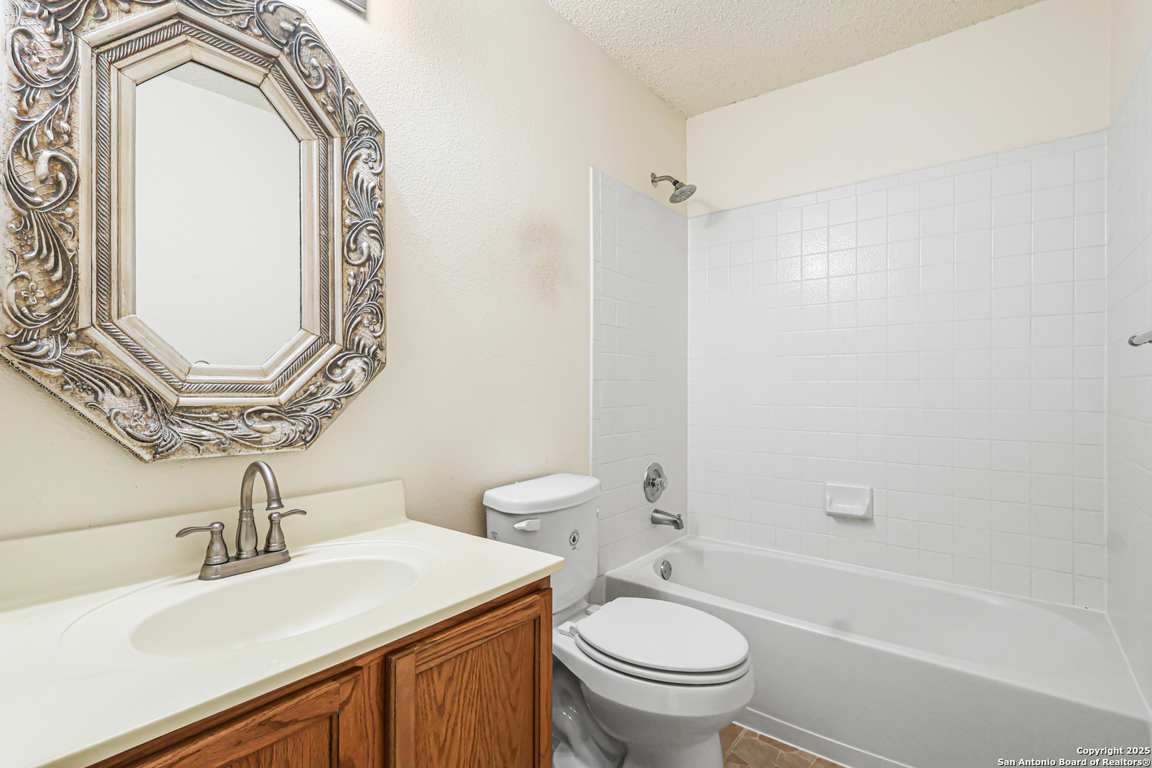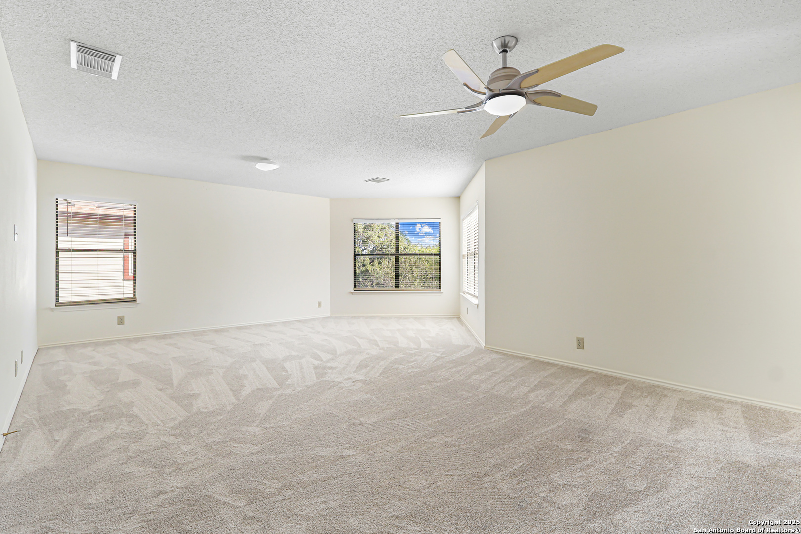 This charming 3-bedroom, 2.5-bathroom home is located in the highly sought-after Northwest neighborhood of Silverbrook on a prime corner lot. With low-maintenance, 4-sided brick construction, this home has been well-maintained, featuring a new roof and HVAC system installed in the last 5 years for added peace of mind. Inside, the spacious open floor plan showcases wood laminate flooring throughout the living areas on the main level and new carpet upstairs. The island kitchen is equipped with stainless steel appliances and plenty of cabinet space, perfect for both everyday meals and entertaining. The large primary bedroom serves as a true retreat, complete with an oversized walk-in closet. Two secondary bedrooms are conveniently split by a spacious game room, offering flexibility for various needs. This home also offers easy access to Loop 1604, UTSA, La Cantera, shopping, and entertainment, making it a perfect location for convenience and lifestyle. Ready for its new owner, this home is sure to impress.