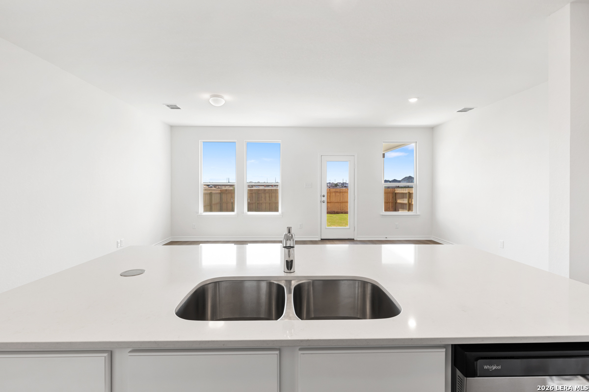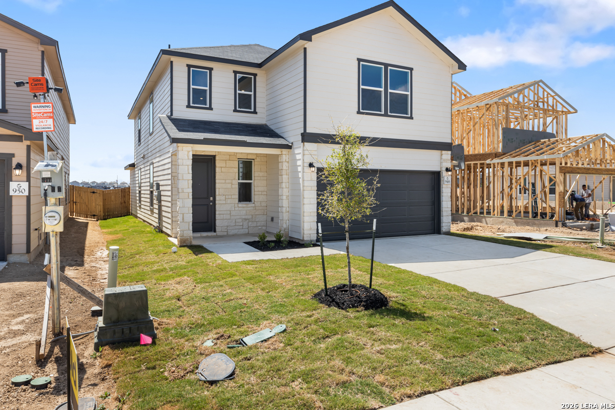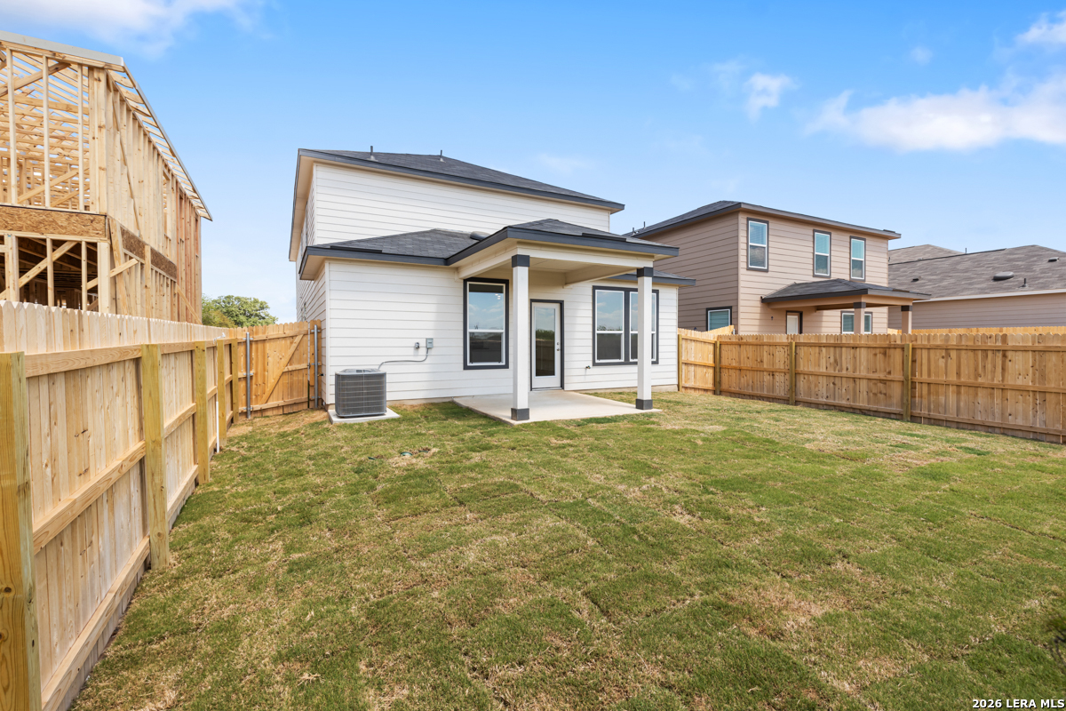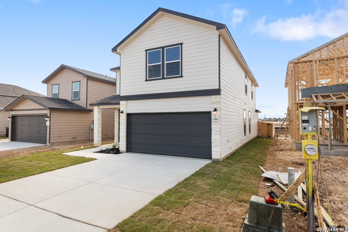 This inviting home features 9-ft. first-floor ceilings that enhance the spacious feel of the main living areas. The kitchen is beautifully appointed with Whirlpool stainless steel appliances, Woodmont Belmont 42-in. upper cabinets, elegant Silestone countertops in Linen Cream, and a complementary Daltile tile backsplash. The primary bath offers a raised vanity and a 42-in. shower with Daltile tile surround for a refined touch. Stylish details include a Carrara-style entry door, Kwikset Polo interior door hardware, Shaw carpet in the bedrooms, and durable vinyl plank flooring in the bathrooms, kitchen, and living room. A covered patio and fully sodded yard complete this well-designed home.