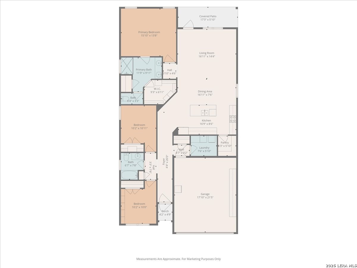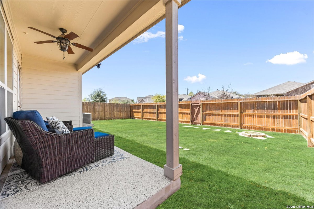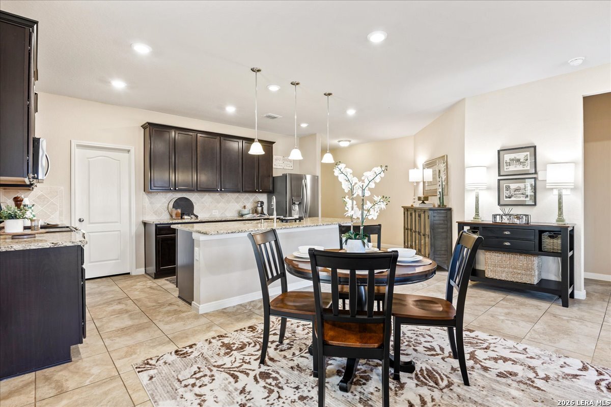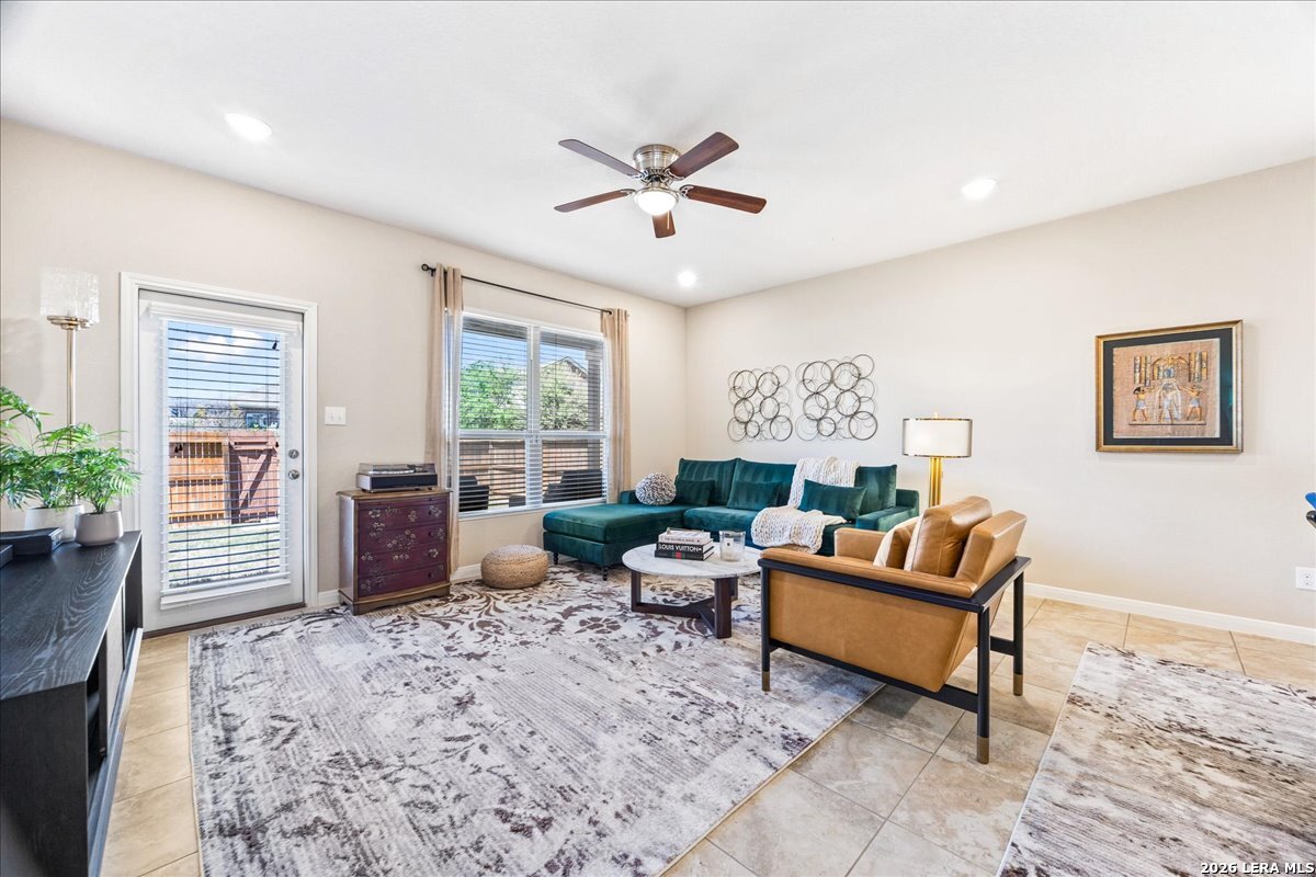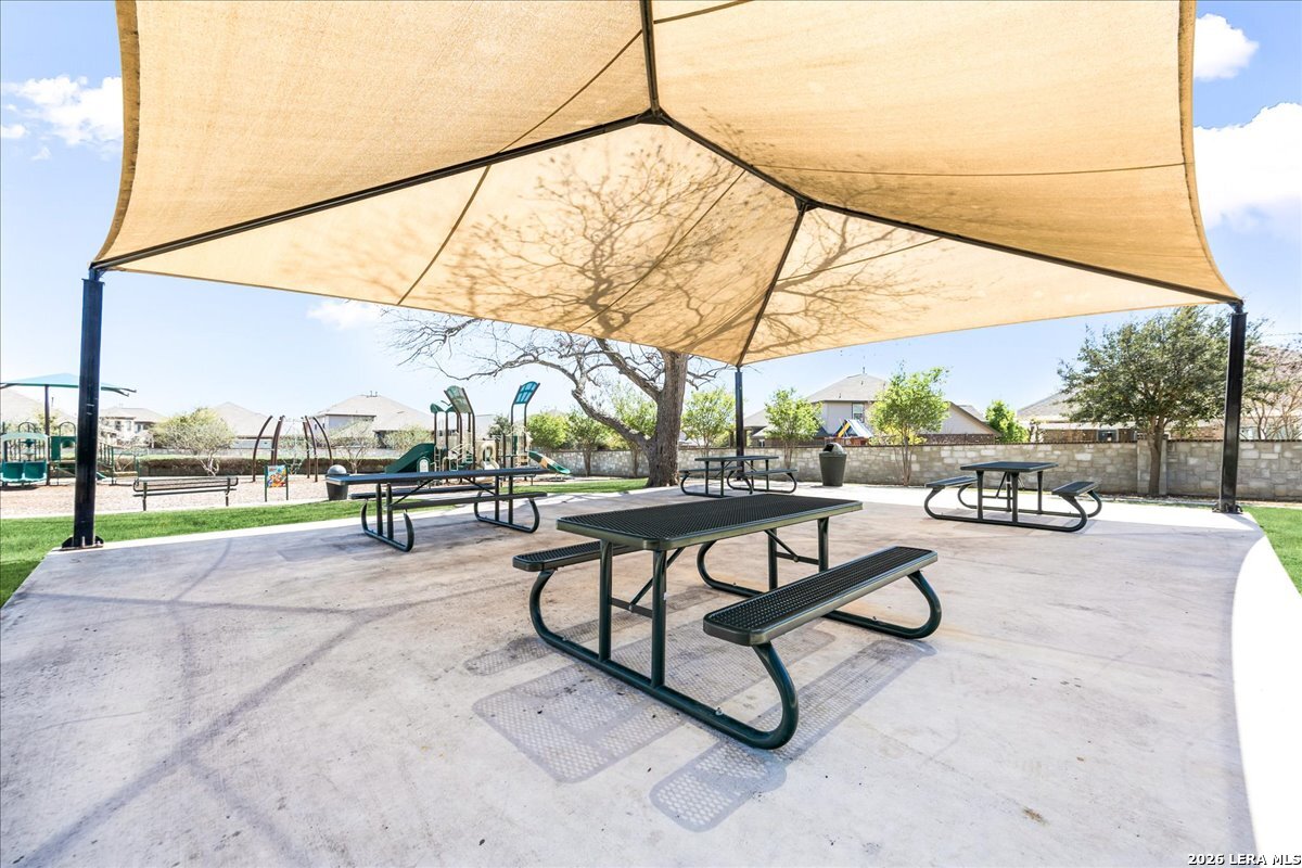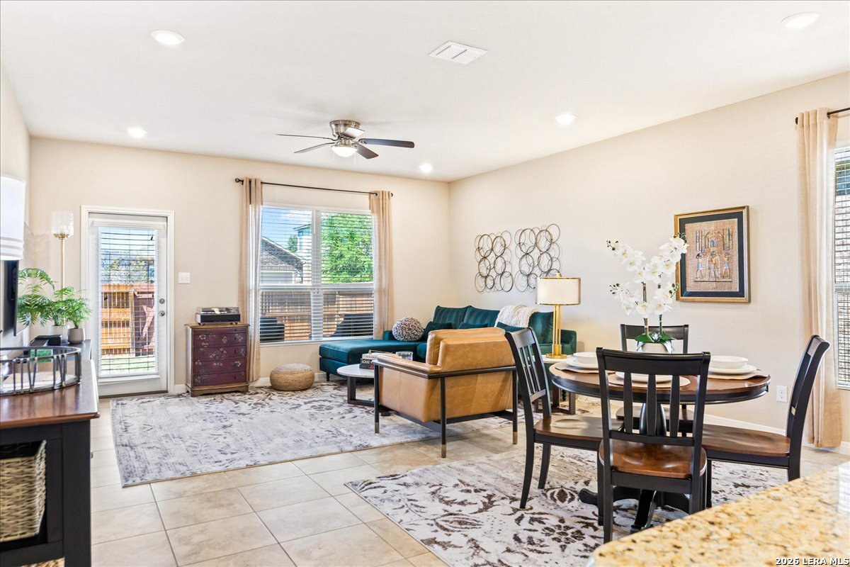 Looking for a move-in ready one-story home in Northwest San Antonio close to Lackland AFB with an open layout and modern finishes? Welcome to 9503 Bricewood Oak in the Bricewood subdivision-a well-kept 3-bedroom, 2-bath home built in 2017 with a layout that feels both open and easy to live in. This home is perfect if you want a simple, functional space with room to relax or host friends and family. As you walk in, you'll notice the bright, open floor plan that connects the living room, dining area, and kitchen. The kitchen is the heart of the home, featuring a large center island, granite countertops, tile backsplash, and plenty of cabinet and counter space. Whether you're cooking dinner or entertaining, everything flows together. The oversized tile flooring adds a clean, modern feel and is easy to maintain. The primary suite offers a quiet place to unwind, with a walk-in tile shower and custom built-ins in the master closet for added storage and organization. Step outside and enjoy a low-maintenance yard on a .11-acre lot-great for relaxing evenings or weekend get-togethers without a lot of upkeep. Located in the Bricewood community, you'll have access to neighborhood amenities like a park, playground, sports court, and dog park. Zoned to Fields Elementary, Folks Middle School, and Harlan High School, and just a short drive to Lackland AFB, shopping, and major roads for an easy commute.