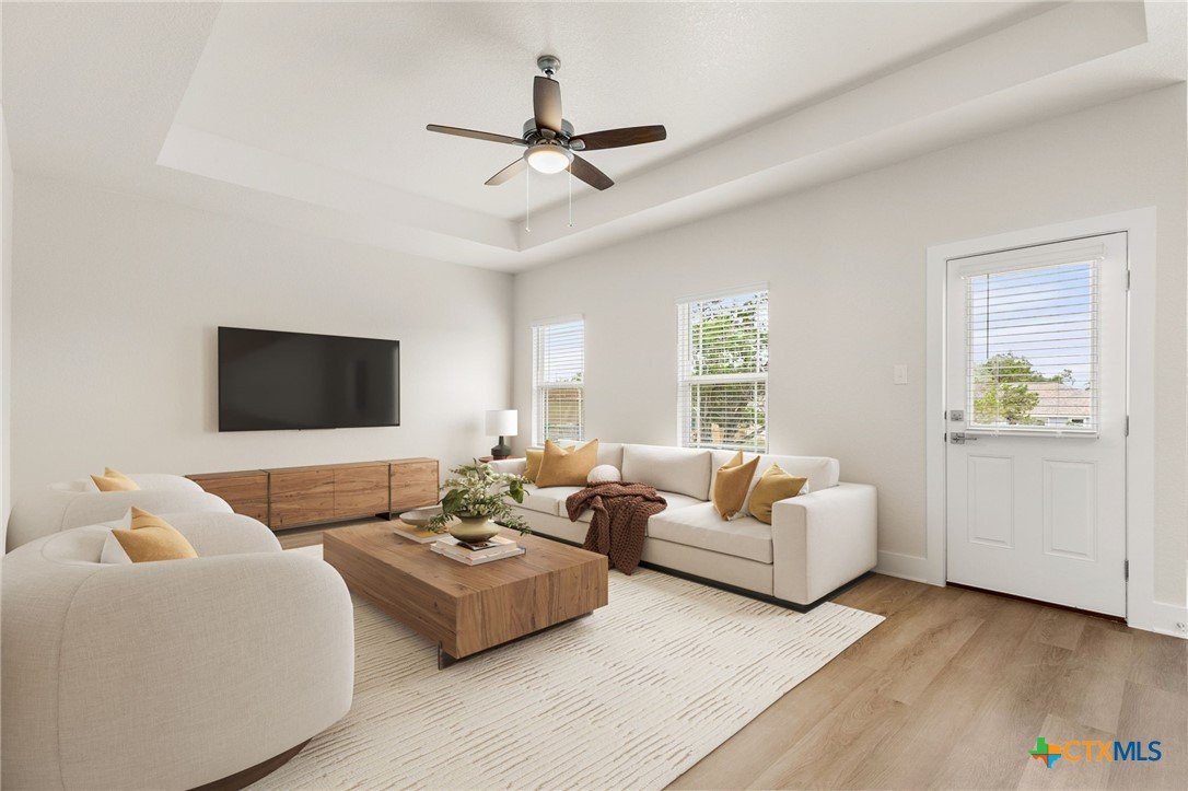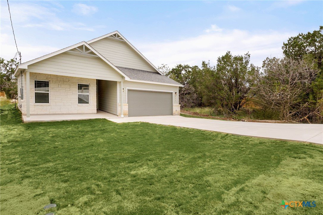 Impressive 3 bedroom, 2 bathroom new construction home, skillfully crafted by Stellar Built, LLC. A plethora of high-end upgrades adorn this residence, including exquisite granite countertops in the kitchen and bathrooms, complemented by stainless steel appliances and 42" cabinetry adorned with modern hardware. The kitchen is a culinary haven, boasting a generously sized island illuminated by elegant pendant lighting. The master bathroom exudes opulence, featuring a spacious tiled walk-in shower that invites relaxation and rejuvenation. Throughout the home, you'll discover thoughtful amenities like mini blinds, a 2 car garage with garage door opener, and a charming covered front porch. The open-concept design is enhanced by the warm ambiance of recessed lighting. Step outside onto the oversized back patio, where you can bask in the outdoors, surrounded by a beautifully landscaped yard with full sod in both the front and back. The home offers easy access to HWY 281 and is in close proximity to Canyon Lake. The neighborhood boasts direct access to the river and lake, featuring boat ramp 11, and a private river park for water enthusiasts. Residents can also enjoy community amenities such as a pool, sports courts, and more, making this an ideal place to call home. Situated in a prime location, indulge in a picturesque journey, exploring quaint neighboring towns, and embarking on some sightseeing or treasure hunting in antique shops. Discover the charm of local wineries nearby, hike along the Canyon Lake Dam or through the breathtaking Gorge, or paddle your way through the Guadalupe River. As night falls, immerse yourself in the rhythm of the outdoors at a captivating concert held at the Whitewater Amphitheater. Whatever your passions may be, this home caters to a wide range of interests. With convenient access to San Antonio, New Braunfels, Wimberley, and Austin, your options for adventure and entertainment are boundless.