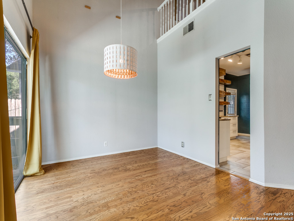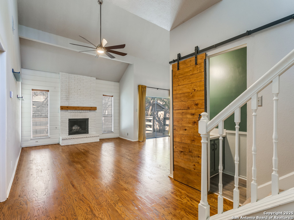 Beautifully updated home with hardwood floors and soaring ceilings. Spacious living room with an inviting fireplace and large adjacent dining room with gorgeous pendant lighting. Smartly updated kitchen offers stainless appliances (refrigerator included), stylish open wood shelving, ample cabinetry storage. Primary bedroom suite has access to the backyard and an updated bathroom with double vanity, soaking tub and two closets. There are two secondary bedrooms, full bath and loft upstairs. An updated half bath downstairs is concealed with a barn door. The lovely backyard deck, with access from the primary bedroom and dining room overlooks a private backyard. Washer and dryer convey. Approx. $150,000 mortgage balance assumable at 3.625%