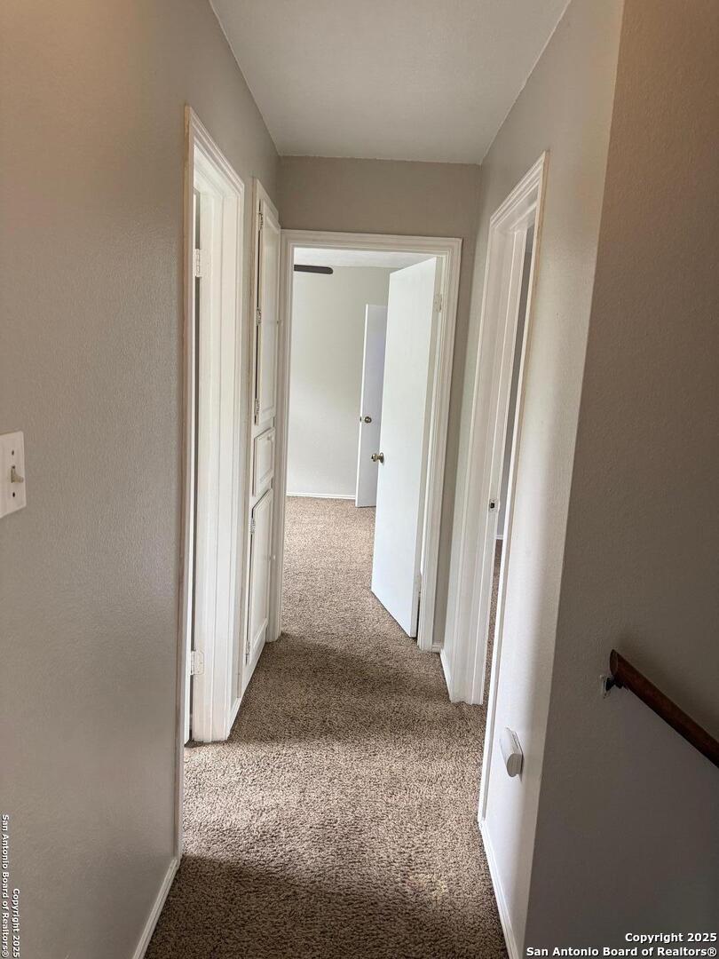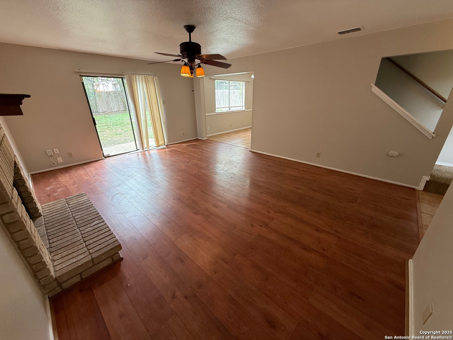 Presenting a beautiful 3-bedroom, 2.5-bath home with a 2-car garage. Recently Repainted, this home features laminate floors in the living room and ceramic tile in the kitchen, dining room, and all bathrooms, as well as a brick fireplace in the living room. The master bedroom and second bedroom have bay windows, creating larger living spaces, there walk-in closets in every. The yard is adorned with nice trees, and the kitchen sink overlooks the backyard. Conveniently located near a shopping center and Fiesta Texas. Avoid a cash deposit by qualifying for Obl's deposit-free-in option!
