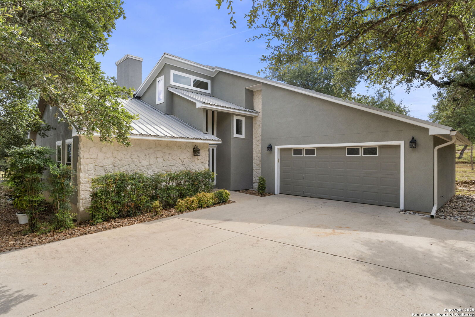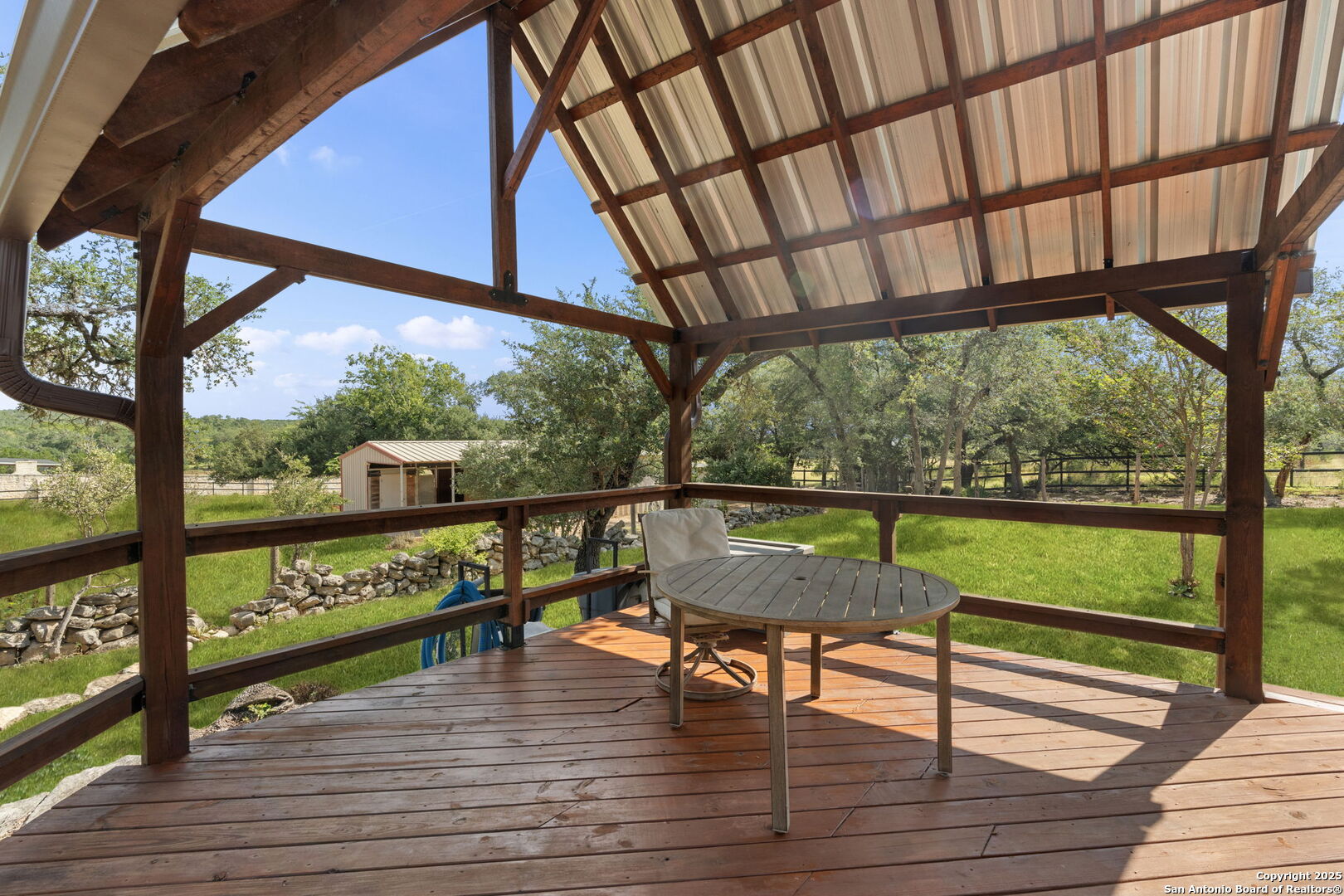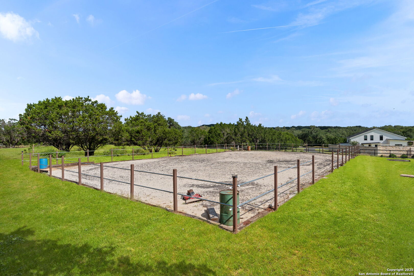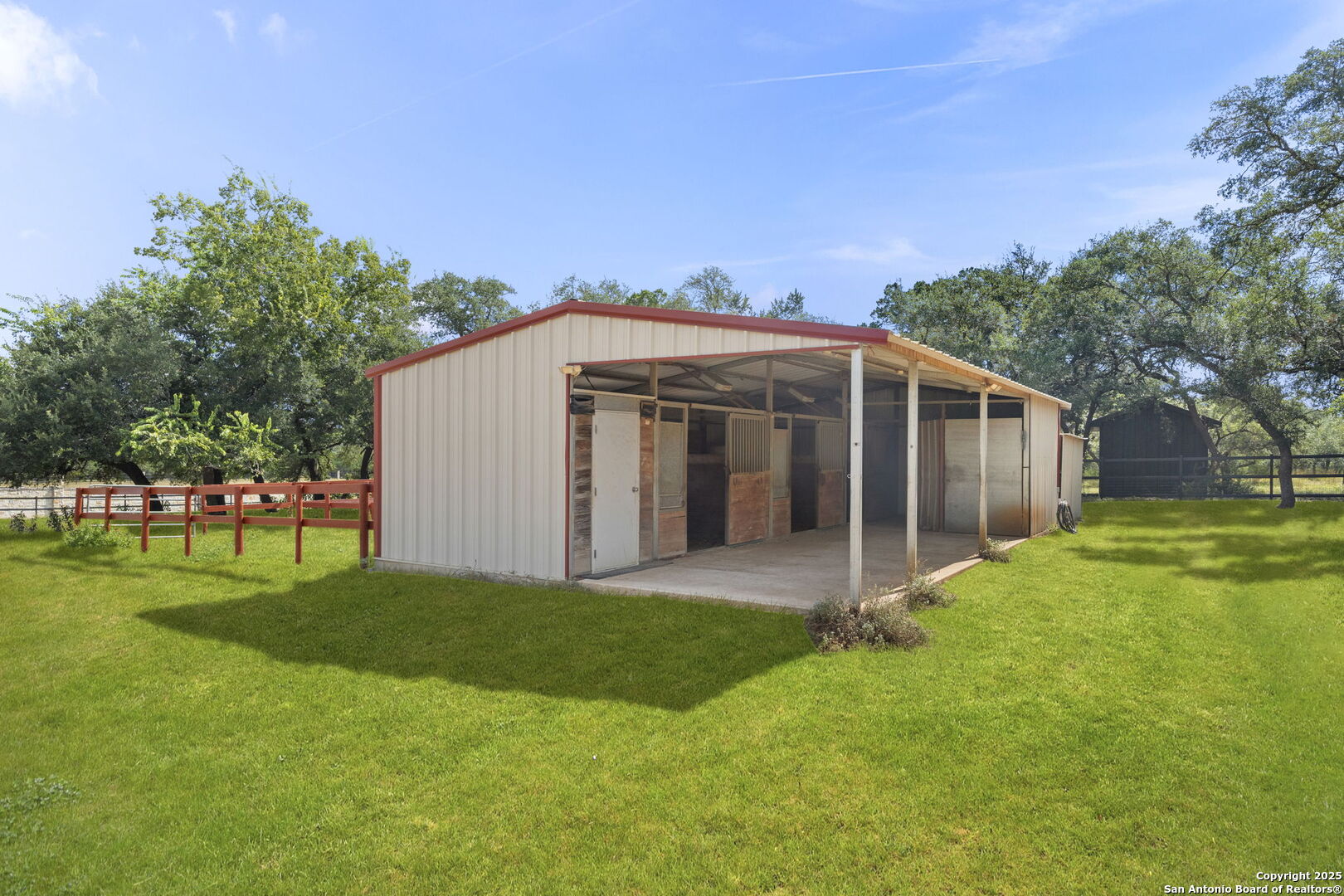 Your dream Hill Country ranchette awaits! Situated on just over 5 private acres, this charming stone and stucco home offers the perfect blend of country living and modern comfort. Surrounded by mature oak trees, the property is fenced and cross-fenced, making it ideal for horses, livestock, and outdoor living. The home features approximately 1,972 sq. ft. of thoughtfully designed living space with 3 bedrooms and 2.5 baths. Inside, you'll find soaring ceilings, a striking rock fireplace, and abundant natural light. Skylights brighten three rooms, while the open concept floor plan provides a spacious and inviting atmosphere. Upstairs, a loft serves as a versatile area for an office or sitting room. Recent upgrades include new flooring, carpet, all New high grade windows, updated fixtures, and fresh paint throughout ensuring a move-in-ready experience. Step outside and enjoy your very own backyard retreat with a sparkling swimming pool with a deck and pavilion that sets the stage for endless entertaining and relaxation. The expansive 40' x 20' partially covered back porch offers the perfect spot to unwind and take in the views of the Hill Country landscape. Equestrian enthusiasts will appreciate the well-equipped facilities, including an arena, 3-stall horse barn, tack room, and hay storage. Conveniently located with easy access to Highway 281 and only 20 minutes north of San Antonio, this property combines the tranquility of ranch living with the convenience of being close to city amenities.