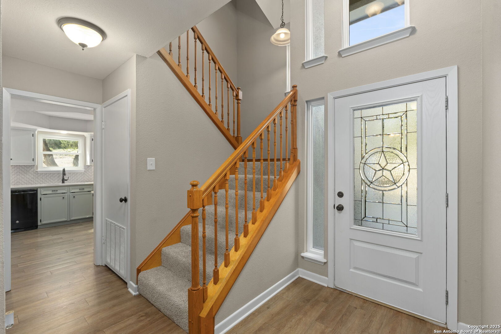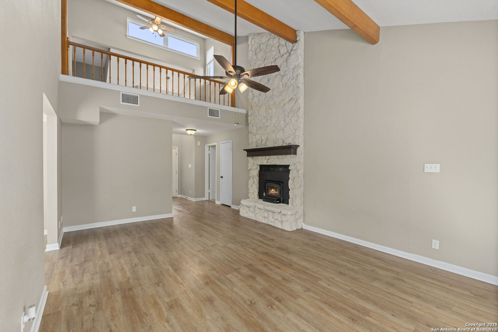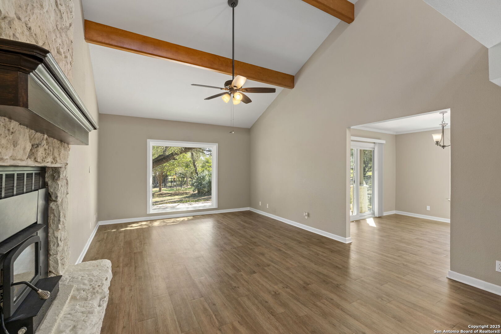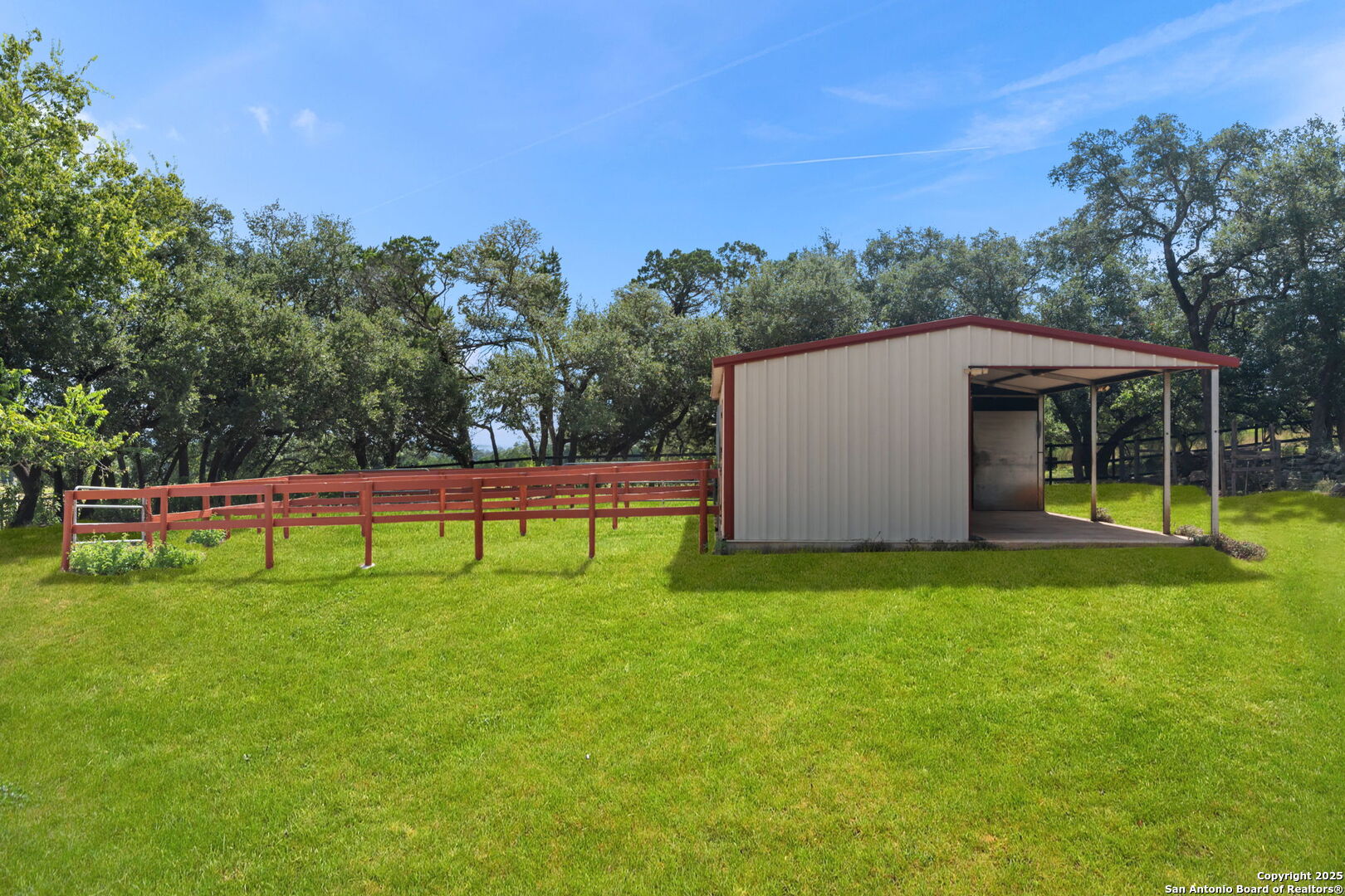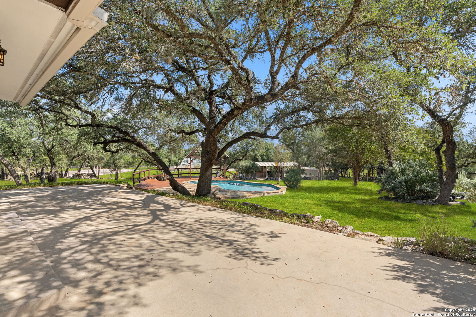 Your dream Hill Country ranchette awaits! Situated on just over 5 private acres, this charming stone and stucco home offers the perfect blend of country living and modern comfort. Surrounded by mature oak trees, the property is fenced and cross-fenced, making it ideal for horses, livestock, and outdoor living. The home features approximately 1,972 sq. ft. of thoughtfully designed living space with 3 bedrooms and 2.5 baths. Inside, you'll find soaring ceilings, a striking rock fireplace, and abundant natural light. Skylights brighten three rooms, while the open concept floor plan provides a spacious and inviting atmosphere. Upstairs, a loft serves as a versatile area for an office or sitting room. Recent upgrades include new flooring, carpet, all New high grade windows, updated fixtures, and fresh paint throughout ensuring a move-in-ready experience. Step outside and enjoy your very own backyard retreat with a sparkling swimming pool with a deck and pavilion that sets the stage for endless entertaining and relaxation. The expansive 40' x 20' partially covered back porch offers the perfect spot to unwind and take in the views of the Hill Country landscape. Equestrian enthusiasts will appreciate the well-equipped facilities, including an arena, 3-stall horse barn, tack room, and hay storage. Conveniently located with easy access to Highway 281 and only 20 minutes north of San Antonio, this property combines the tranquility of ranch living with the convenience of being close to city amenities.