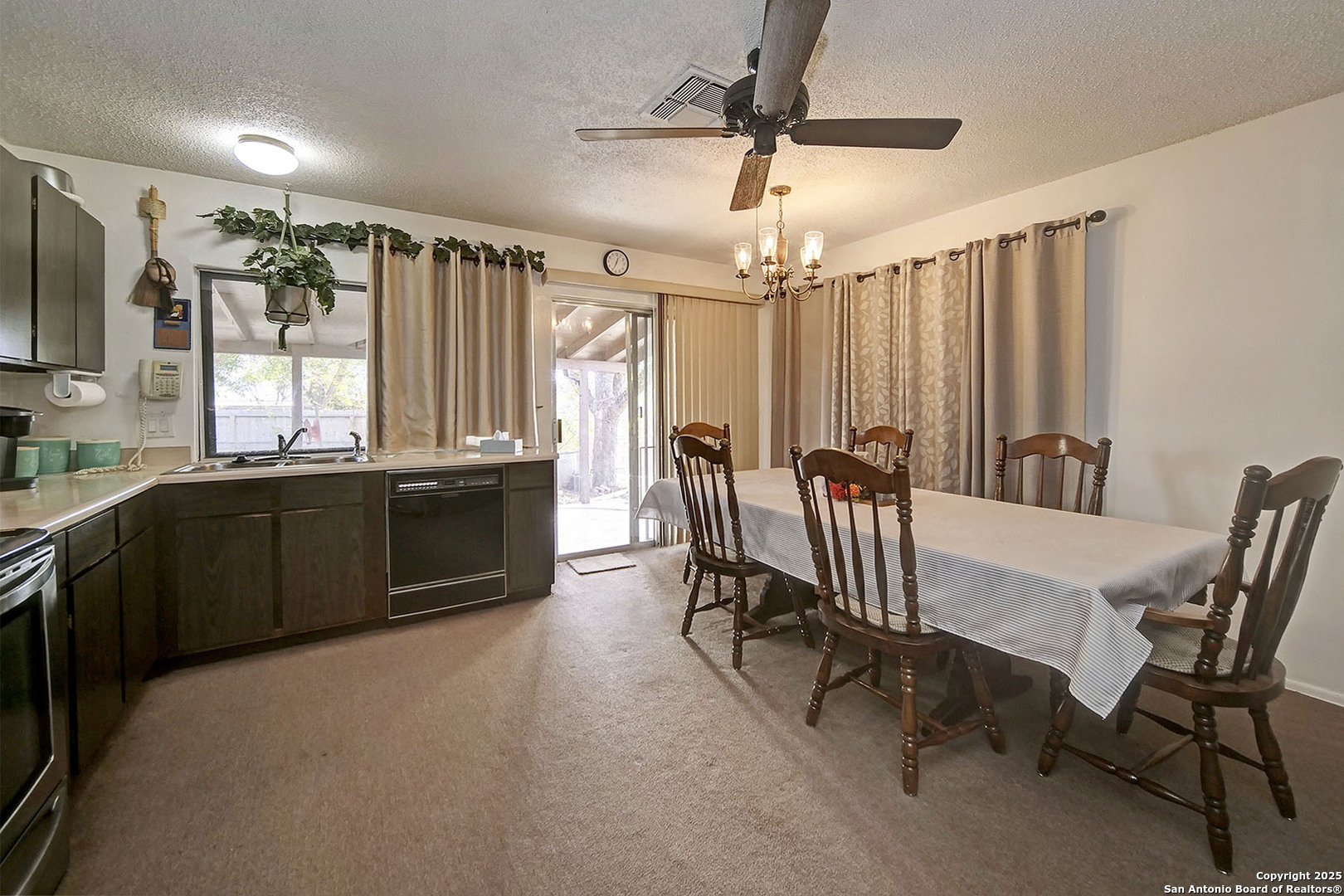 Estate Sale - One-Owner Home in Heritage Farms. Lovingly maintained 4-bedroom, 2-bathroom home in a well-established neighborhood within the highly desired Northside ISD. This estate property is being sold as-is and offers wonderful potential for personalization and updating. This home features a spacious layout with a converted garage that serves as a comfortable second living area or den-easily converted back to a garage if desired. The kitchen and dining area offer a welcoming space for family meals and entertaining. Enjoy ceiling fans in every bedroom and living area, adding comfort throughout the home. Step outside to a fenced backyard with a covered patio-perfect for relaxing or hosting gatherings under the shade of mature trees. Conveniently located near Hwy 151, Loop 410, Hwy 90, Lackland AFB, and SeaWorld, with shopping, dining, and entertainment just minutes away. The elementary school is nearby, making this a perfect spot for families. Don't miss this opportunity to own a solid, well-cared-for home in a growing area of San Antonio. Bring your ideas and make it your own! Schedule your showing!