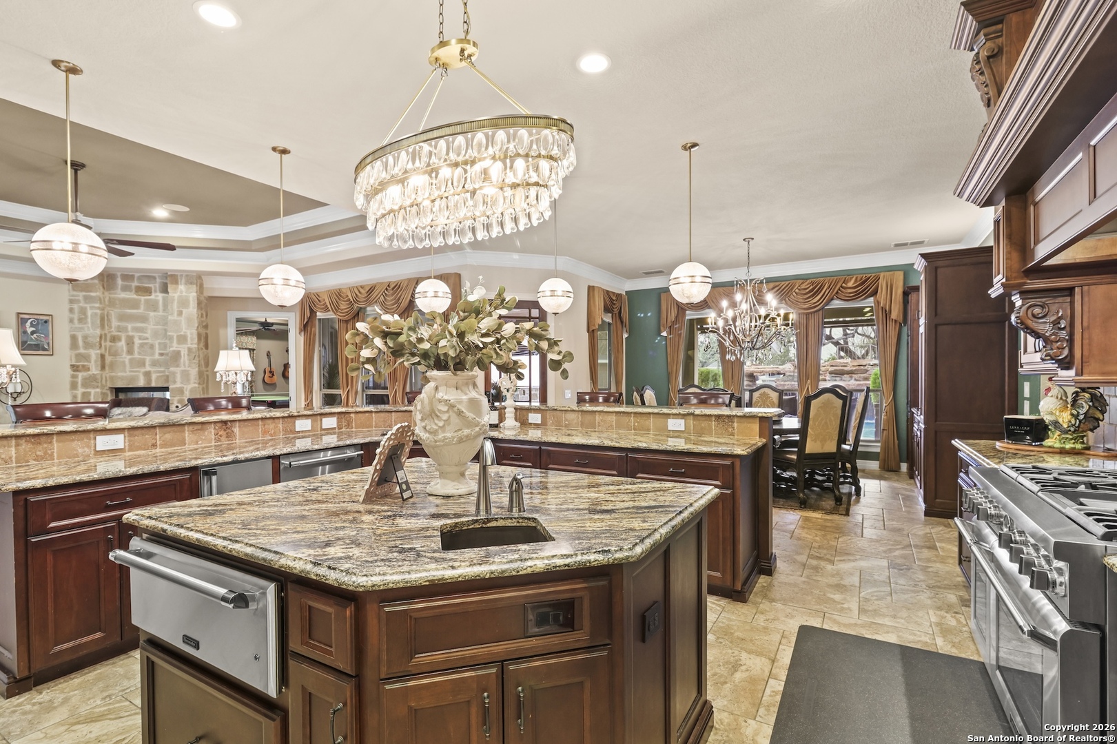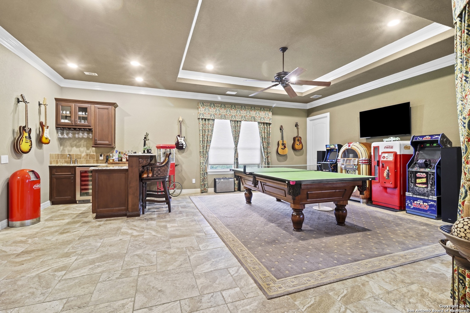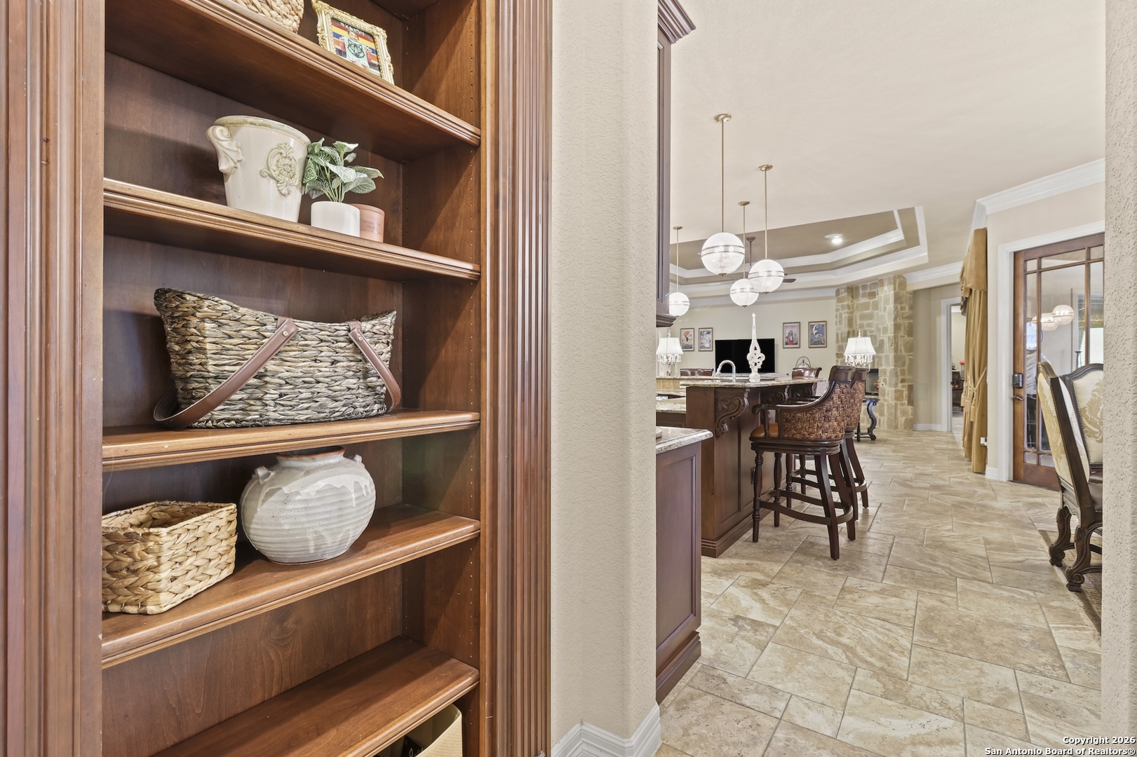 This remarkable custom home by Brian Smith Designs is for the most discriminating buyer and exemplifies exceptional craftsmanship and refined luxury rarely found in surrounding properties. In an era of soaring construction costs, this residence offers an outstanding opportunity to enjoy the quality, detail, and sophistication of a newly built custom home without the delays or expense of starting from the ground up. Every room is appointed with expansive, dovetailed, soft-close custom cabinetry, reflecting an uncompromising commitment to quality and functionality. Architectural ceiling details create visual interest throughout, while remote-controlled window treatments provide modern convenience and effortless comfort. Painted solid alder crown molding and trim, crafted on site, add a level of artisanal detail that elevates the entire home. The gourmet kitchen is designed to impress the most passionate chef and entertainer, featuring a six-burner Thermador gas range, Miele coffee system, stainless SubZero refrigerator and freezer, and a dedicated ice maker. This thoughtfully designed space seamlessly connects to the living areas, creating an ideal setting for gatherings both large and small. Enhanced by Control4 smart home technology, the home allows seamless control of lighting, climate, music, and media from your fingertips, offering a truly integrated and modern living experience. The expansive primary suite serves as a private retreat, filled with abundant natural light and highlighted by two oversized custom walk-in closets and a spa-like bath designed for relaxation and renewal. Entertainment options abound with a spacious game room and an impressive media room, both conveniently located near the approximately 830 square feet of covered outdoor living space. Outdoors, the exceptional kitchen rivals the interior with a high-end gas grill, refrigerator, ice maker, level 4 granite countertops, and remote-controlled shades, creating a resort-style atmosphere ideal for year-round enjoyment. Completing this extraordinary property is a separate one-bedroom living quarters with a private entrance through the four-car garage, offering flexible accommodations for guests, extended family, or private living space. This exceptional custom home blends timeless design, advanced technology, and superior craftsmanship to deliver a living experience that is both luxurious and enduring.