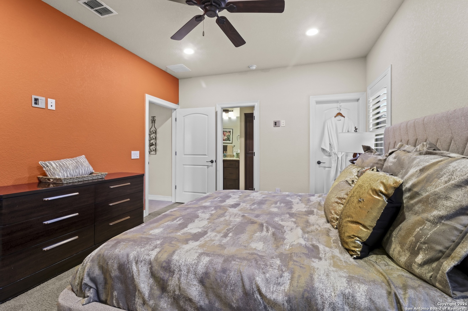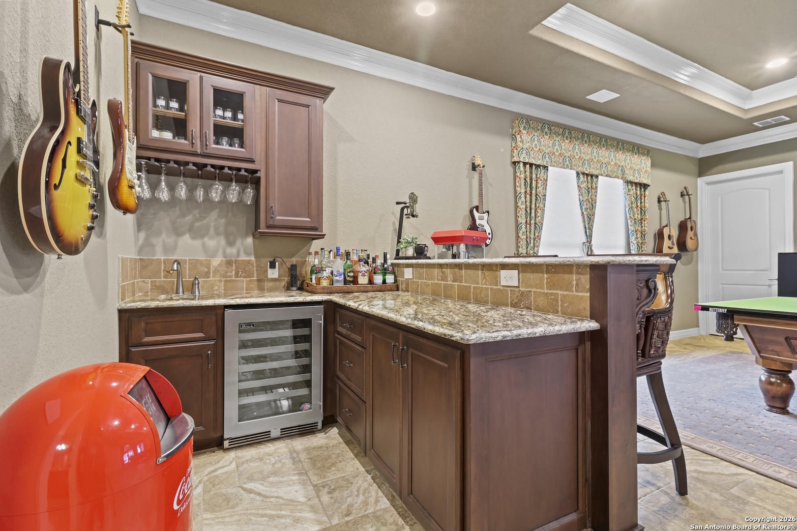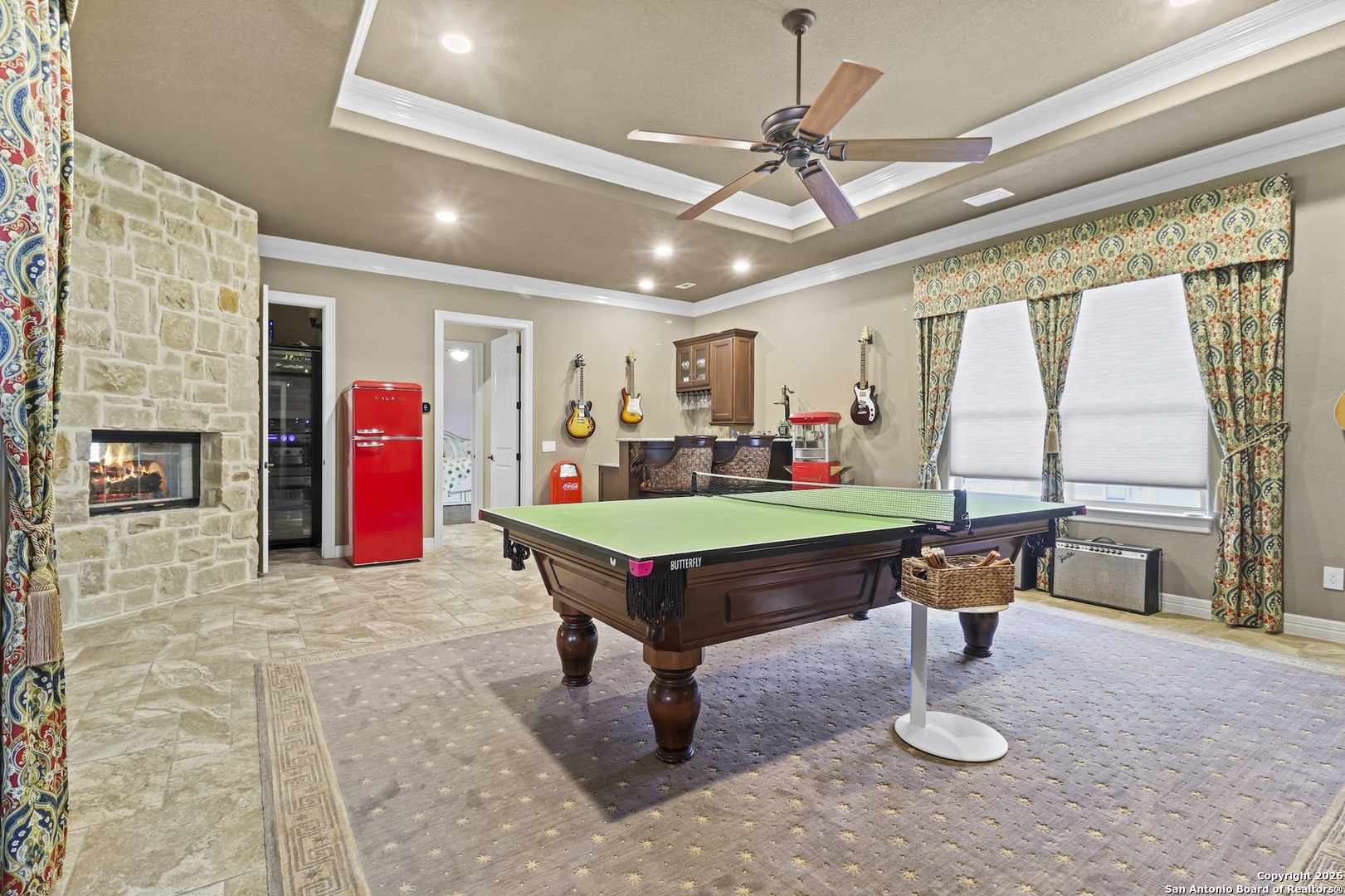 This remarkable custom home by Brian Smith Designs is for the most discriminating buyer and exemplifies exceptional craftsmanship and refined luxury rarely found in surrounding properties. In an era of soaring construction costs, this residence offers an outstanding opportunity to enjoy the quality, detail, and sophistication of a newly built custom home without the delays or expense of starting from the ground up. Every room is appointed with expansive, dovetailed, soft-close custom cabinetry, reflecting an uncompromising commitment to quality and functionality. Architectural ceiling details create visual interest throughout, while remote-controlled window treatments provide modern convenience and effortless comfort. Painted solid alder crown molding and trim, crafted on site, add a level of artisanal detail that elevates the entire home. The gourmet kitchen is designed to impress the most passionate chef and entertainer, featuring a six-burner Thermador gas range, Miele coffee system, stainless SubZero refrigerator and freezer, and a dedicated ice maker. This thoughtfully designed space seamlessly connects to the living areas, creating an ideal setting for gatherings both large and small. Enhanced by Control4 smart home technology, the home allows seamless control of lighting, climate, music, and media from your fingertips, offering a truly integrated and modern living experience. The expansive primary suite serves as a private retreat, filled with abundant natural light and highlighted by two oversized custom walk-in closets and a spa-like bath designed for relaxation and renewal. Entertainment options abound with a spacious game room and an impressive media room, both conveniently located near the approximately 830 square feet of covered outdoor living space. Outdoors, the exceptional kitchen rivals the interior with a high-end gas grill, refrigerator, ice maker, level 4 granite countertops, and remote-controlled shades, creating a resort-style atmosphere ideal for year-round enjoyment. Completing this extraordinary property is a separate one-bedroom living quarters with a private entrance through the four-car garage, offering flexible accommodations for guests, extended family, or private living space. This exceptional custom home blends timeless design, advanced technology, and superior craftsmanship to deliver a living experience that is both luxurious and enduring.