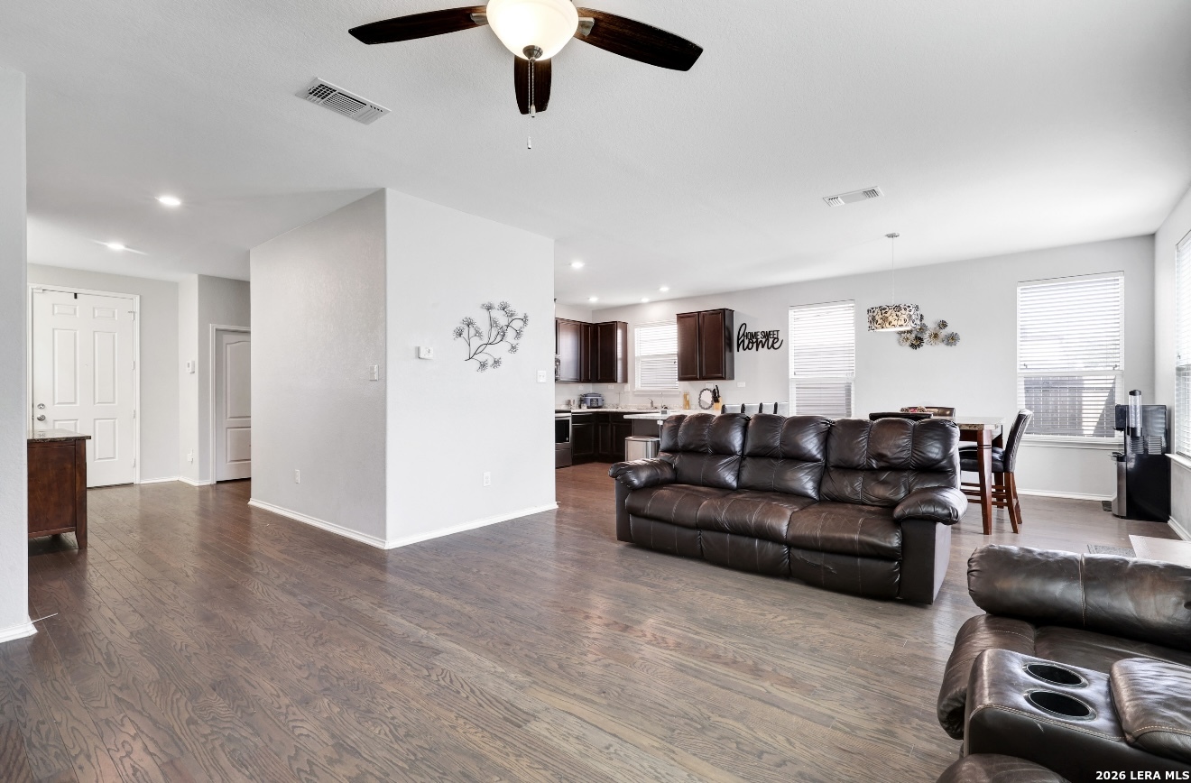 Welcome to this beautiful 2,249 sq. ft. two-story home featuring 3 spacious bedrooms, 2.5 bathrooms, and a 2-car garage. The first floor offers 9-foot ceilings and an open-concept layout, creating a bright and inviting living space ideal for both everyday living and entertaining. The kitchen is equipped with 42-inch upper cabinets, ample counter space, and generous storage. In addition to the bedrooms, a versatile fourth room provides flexibility for a home office, guest room, or playroom. Conveniently located just minutes from Texas A&M University-San Antonio, the Toyota Manufacturing Plant, and major highways including Loop 410, Highway 90, and Highway 37. Nearby amenities include City Base Landing, Mission Espada Park, and Braunig Lake, offering shopping, dining, and outdoor recreation. This move-in-ready home is waiting for its new owner. Schedule your showing today!