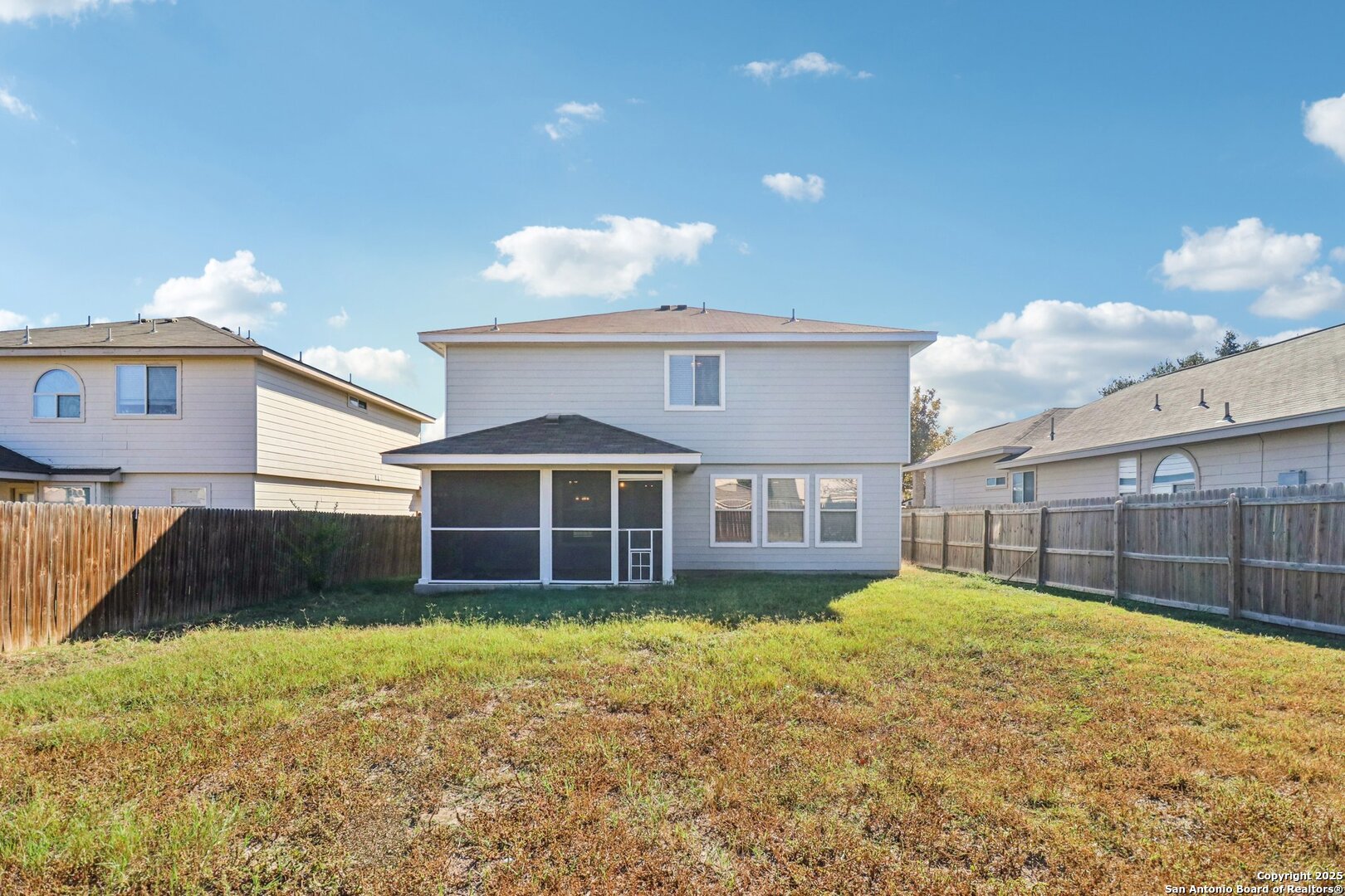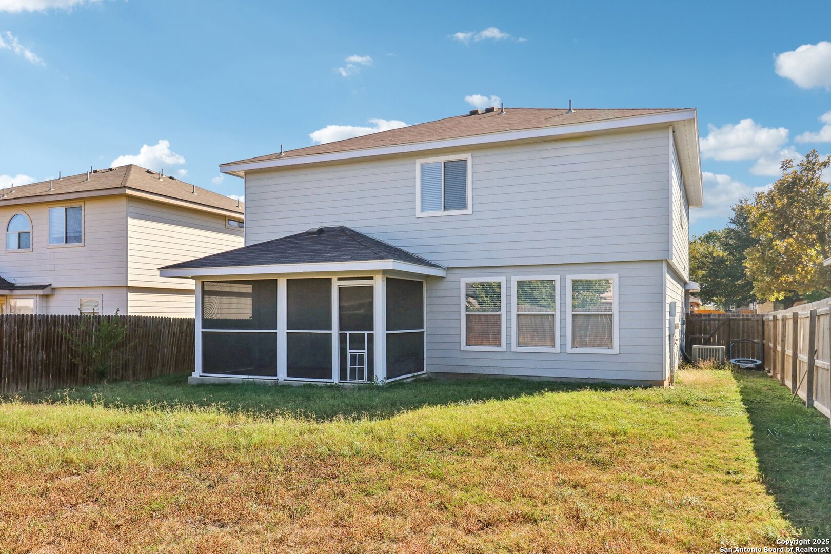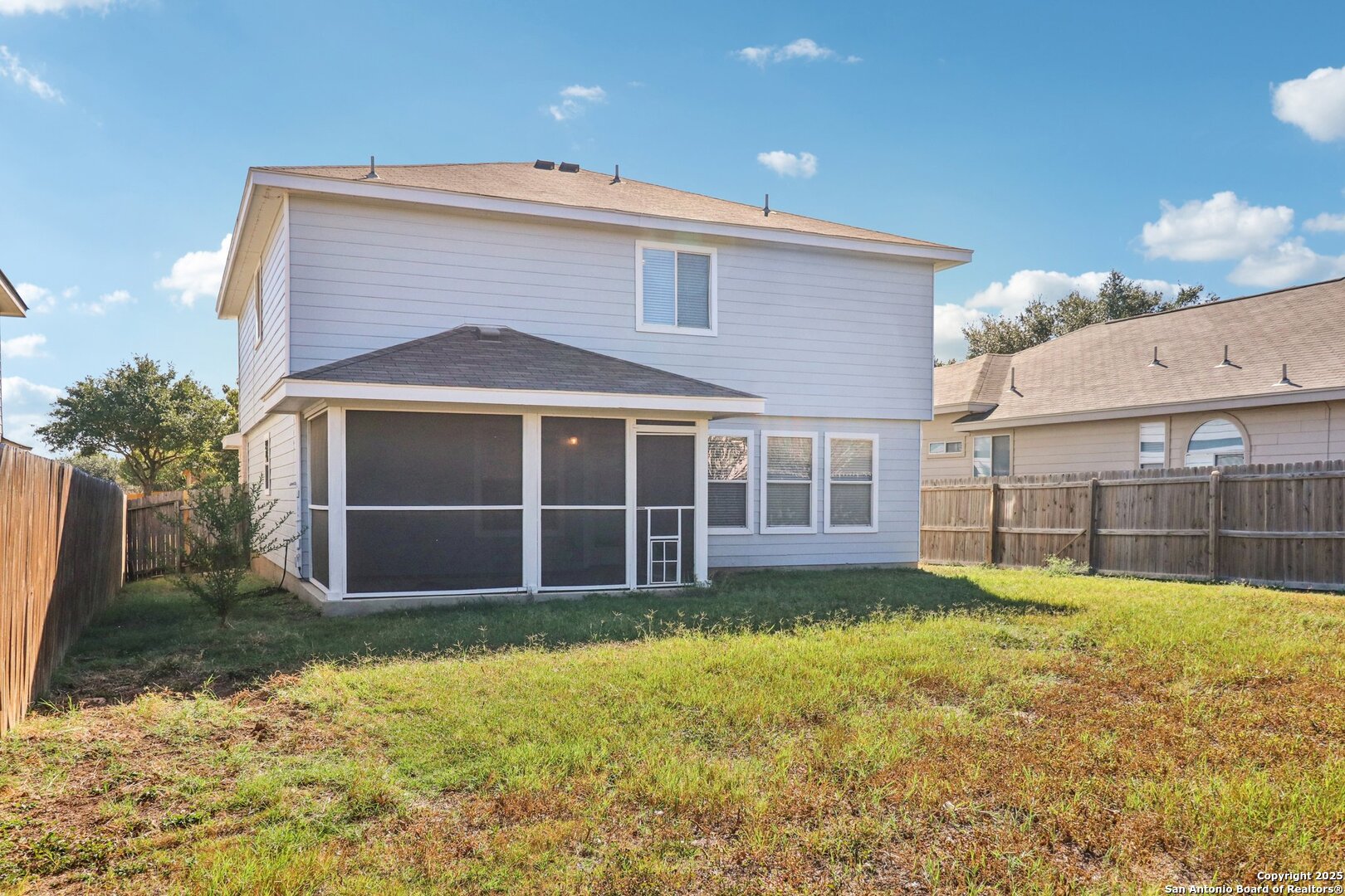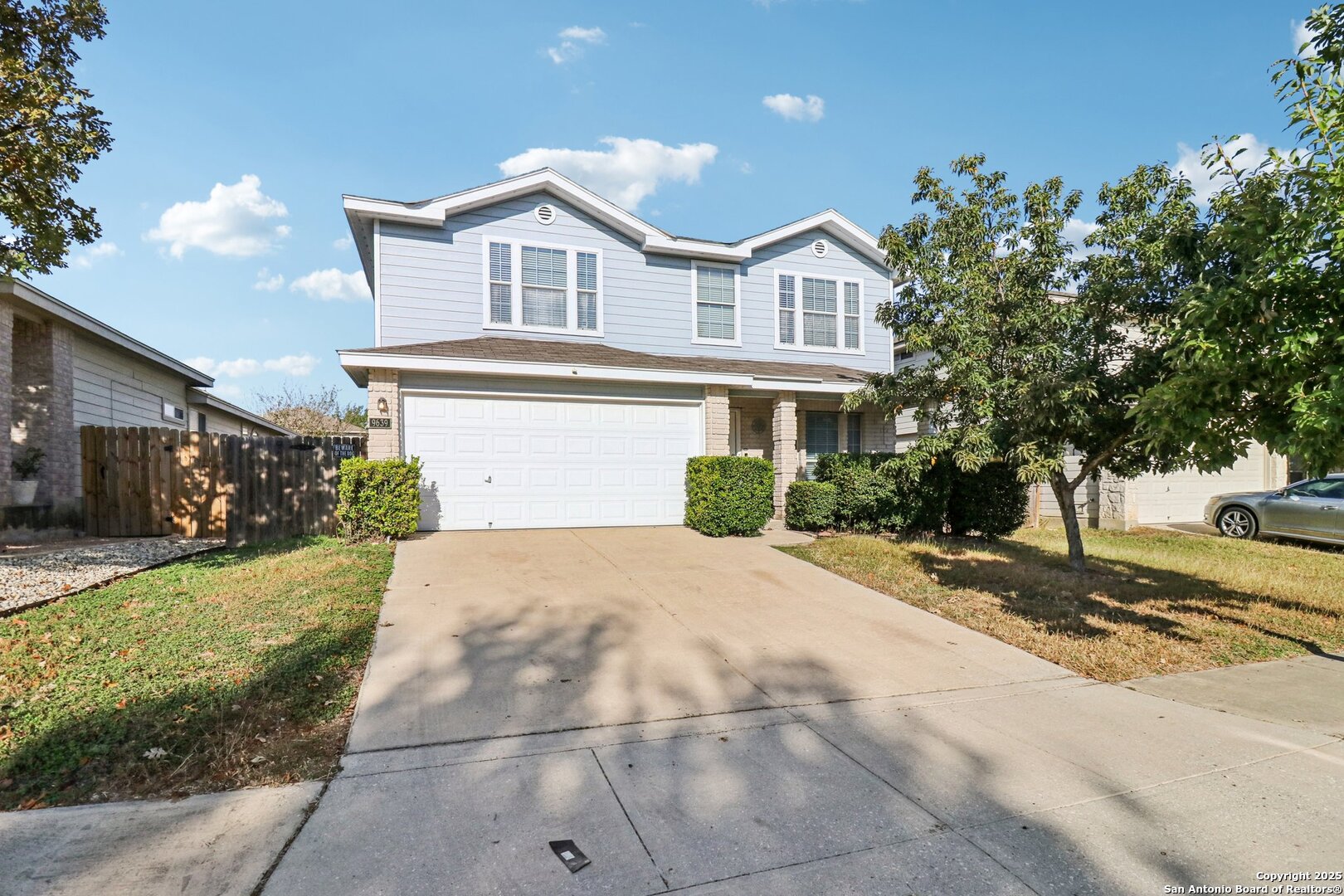First floor fully hard floored, with beautiful transitions! Master Bedroom has huge walk-in closet, and master bathroom has separate garden tub/shower. Kitchen is wonderfully upgraded to included really spacious storage drawers with hidden storage. Back Patio is Screened in, and there is a large back yard with privacy fence incuded. Neighborhood features a Sports Park with Pool, Playground, Soccer Field and Dog Park! Minutes from schools, shopping, with easy access to Loop 1604.