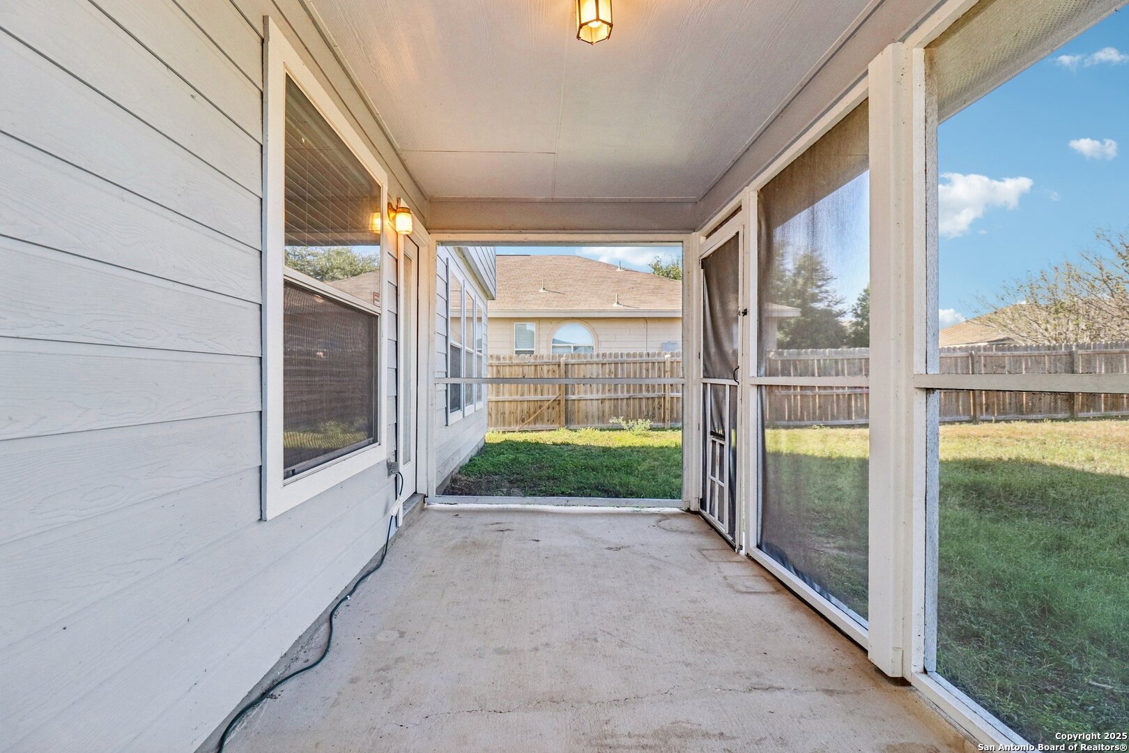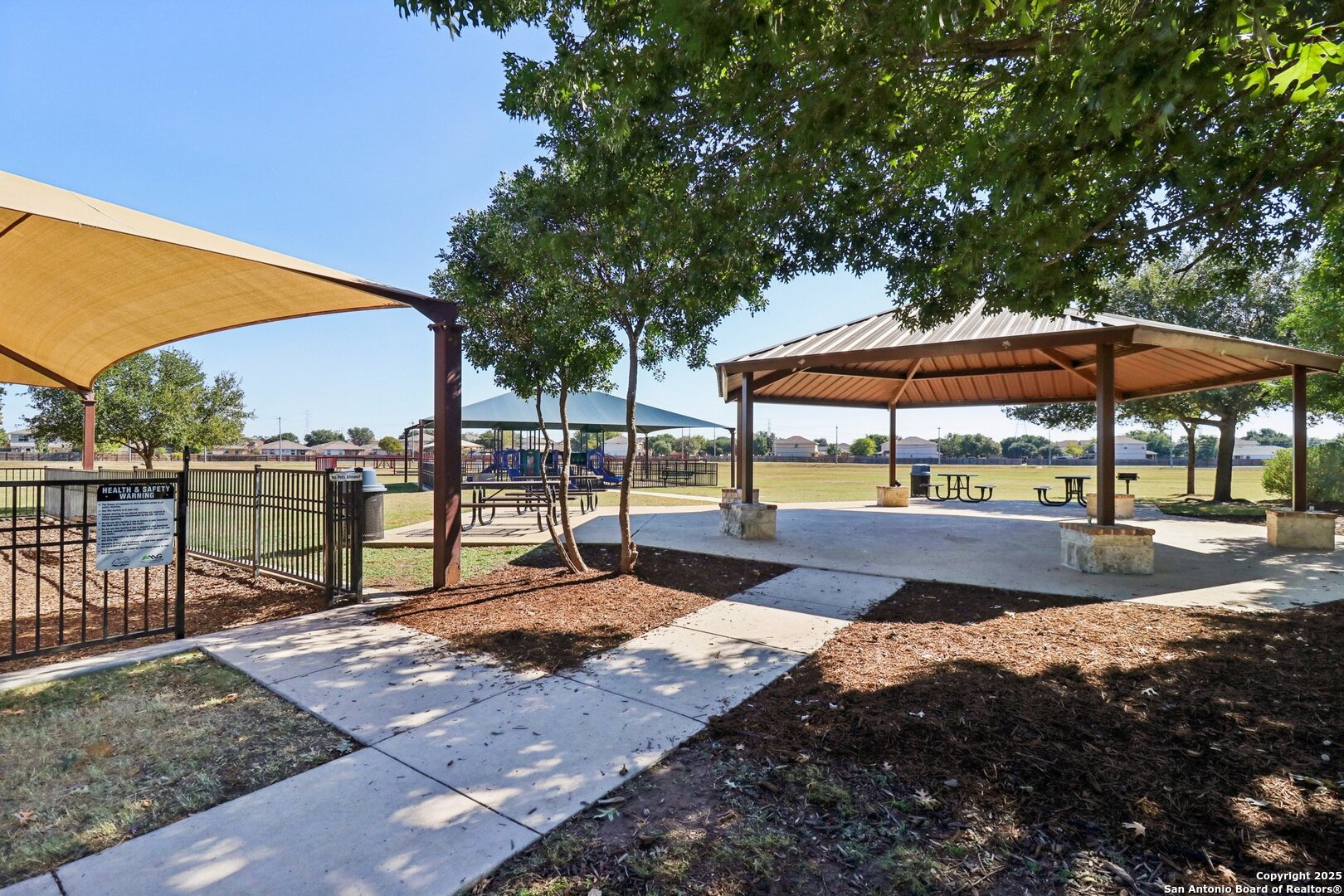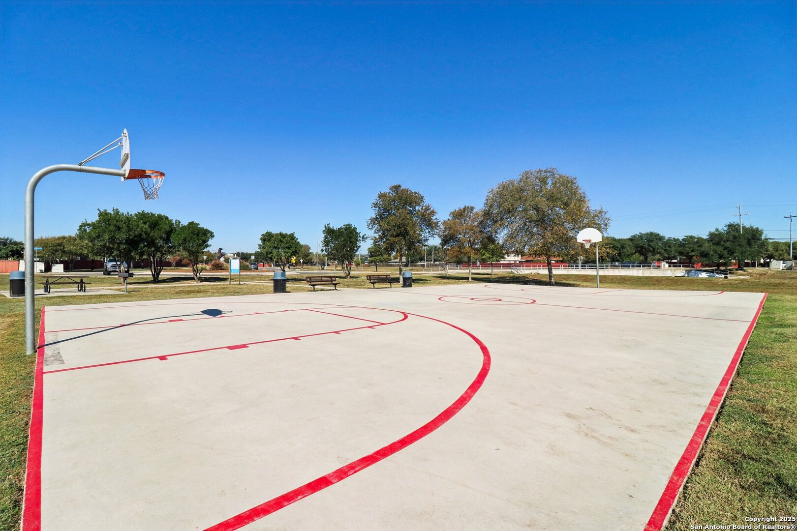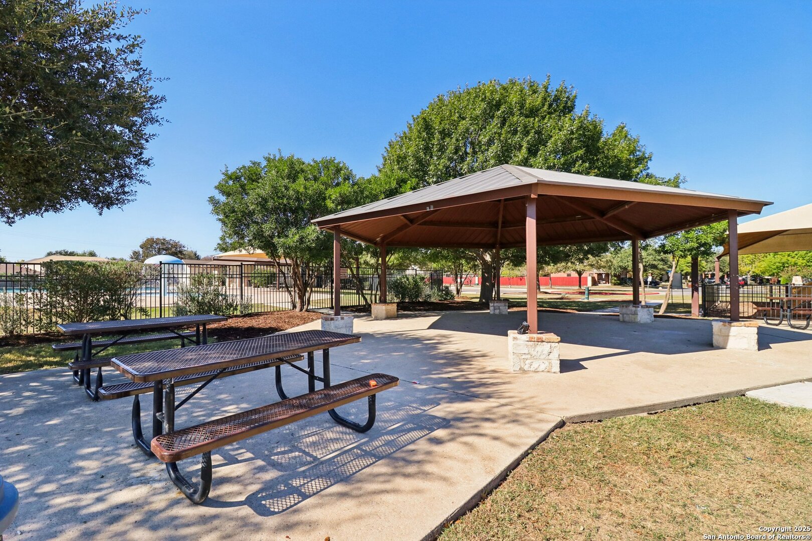 First floor fully hard floored, with beautiful transitions! Master Bedroom has huge walk-in closet, and master bathroom has separate garden tub/shower. Kitchen is wonderfully upgraded to included really spacious storage drawers with hidden storage. Back Patio is Screened in, and there is a large back yard with privacy fence incuded. Neighborhood features a Sports Park with Pool, Playground, Soccer Field and Dog Park! Minutes from schools, shopping, with easy access to Loop 1604.