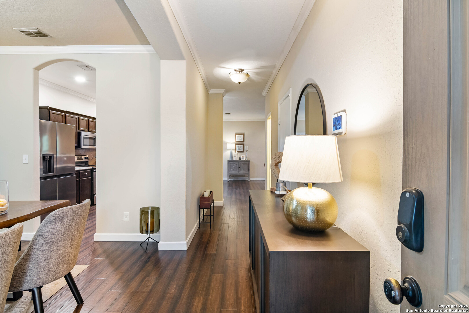 **Ask about our first months rent discount incentive!** Looking for the shops, sips and convenience of Alamo Ranch but not fond of the traffic? Conveniently located within a mile of 1604 this home offers accessibility without the commute! Nestled on a greenbelt for ultimate privacy, this 3 bedroom, 2.5 bath home is the definition of traditional tranquility. Located in The Reserve at Culebra Creek community this home features 9' ceilings, custom crown molding, granite countertops and bamboo hardwood floors throughout the primary level. A formal dining room - currently used as an office, breakfast area, living room and half bath is found on the first floor. All bedrooms and remaining bathrooms are on the second floor, allowing a great separation of living and entertainment space. Schedule your showing soon to experience all the luxurious details you wouldn't typically find in a rental home!