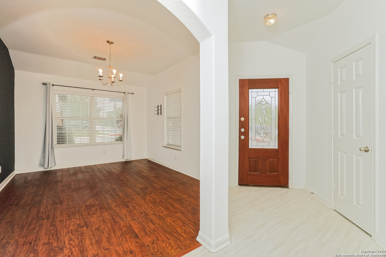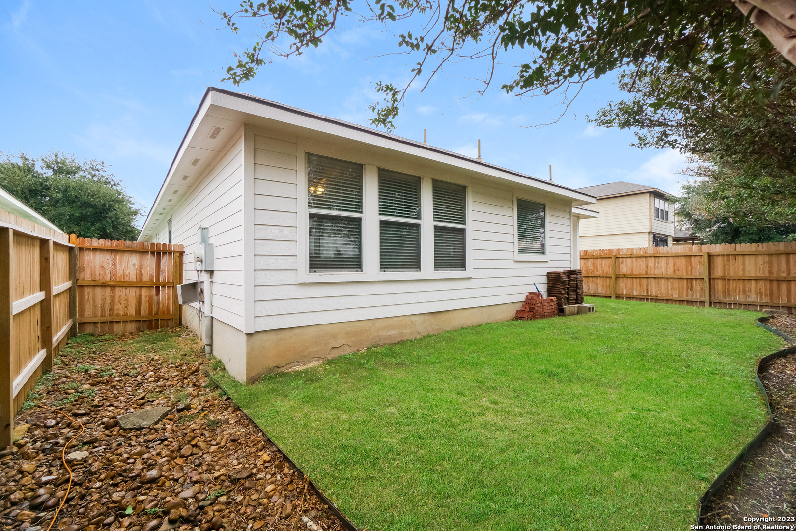 Available Immediately! Additional showing options available! Great Three bedroom, two bath home located near Loop 1604 & Shaenfield Rd. 3 miles from Government Canyon State Natural Area. Separate living and dining areas, kitchen includes an island bar with stainless steel appliances. Master bath provides separate shower and garden tub. All bedrooms include hard flooring and ceiling fans. No carpet in the home. Enjoy the the covered back patio and privacy fenced backyard after a long day. Gated community. Don't miss this one and schedule your showing today! Monthly fee in lieu of security deposit.
