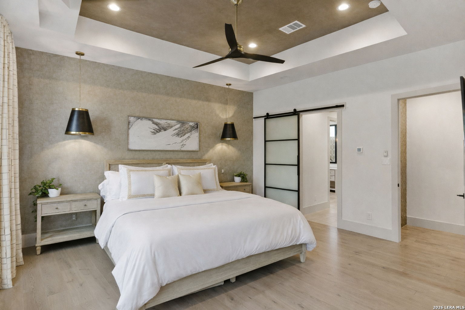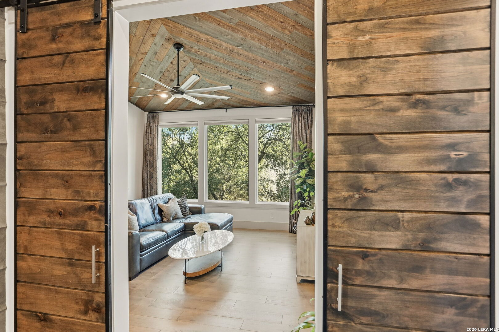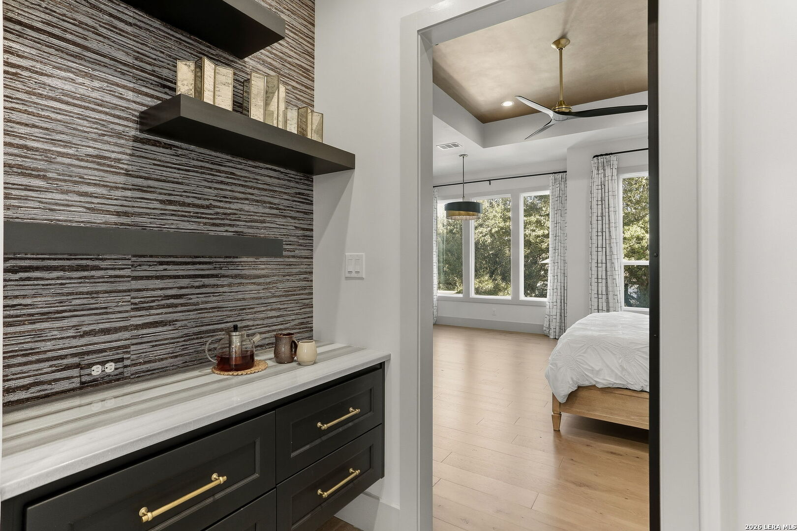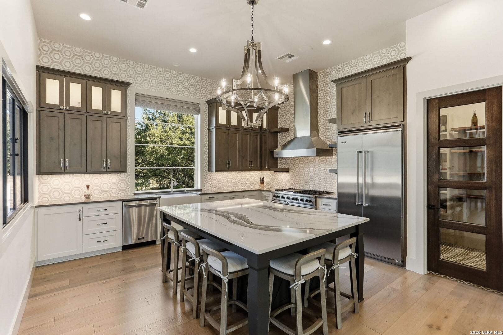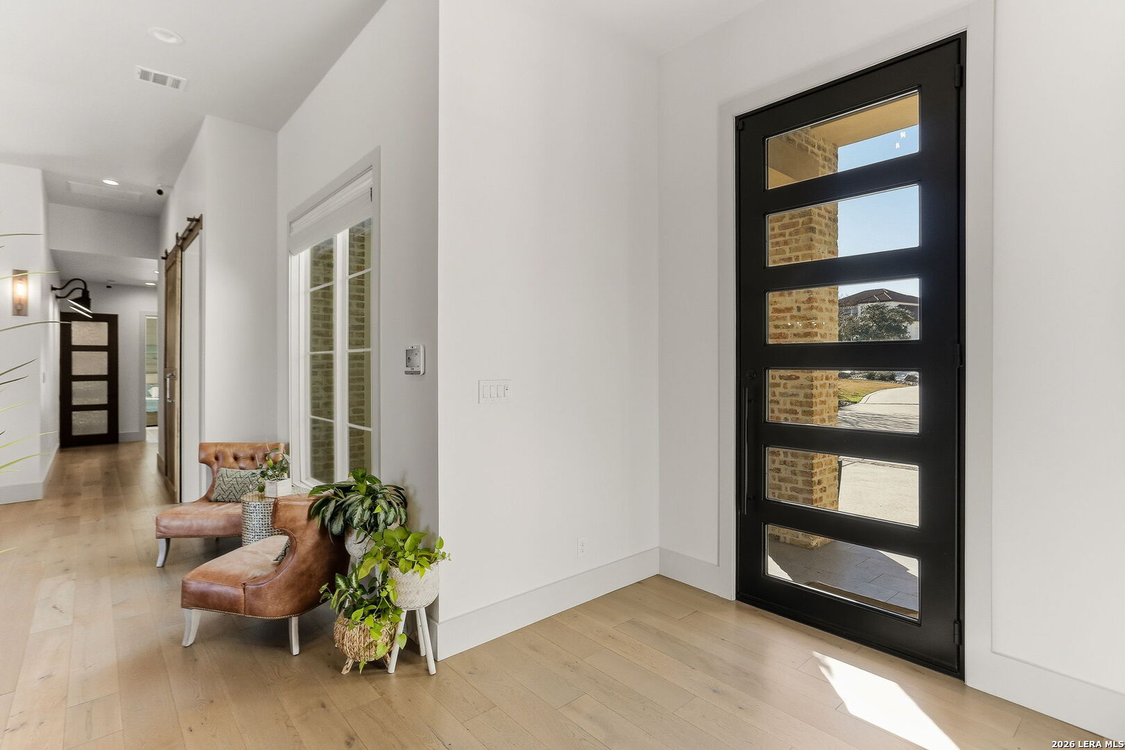 Two Homes. One Estate. Endless Possibilities. Nestled behind the prestigious gates of Cantera Hills, 9719 Midsomer Place presents a rare opportunity to own a private compound where scale, design, and flexibility converge. Set on 1.28 acres, this GSABA Parade of Homes "People's Choice" award-winning estate, built by Casadomaine, features two fully independent luxury residences-thoughtfully designed for multigenerational living, private guest accommodations, or income-producing potential. Spanning over 6,000 square feet of curated living space, both homes showcase bespoke finishes, soaring ceilings with exposed wood beams, and expansive windows that flood the interiors with natural light. Designer lighting, statement fireplaces, and retractable glass doors create a seamless blend of indoor and outdoor living. Each residence is anchored by a chef-inspired kitchen featuring top-tier stainless steel appliances and custom Michael Edwards cabinetry, flowing effortlessly into grand living spaces designed for both elevated entertaining and everyday comfort. The primary living quarters offer a true private retreat experience, complemented by spa-inspired baths and custom-designed closet, while additional suites provide comfort and privacy throughout. A dedicated office, wet bar, fitness space, and pet spa further enhance the home's thoughtful livability. Outdoors, a resort-style setting unfolds with a fully equipped pavilion kitchen, sparkling pool, spa, and cascading water features, creating an atmosphere equally suited for quiet relaxation or refined entertaining. With separate entrances, utilities, and garages for each residence, the estate offers both independence and cohesion within one of San Antonio's most desirable gated communities. Located just minutes from La Cantera, The Rim, and premier dining and shopping, this is a residence that delivers both privacy and proximity. A rare offering designed for those who expect nothing less than exceptional.