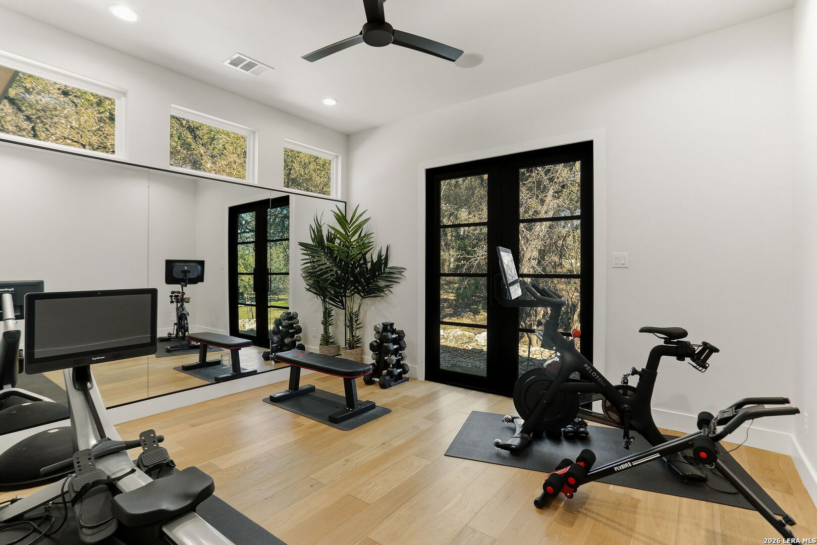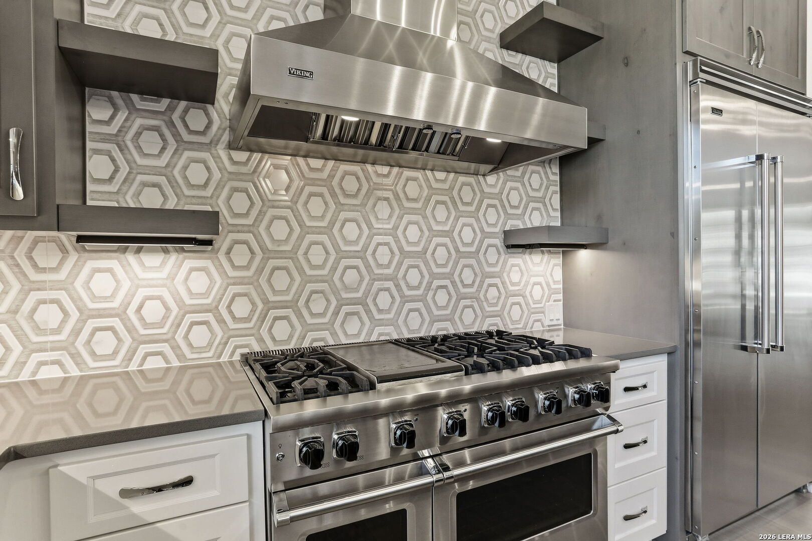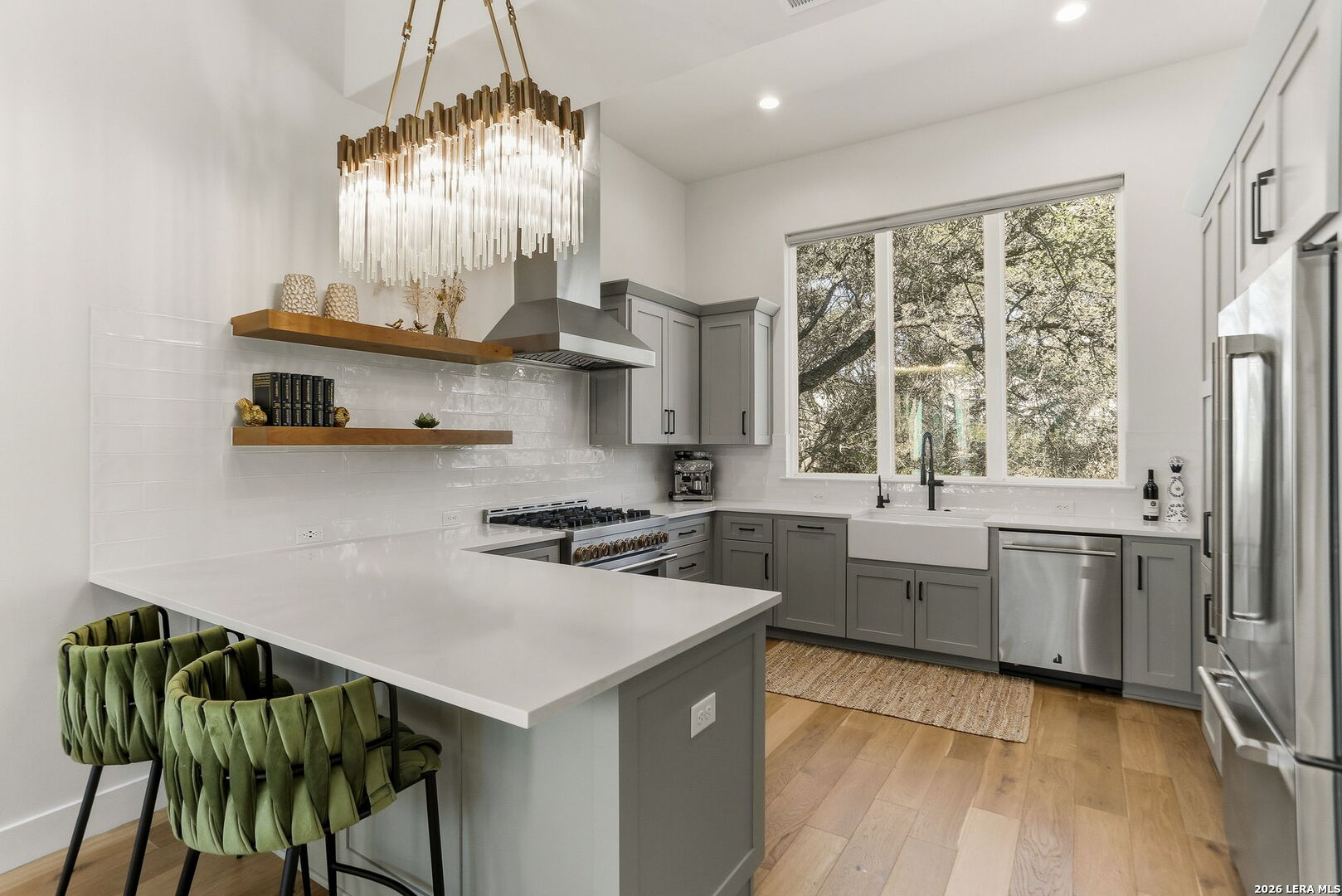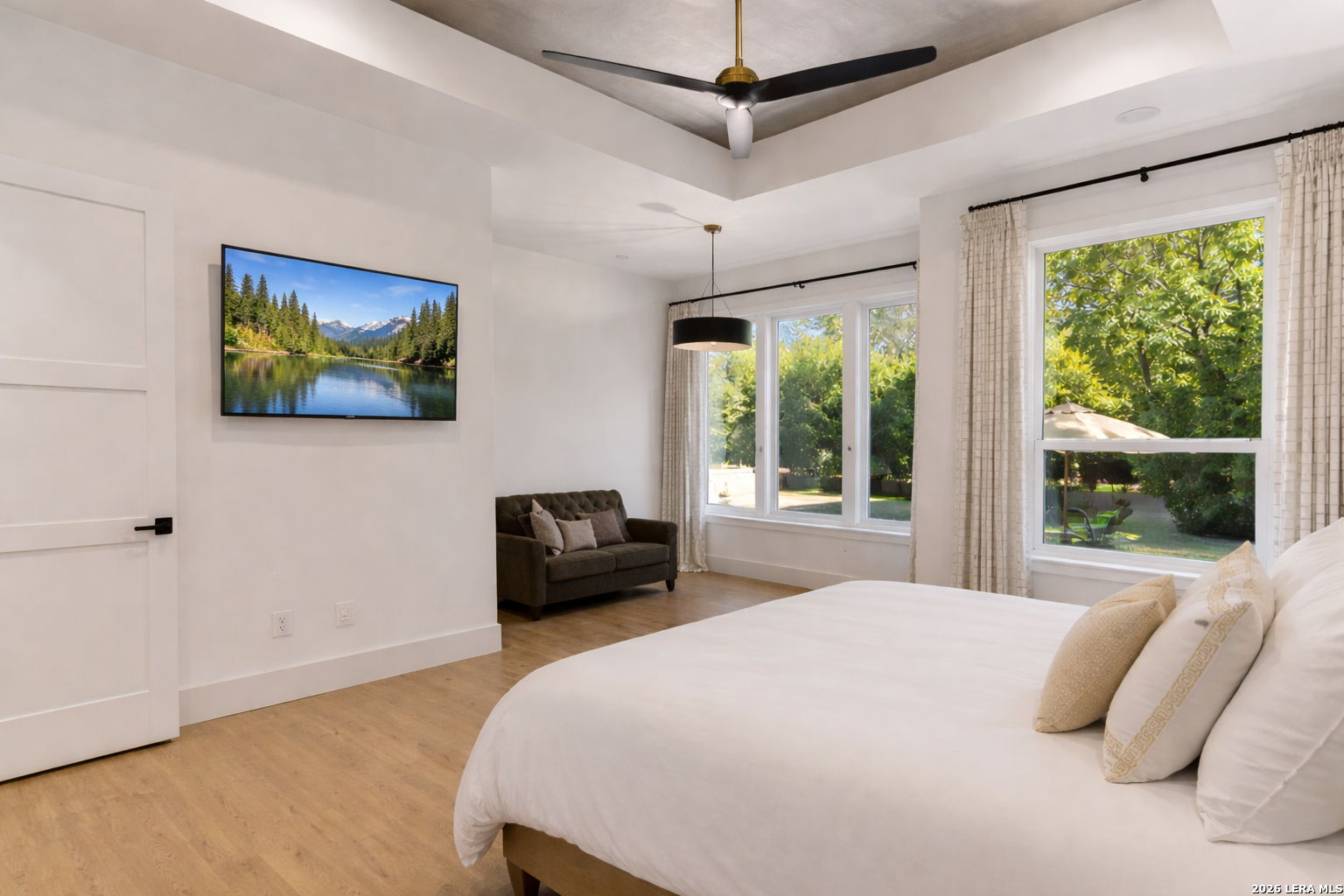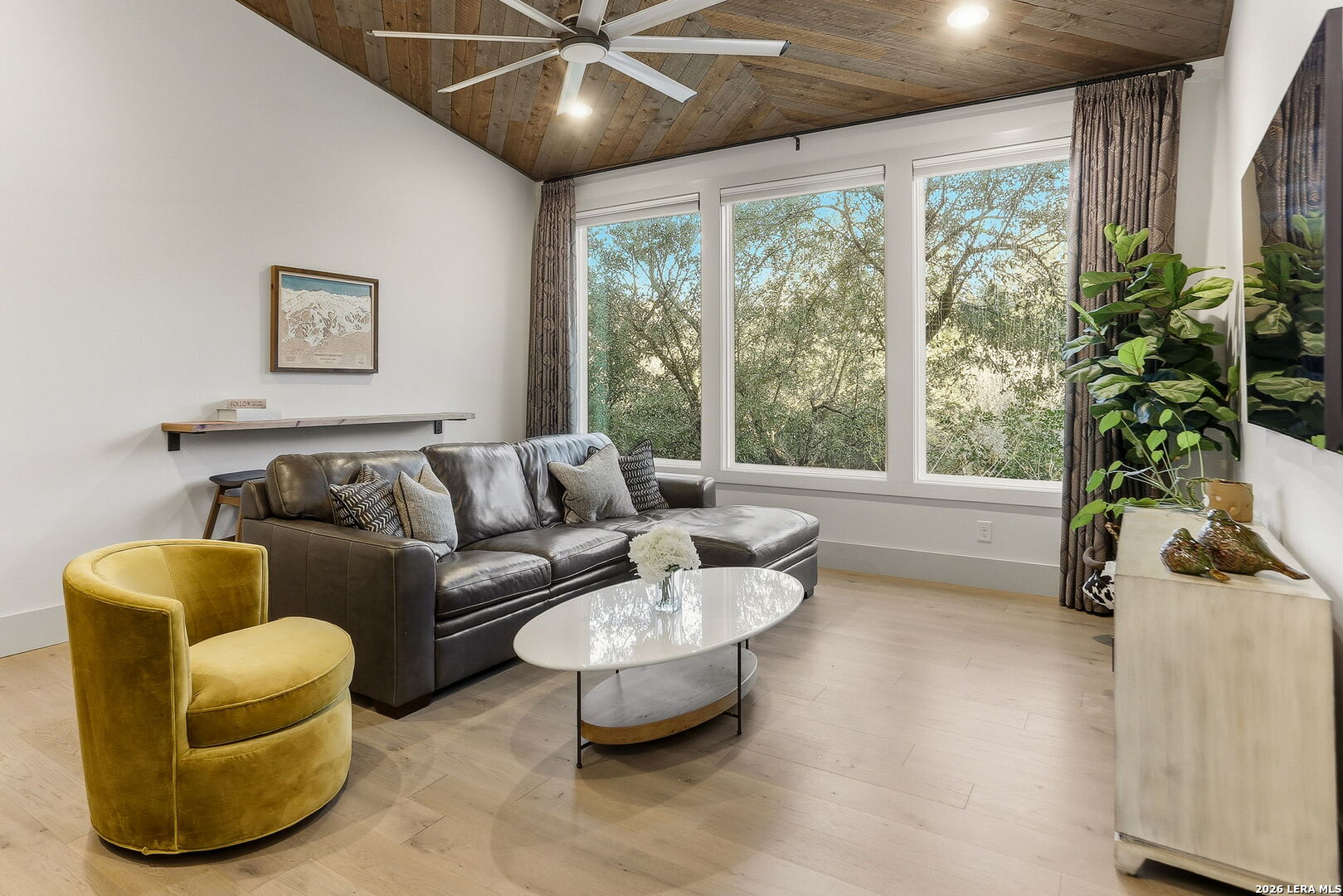 Two Homes. One Estate. Endless Possibilities. Nestled behind the prestigious gates of Cantera Hills, 9719 Midsomer Place presents a rare opportunity to own a private compound where scale, design, and flexibility converge. Set on 1.28 acres, this GSABA Parade of Homes "People's Choice" award-winning estate, built by Casadomaine, features two fully independent luxury residences-thoughtfully designed for multigenerational living, private guest accommodations, or income-producing potential. Spanning over 6,000 square feet of curated living space, both homes showcase bespoke finishes, soaring ceilings with exposed wood beams, and expansive windows that flood the interiors with natural light. Designer lighting, statement fireplaces, and retractable glass doors create a seamless blend of indoor and outdoor living. Each residence is anchored by a chef-inspired kitchen featuring top-tier stainless steel appliances and custom Michael Edwards cabinetry, flowing effortlessly into grand living spaces designed for both elevated entertaining and everyday comfort. The primary living quarters offer a true private retreat experience, complemented by spa-inspired baths and custom-designed closet, while additional suites provide comfort and privacy throughout. A dedicated office, wet bar, fitness space, and pet spa further enhance the home's thoughtful livability. Outdoors, a resort-style setting unfolds with a fully equipped pavilion kitchen, sparkling pool, spa, and cascading water features, creating an atmosphere equally suited for quiet relaxation or refined entertaining. With separate entrances, utilities, and garages for each residence, the estate offers both independence and cohesion within one of San Antonio's most desirable gated communities. Located just minutes from La Cantera, The Rim, and premier dining and shopping, this is a residence that delivers both privacy and proximity. A rare offering designed for those who expect nothing less than exceptional.