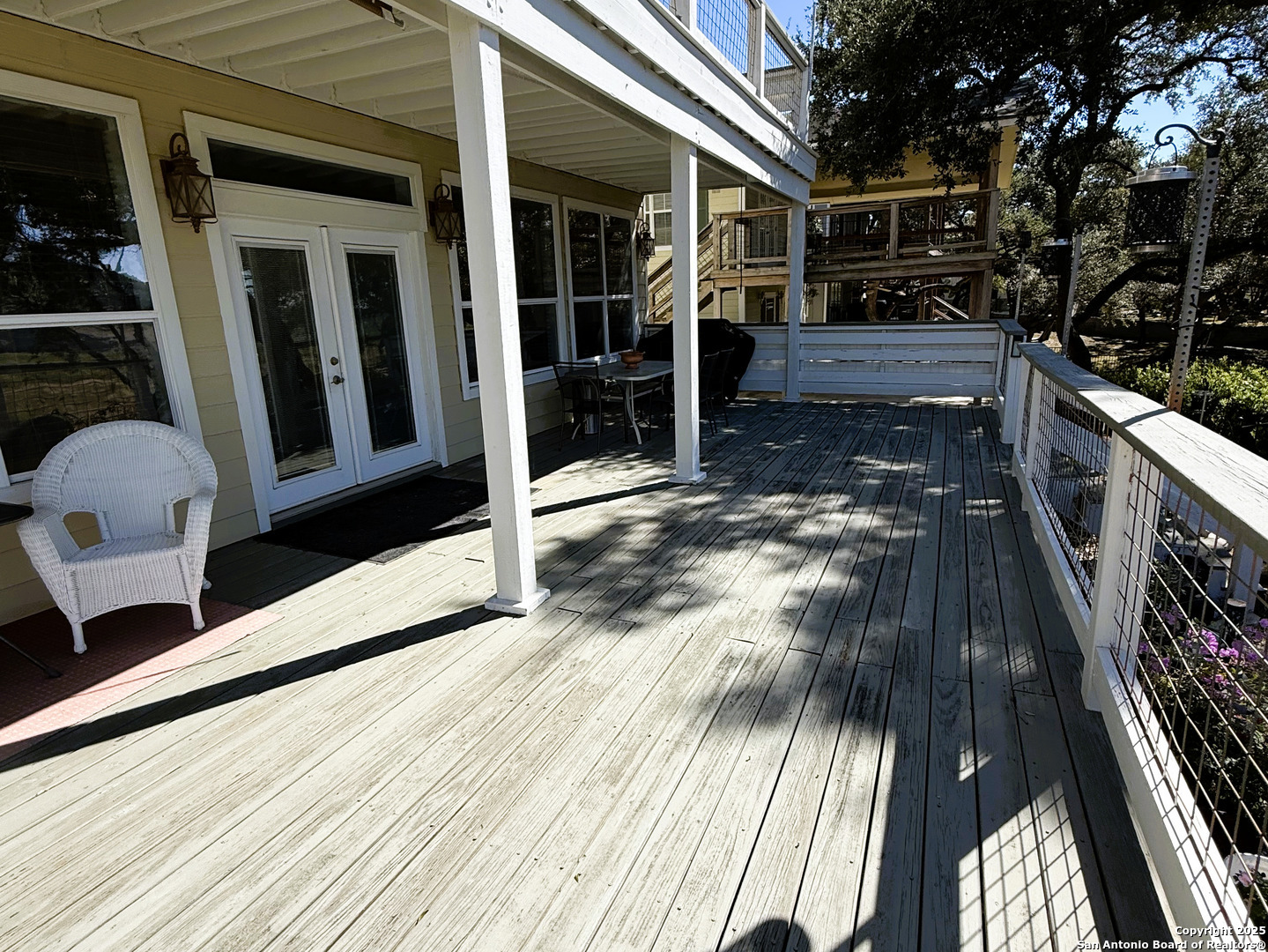 Beautiful and spacious two-story home featuring 3 bedrooms and 2.5 bathrooms, perfectly situated on a serene lakefront lot. Enjoy stunning water views (Medina Lake is currently at historic low levels) from multiple large decks and balconies, ideal for relaxing or entertaining. The open-concept living areas are filled with natural light, while the modern kitchen and ample family spaces offer comfort and style. Downstairs, the primary suite includes a large en-suite with garden tub, separate shower and double vanities, creating a peaceful retreat. With plenty of outdoor living space and direct lake access, this home combines elegance and tranquility in a picturesque setting. Home can come furnished or unfurnished.