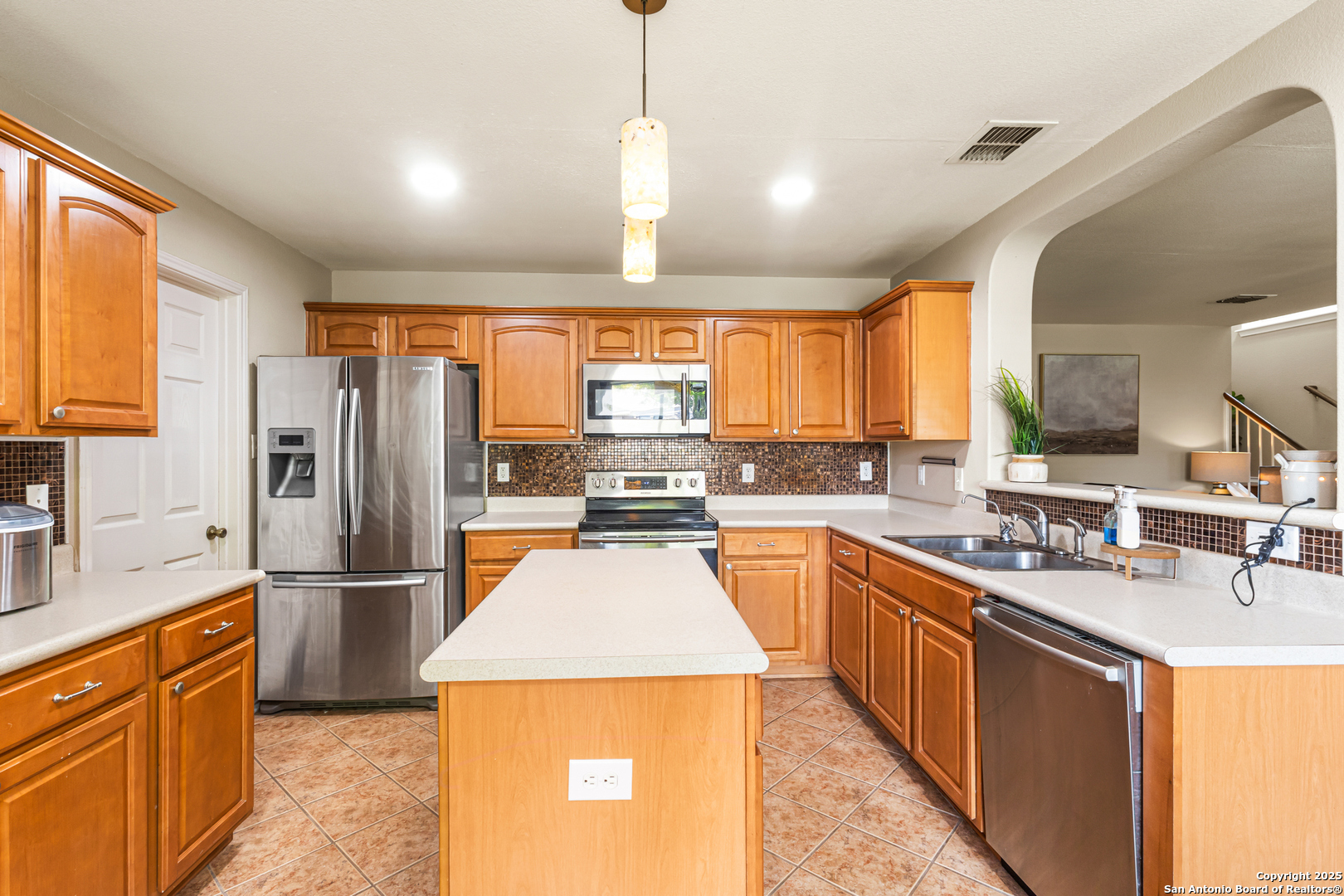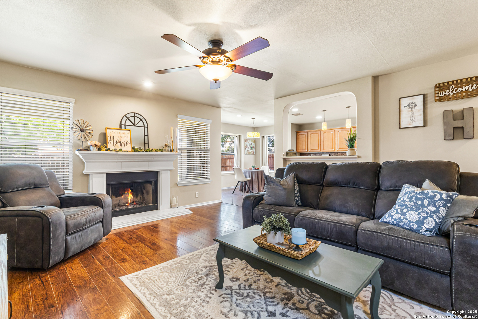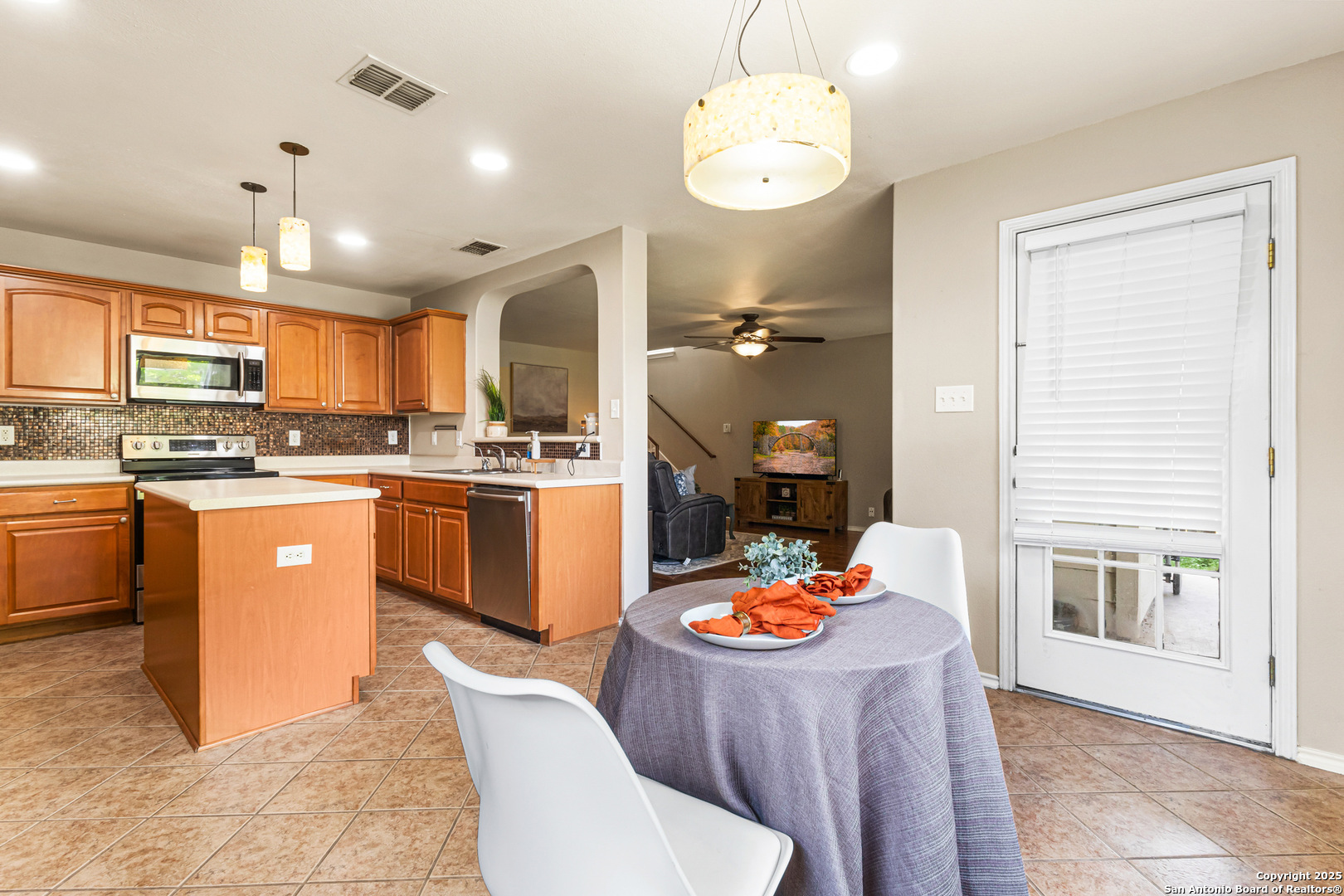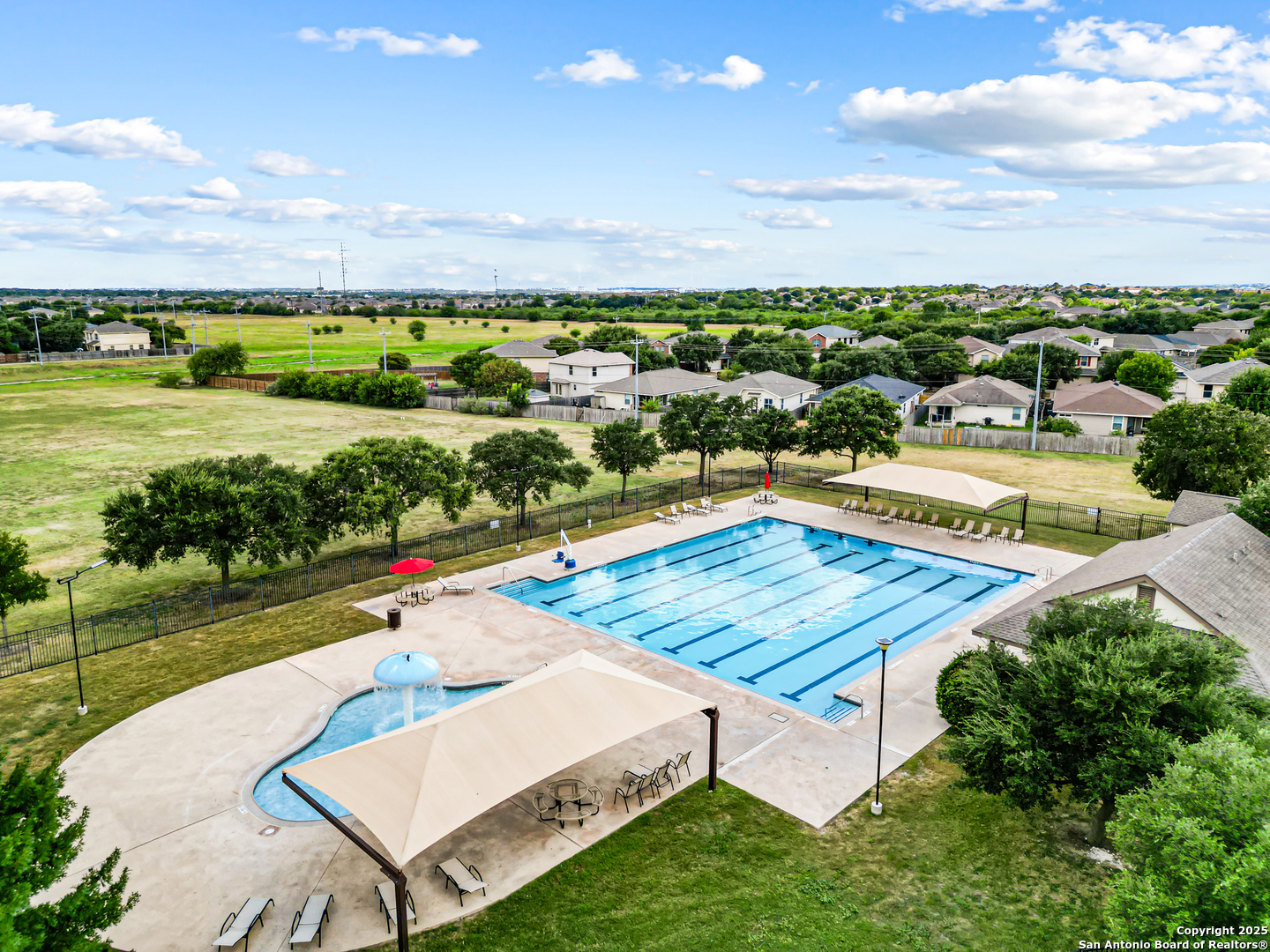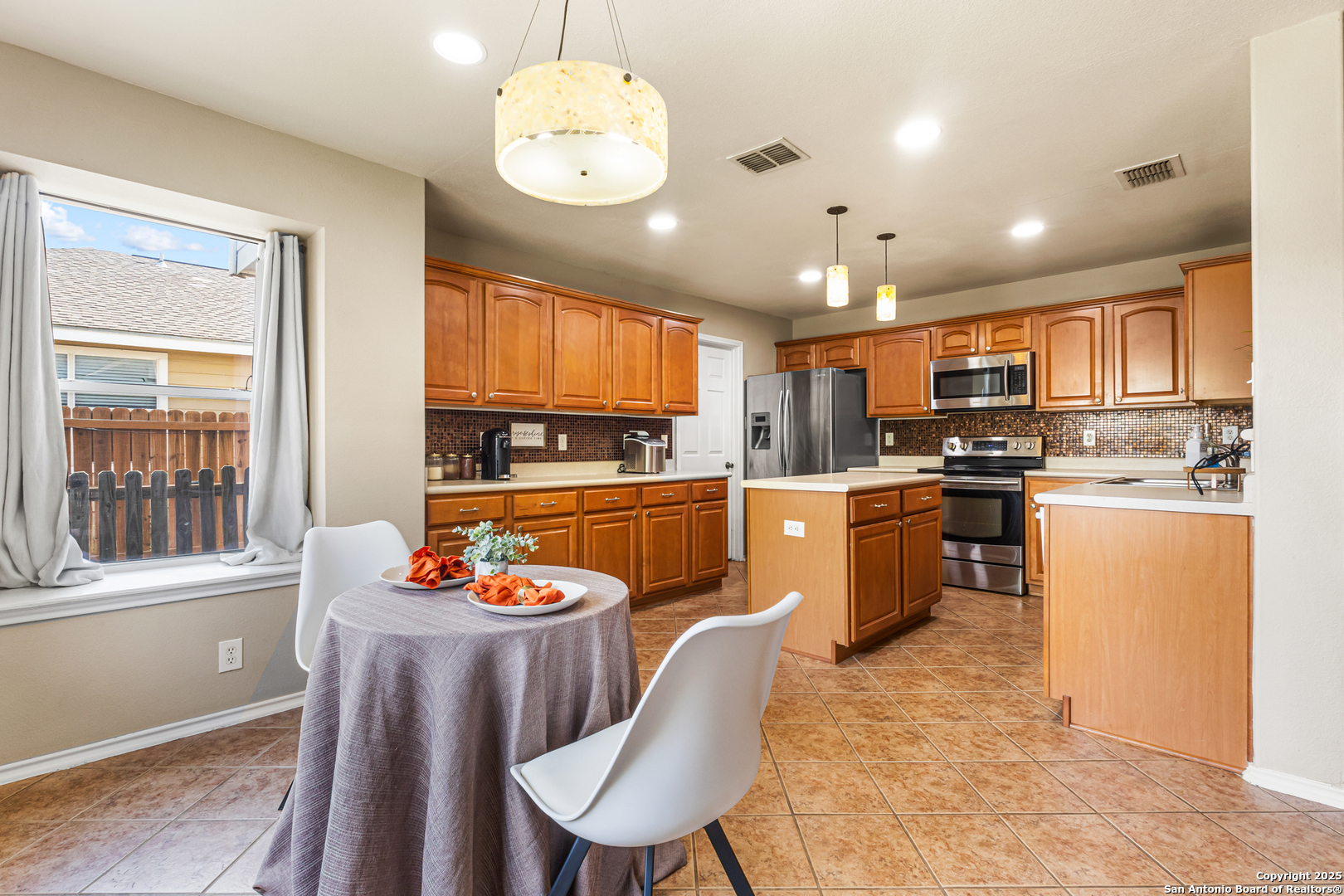 Welcome home to the beautiful NW Wildhorse community. Spacious 2-story DR Horton home offering 2327 SF, 3 bedrooms upstairs along with two living areas and two dining spaces, providing flexibility for work, play, or entertaining. The island kitchen features generous cabinets, counter space and refrigerator. MONEY SAVERS: included washer, dryer, and water softener PLUS no city taxes. Easy-care laminate and ceramic tile flooring throughout, with no carpet is allergy friendly. Relax on the covered front porch or enjoy the backyard from the covered patio. Neighborhood amenities include a swimming pool, park, and sports court. Located in Northside ISD, zoned to Sotomayor High School with Jefferson Elementary just .50 mile from home. Make this home yours today!