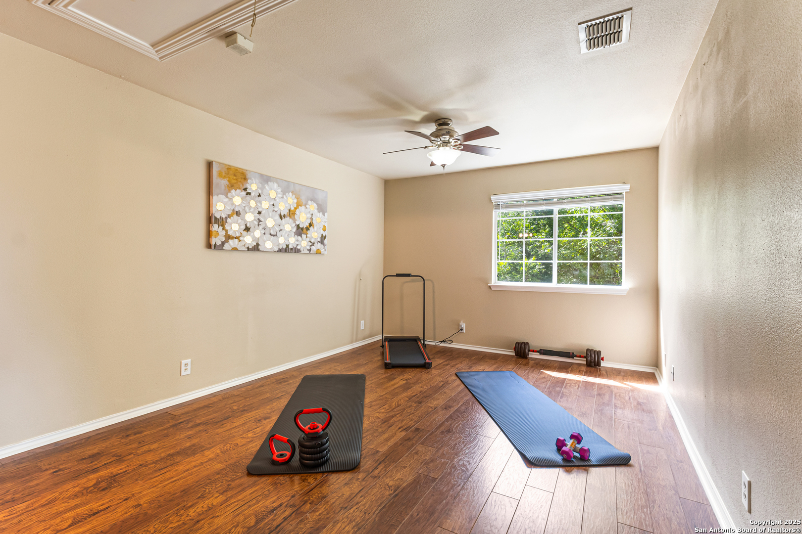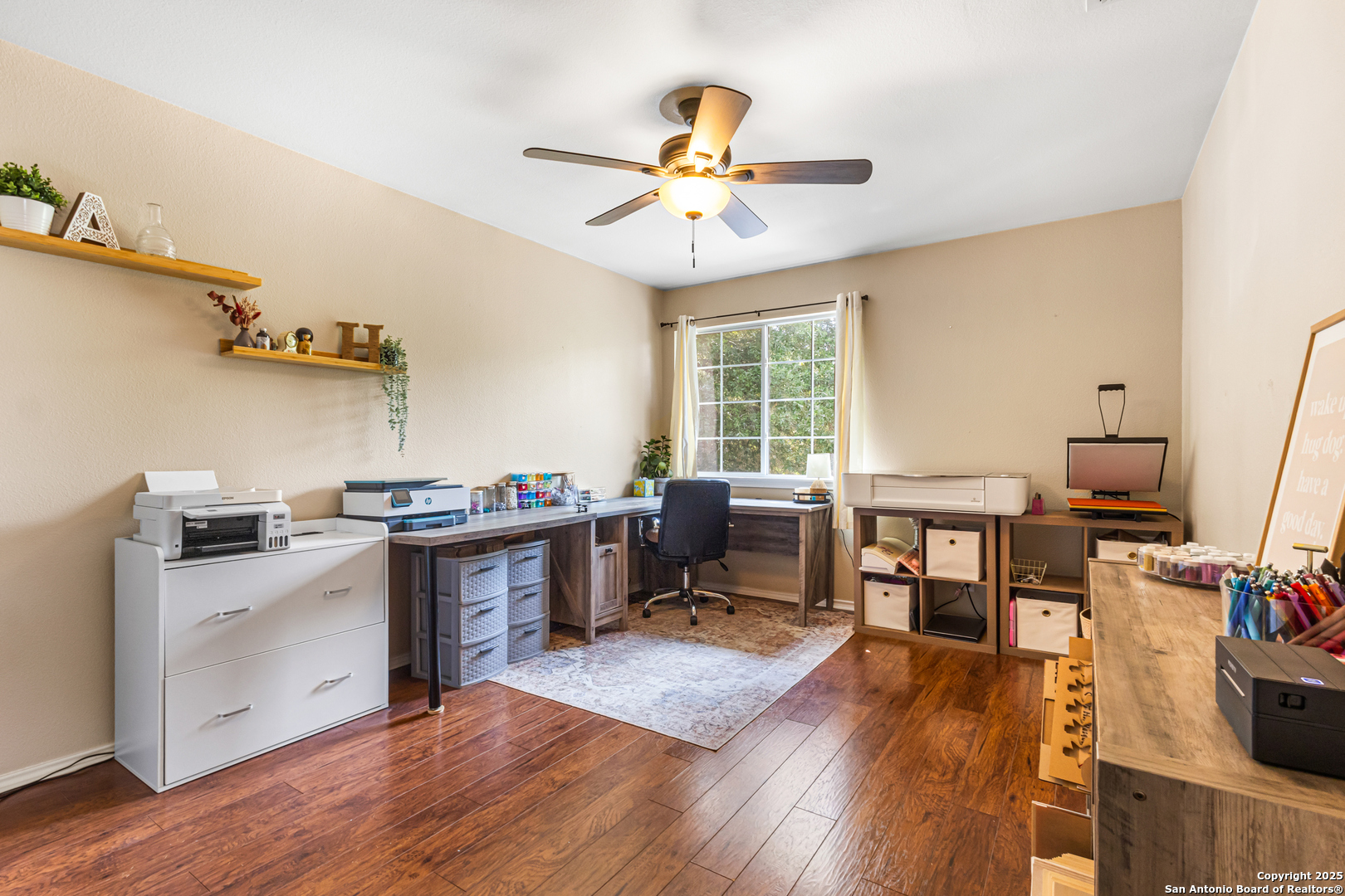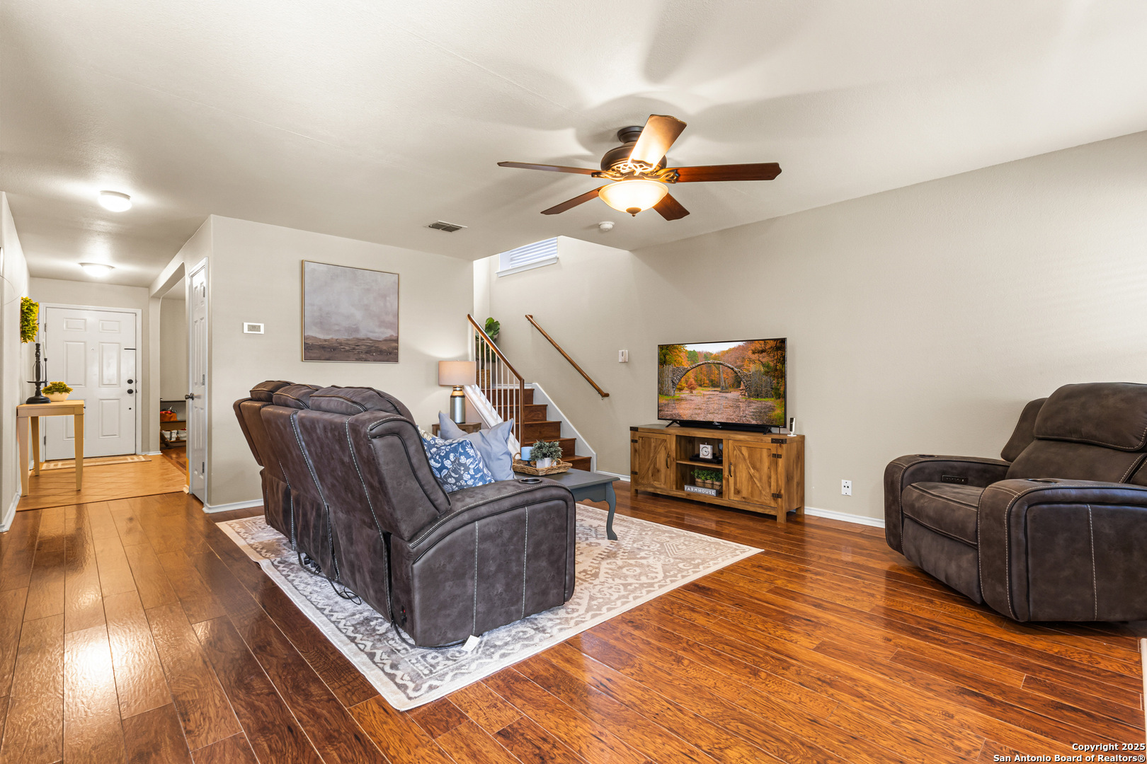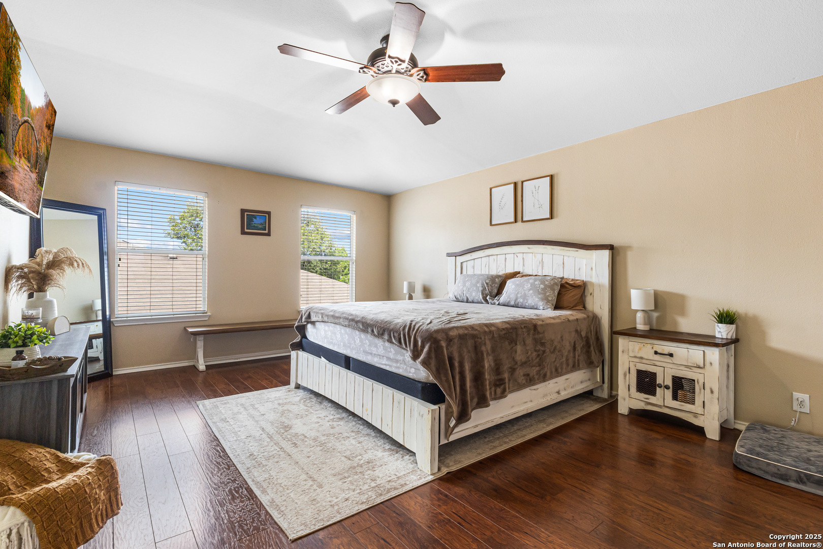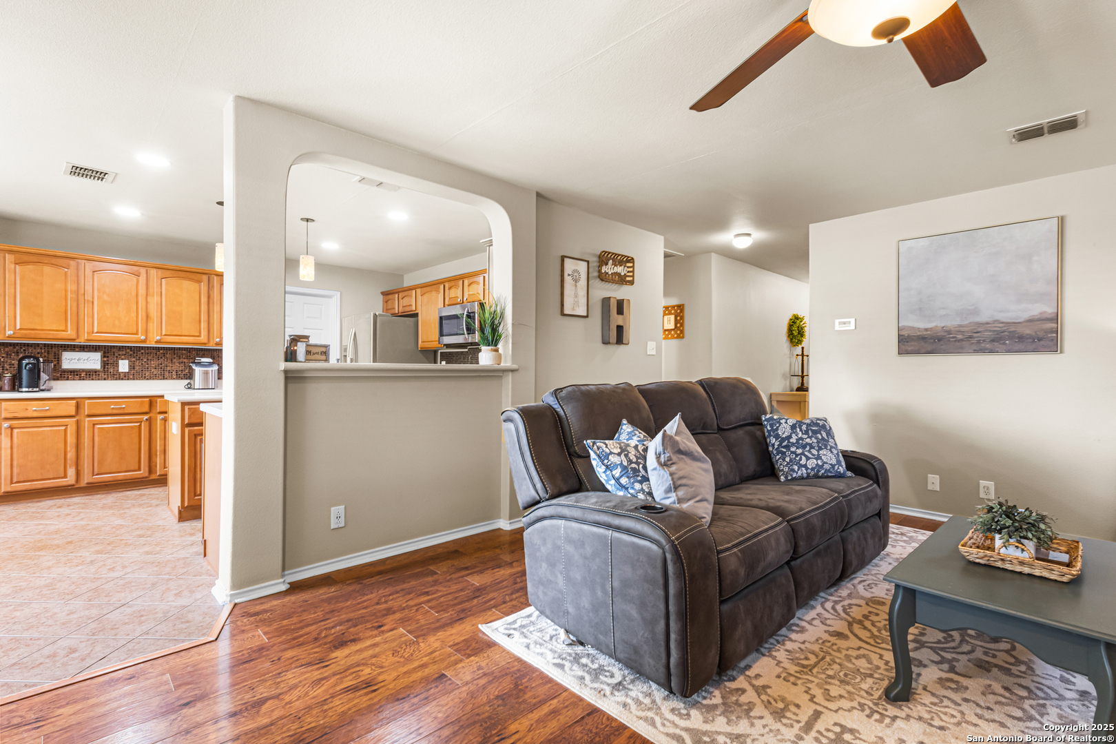 Welcome home to the beautiful NW Wildhorse community. Spacious 2-story DR Horton home offering 2327 SF, 3 bedrooms upstairs along with two living areas and two dining spaces, providing flexibility for work, play, or entertaining. The island kitchen features generous cabinets, counter space and refrigerator. MONEY SAVERS: included washer, dryer, and water softener PLUS no city taxes. Easy-care laminate and ceramic tile flooring throughout, with no carpet is allergy friendly. Relax on the covered front porch or enjoy the backyard from the covered patio. Neighborhood amenities include a swimming pool, park, and sports court. Located in Northside ISD, zoned to Sotomayor High School with Jefferson Elementary just .50 mile from home. Make this home yours today!