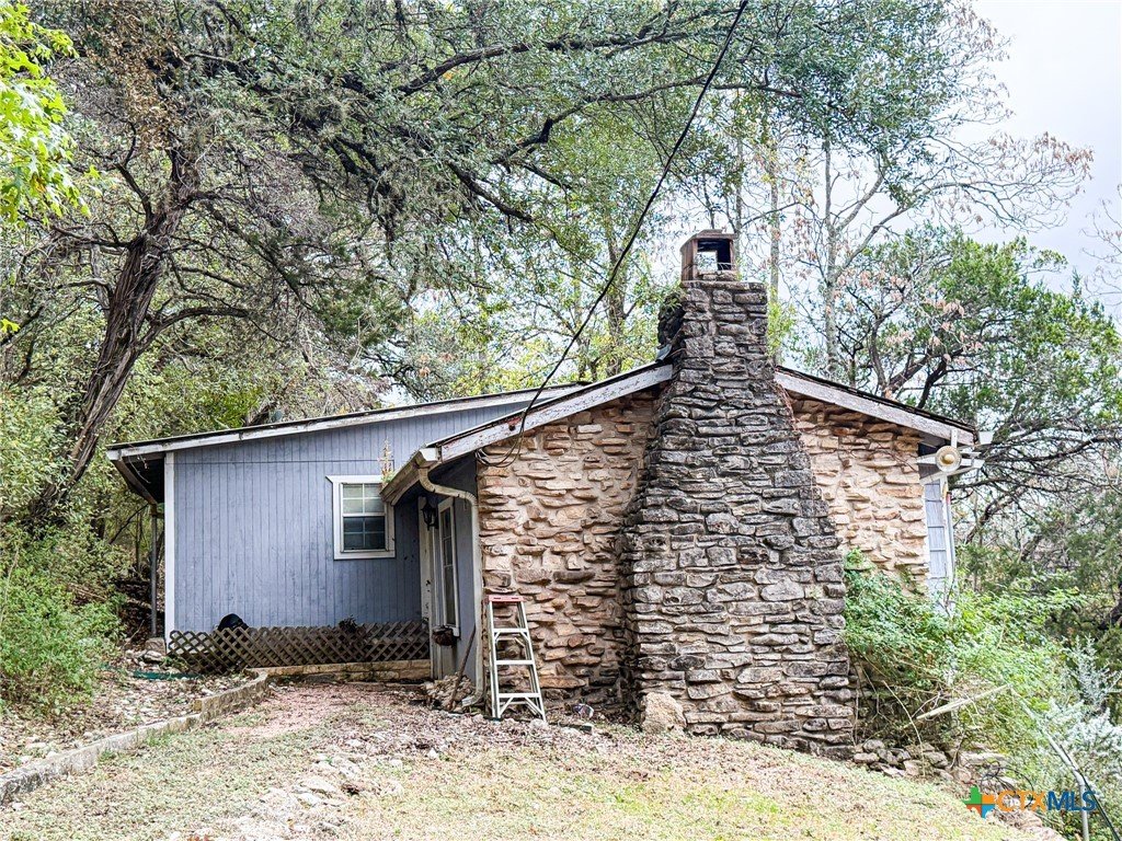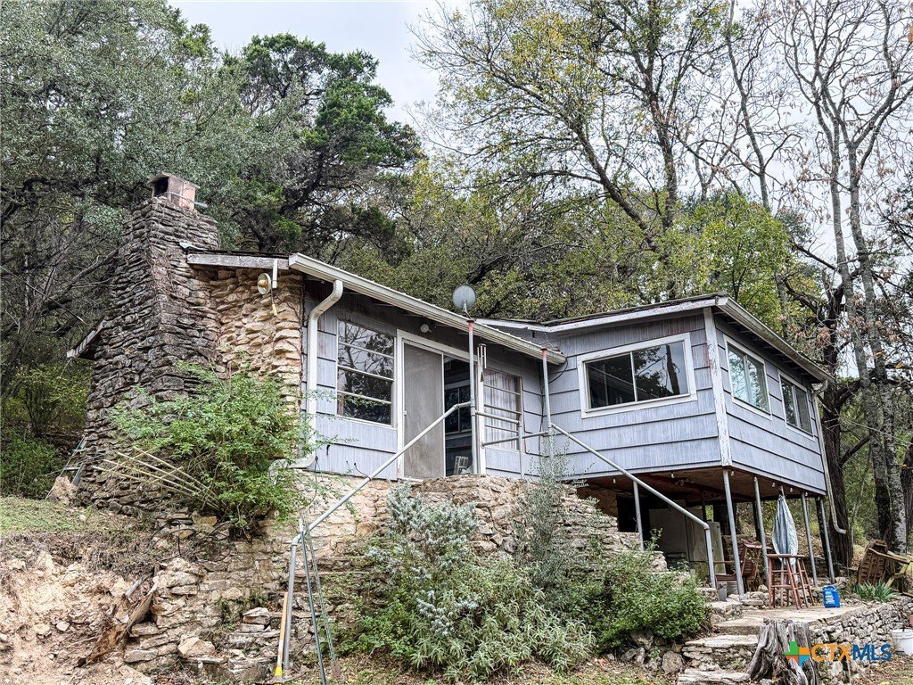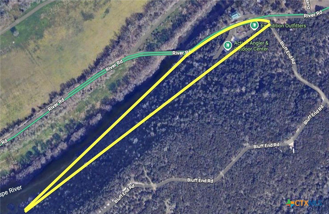 Come see this beautiful riverfront property on 4.36 acres, right in the heart of New Braunfels, on scenic River Road, featuring direct access to the Guadalupe River. Two private walking trails lead from the homesite or parking lot to the water’s edge, which currently serves as a public fishing access spot, offering an ideal setting for year-round fishing and outdoor recreation. The property features a unique tree–house–style primary structure, formerly a fly-fishing shop with an apartment above, offering flexible use options for residential, commercial, or rental purposes. Fly shop inventory is negotiable. A separate guest house, in need of rehabilitation, is located toward the back of the property, offering excellent potential for additional living quarters, studio space, or income generation. The acreage is wooded with mature shade trees, providing privacy and a natural, park-like atmosphere. This property offers a rare combination of riverfrontage, acreage, and versatile structures, making it suitable for buyers seeking a recreational retreat, an investment opportunity, or a distinctive primary residence. The original home was constructed in 1950, and the shop was built in 2001.