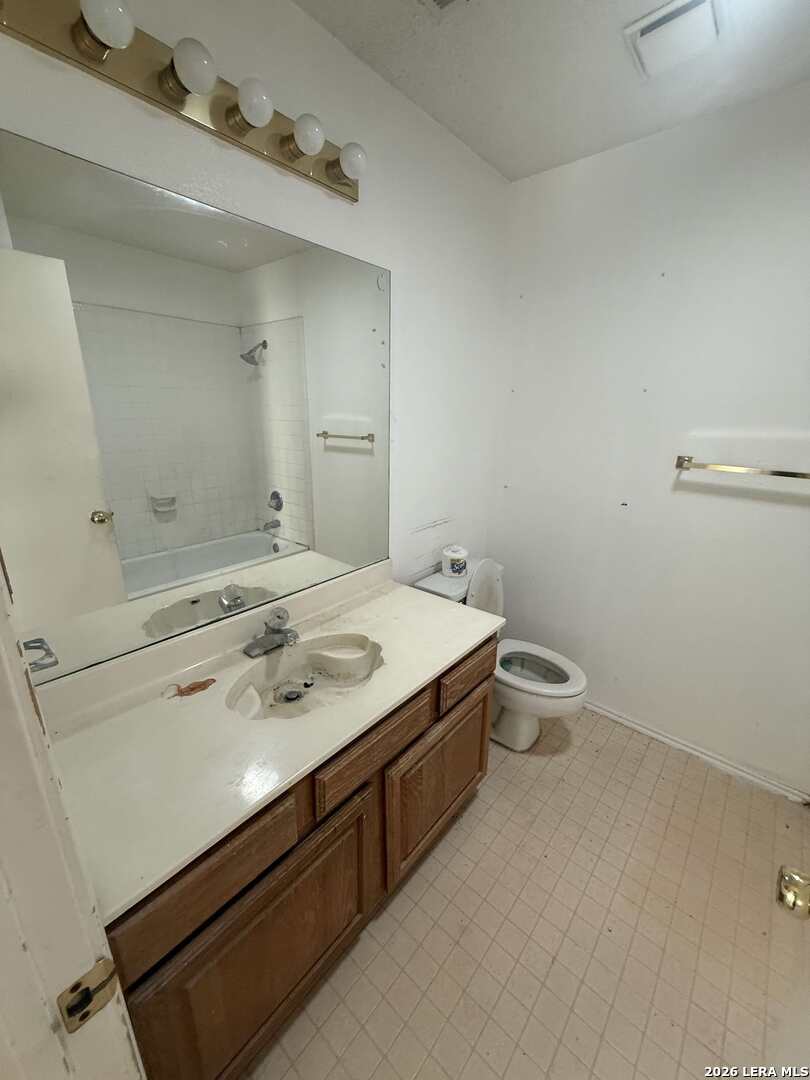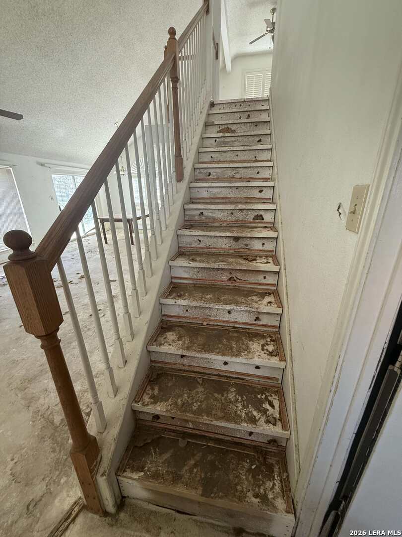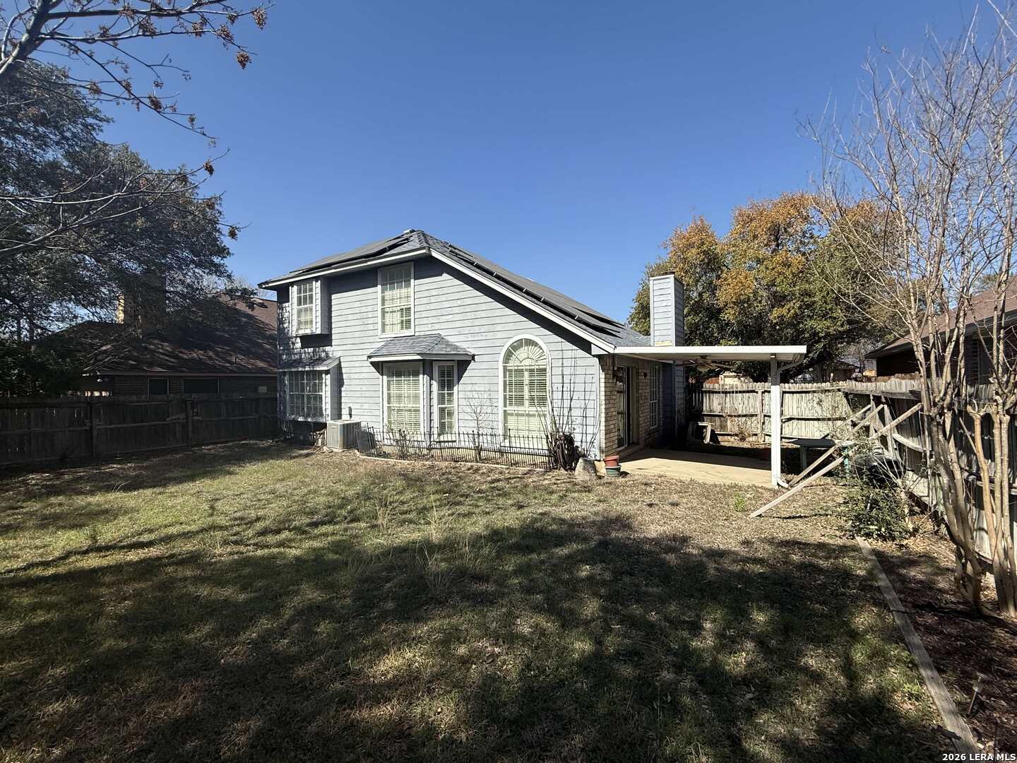 SOLD AS IS WHERE IS. Home needs some work! A 1,608 sq ft two-story home full of potential and ready for your personal touch. This 3-bedroom, 2-bath home offers a functional layout with great bones and soaring ceilings that make the main living areas feel open and inviting. The primary suite is conveniently located downstairs, featuring two separate closets, a double vanity, and a shower/tub combo - a solid start for a stylish renovation. Upstairs, you'll find two additional bedrooms, a full bath, and a small extra living space that's perfect for a game room, media room, office, or flex space to fit your needs. The home includes a 2-car garage and will convey with solar panels, offering long-term energy savings and added value. While the property does need renovations throughout, it presents a fantastic opportunity for an investor or buyer looking to customize a home to their taste. With its desirable layout, high ceilings, upstairs living area, great backyard with mature trees, this property is an opportunity to create something special.