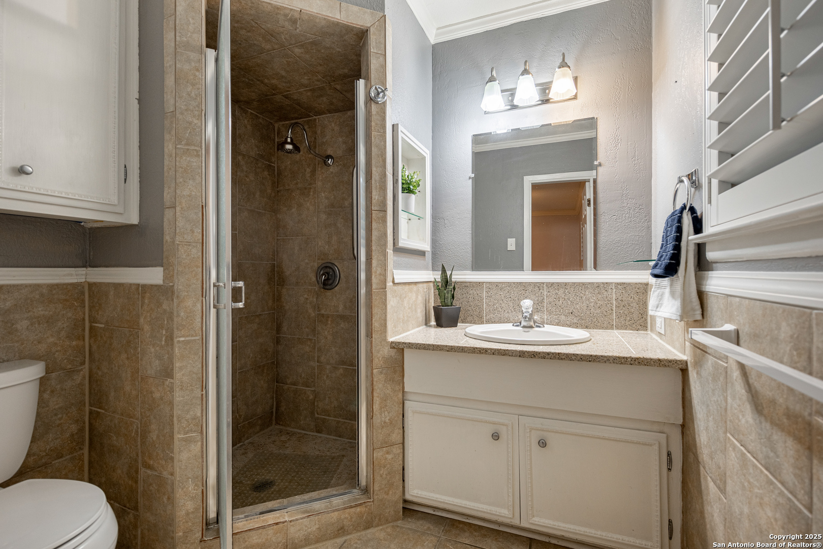 Charming single-story home offering a spacious layout perfect for entertaining. This beautifully updated home features tile flooring throughout, granite countertops in the kitchen, and modern tile work in the bathrooms. All windows are equipped with elegant plantation shutters and energy-efficient solar screens. The large backyard includes a covered patio and a gazebo ideal for relaxing in a peaceful quiet neighborhood. With 1,609 square feet of living space, you'll have plenty of room to enjoy. Conveniently located near shopping, restaurants, IH-10 Wurzbach, the Medical Center, and USAA."