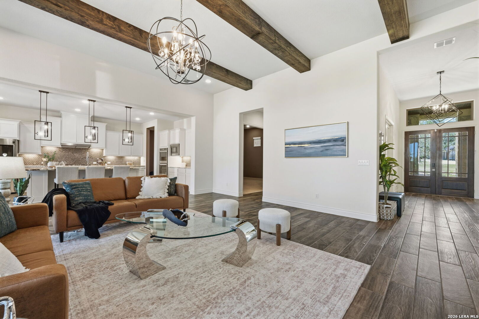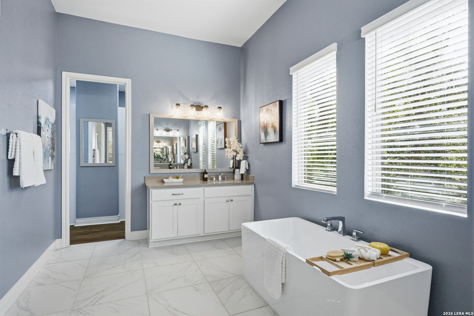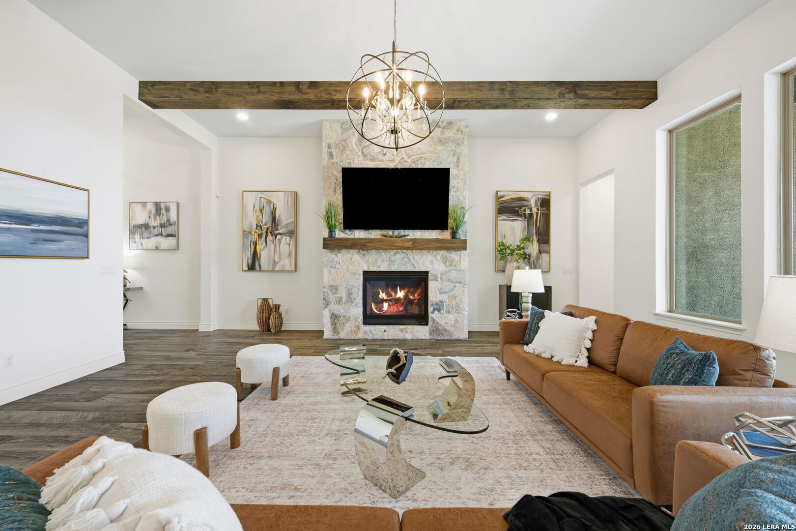 Experience elevated living in this stunning luxury home located in the highly sought-after gated community of Belle Oaks. Designed with both elegance and functionality in mind, this residence features an open-concept floor plan enhanced by expansive picture windows that fill the home with natural light and seamlessly connect indoor and outdoor living. Offering 4 spacious bedrooms and 4.5 baths, every bedroom includes its own private ensuite bath and walk-in closet, providing ultimate comfort and privacy. The primary suite is a true retreat, complete with a spa-inspired bath featuring a soaking tub, oversized walk-in shower, dual vanities, and a custom-designed walk-in closet that blends style with efficiency. The thoughtfully designed layout includes a private office, a game room, and a media room-perfect for both work and play. The chef's kitchen is equipped with double ovens, a walk-in pantry, and a butler's pantry, making it ideal for entertaining and everyday living. A spacious 3-car garage showcases beautiful epoxy floors, combining durability with a clean, high-end finish. Step outside to your private backyard oasis featuring a resort-style pool and spa, along with a spacious sundeck perfect for relaxing or entertaining. Belle Oaks offers a peaceful, upscale lifestyle with exceptional community amenities including a pool, clubhouse, sports courts, playground, scenic walking trails, and a serene community pond-perfect for enjoying the beauty of the Texas Hill Country. This home truly combines luxury, comfort, and lifestyle in one exceptional setting.
