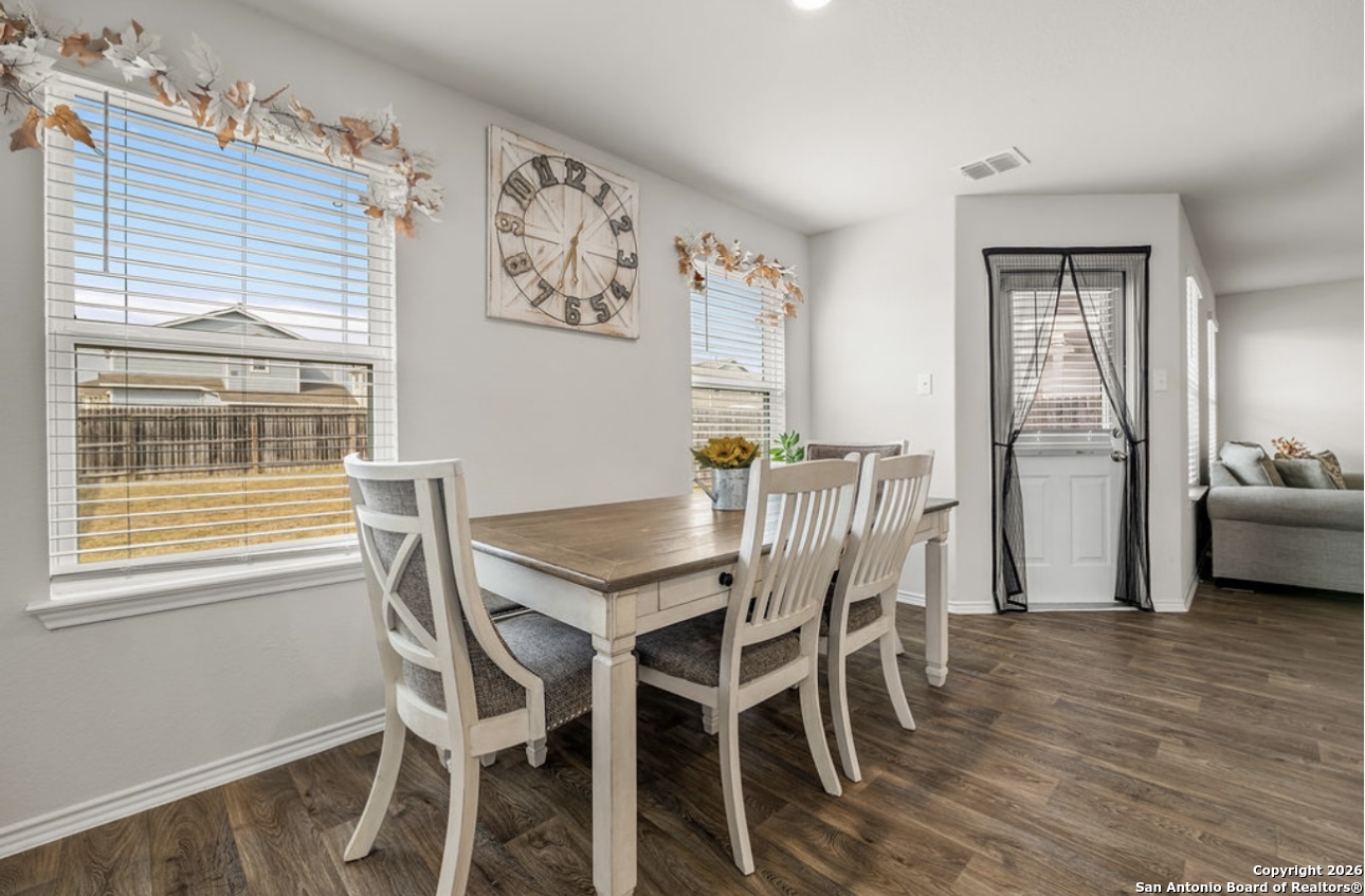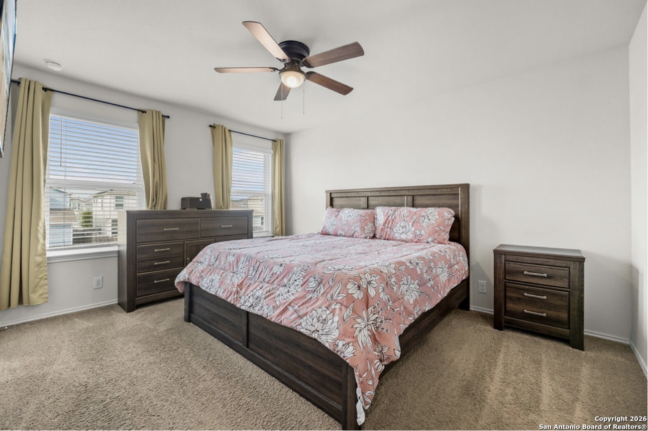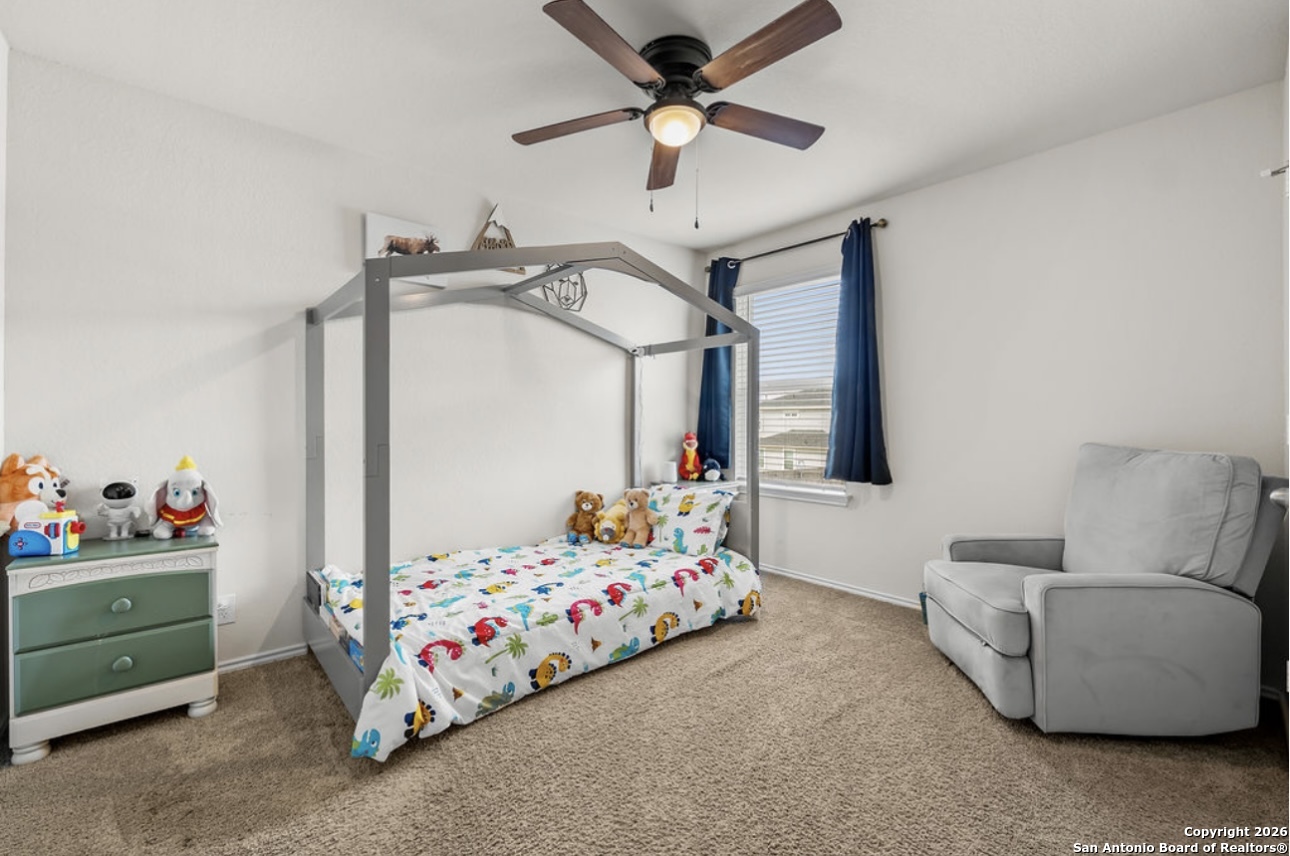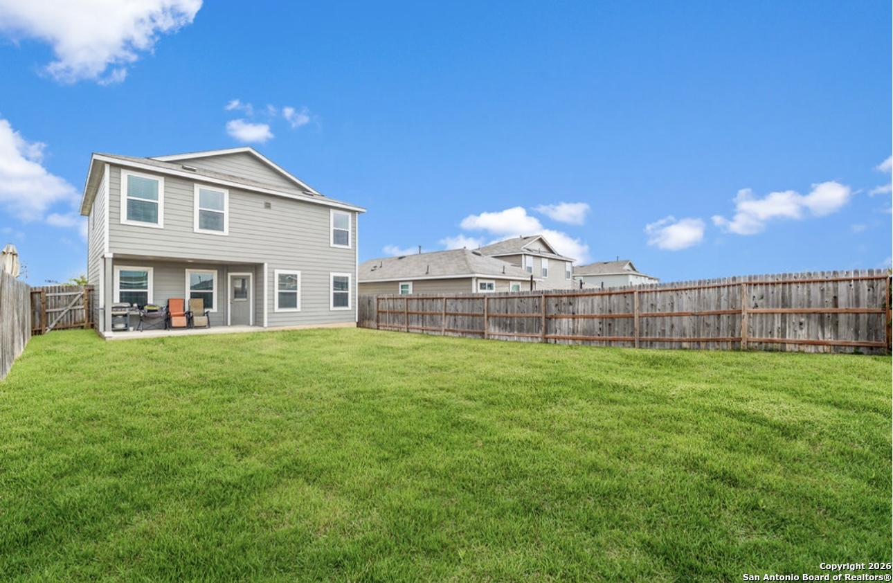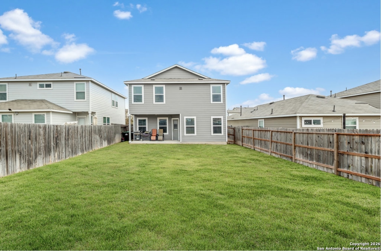 Welcome to this beautiful two-story home featuring 4 bedrooms and 2 1/2 bathrooms, offering 1,841 square feet of comfortable living space. This home has been very well kept and meticulously maintained throughout. An inviting entryway leads into the living room, which flows seamlessly into the kitchen, creating a warm and open feel. The kitchen boasts a convenient island with ample counter space and stainless steel and black appliances, perfect for everyday living and entertaining. All bedrooms are located upstairs and include ceiling fans for added comfort. Step outside to enjoy a covered patio overlooking a spacious backyard, ideal for relaxing or gatherings. Located within a family-friendly neighborhood that includes an elementary school, residents also enjoy incredible amenities such as two swimming pools, a splash pad, playgrounds, multiple parks, tennis and basketball courts, and a fishing pier
